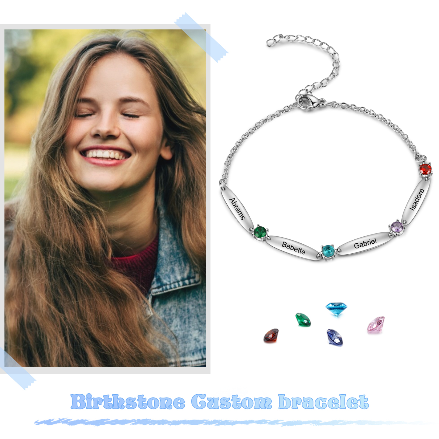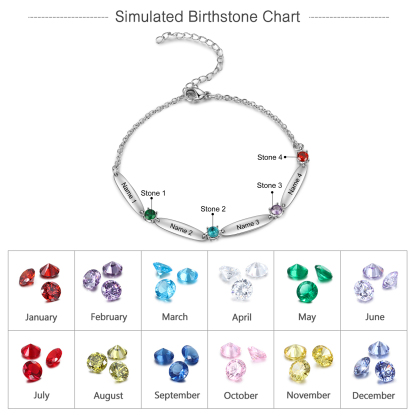 Braccialetto 4 Nomi in Personalizzare con 4 pietre di nascita