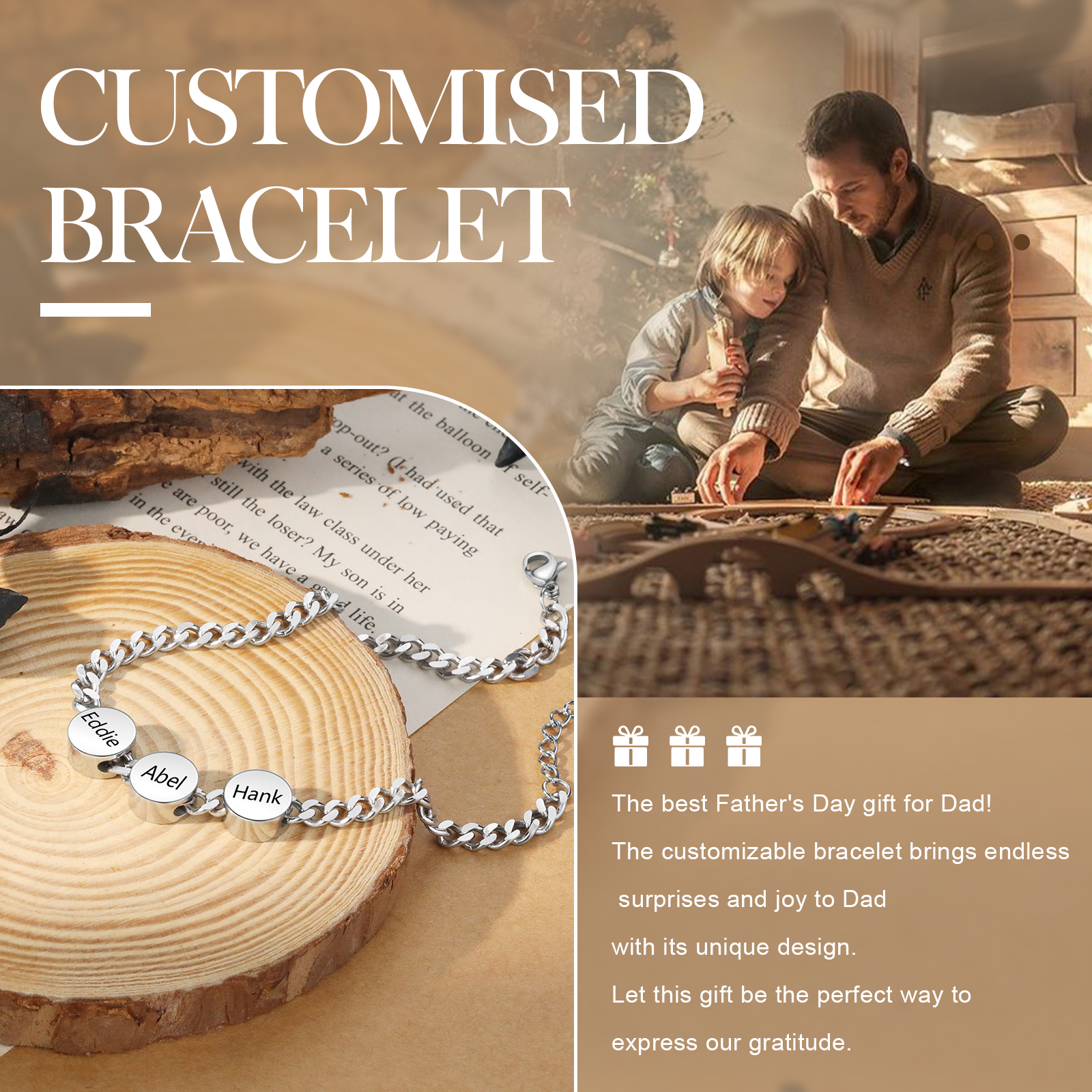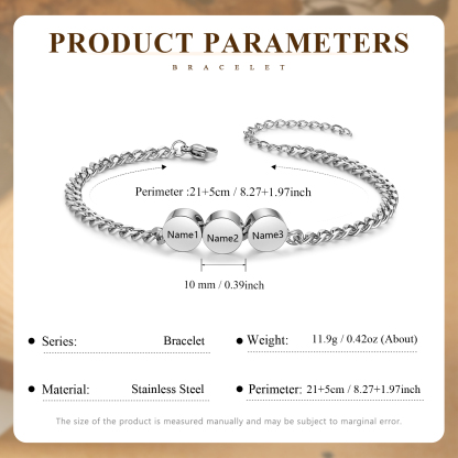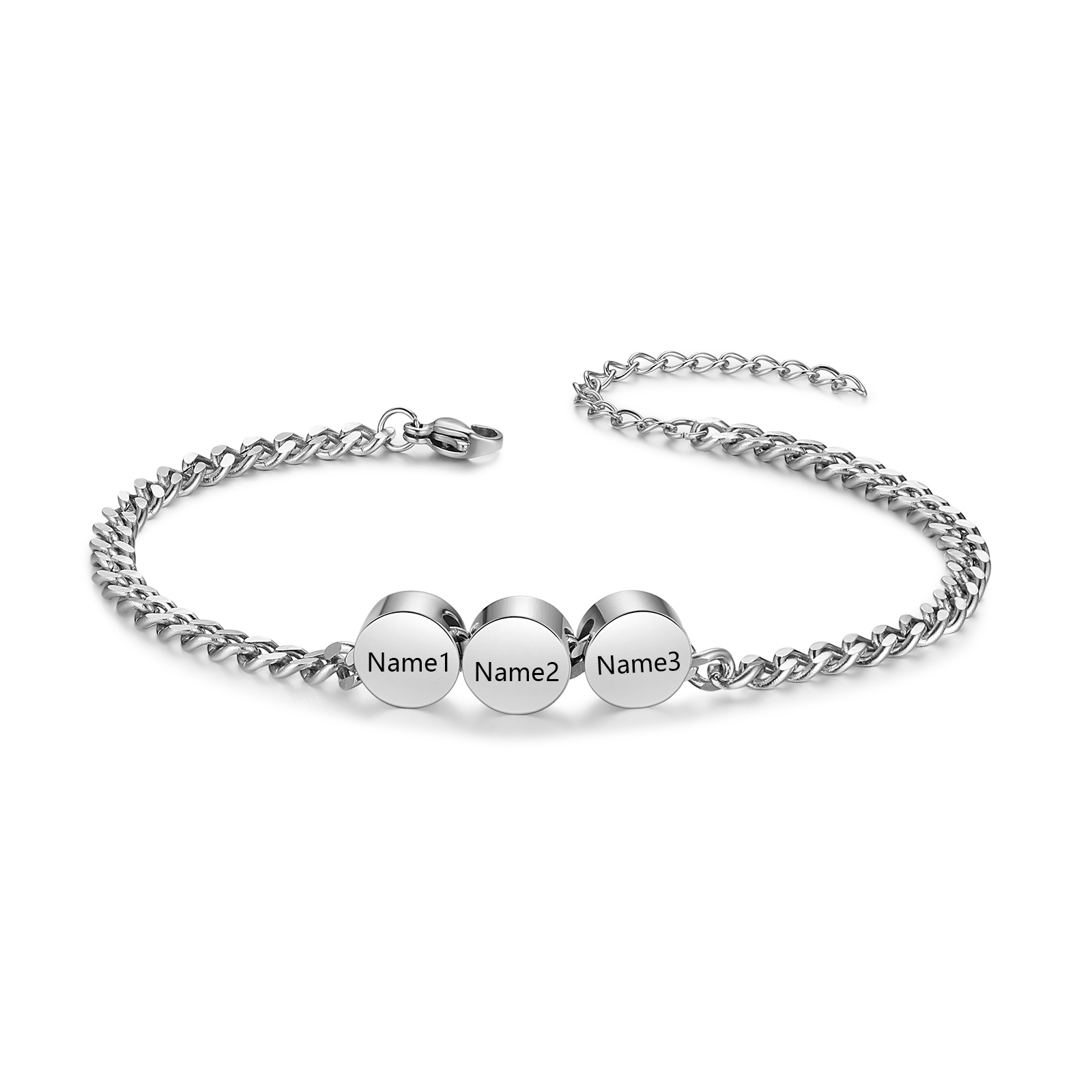 Braccialetto acciaio inox personalizzato con 3 nomi per uomo