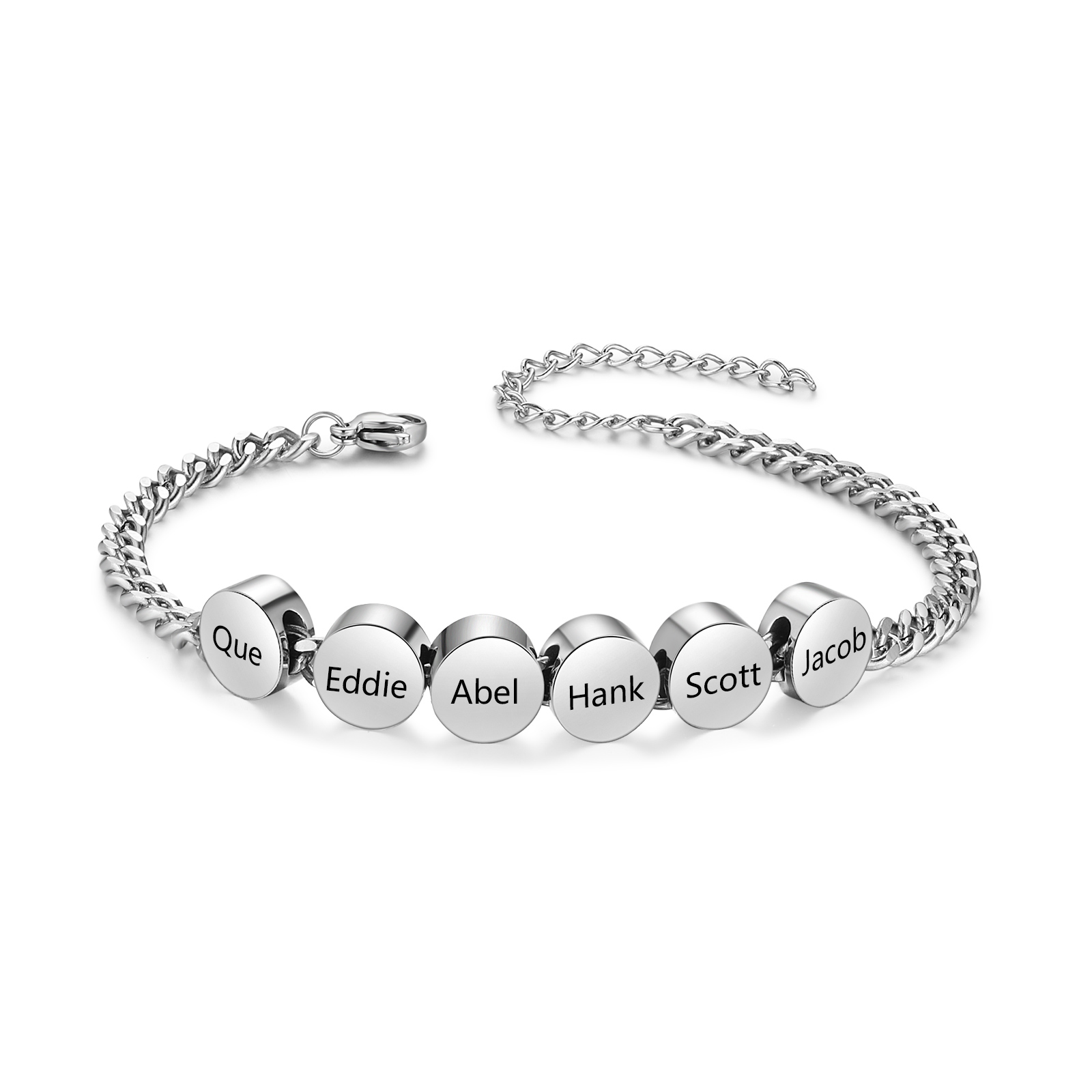 Braccialetto acciaio inox personalizzato con 6 nomi per uomo