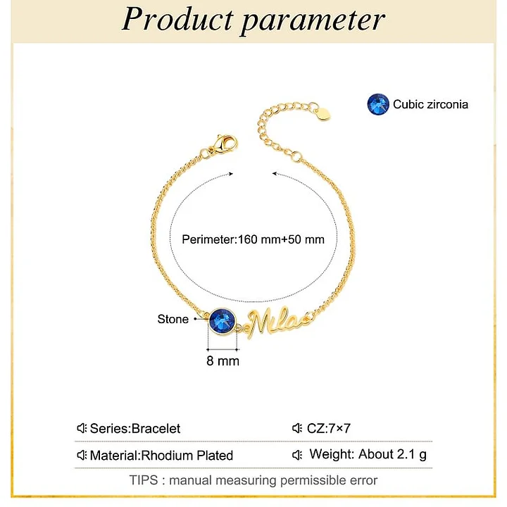 Braccialetto anello con 1 nome e 1 pietra di nascita personalizzabili regalo per donna