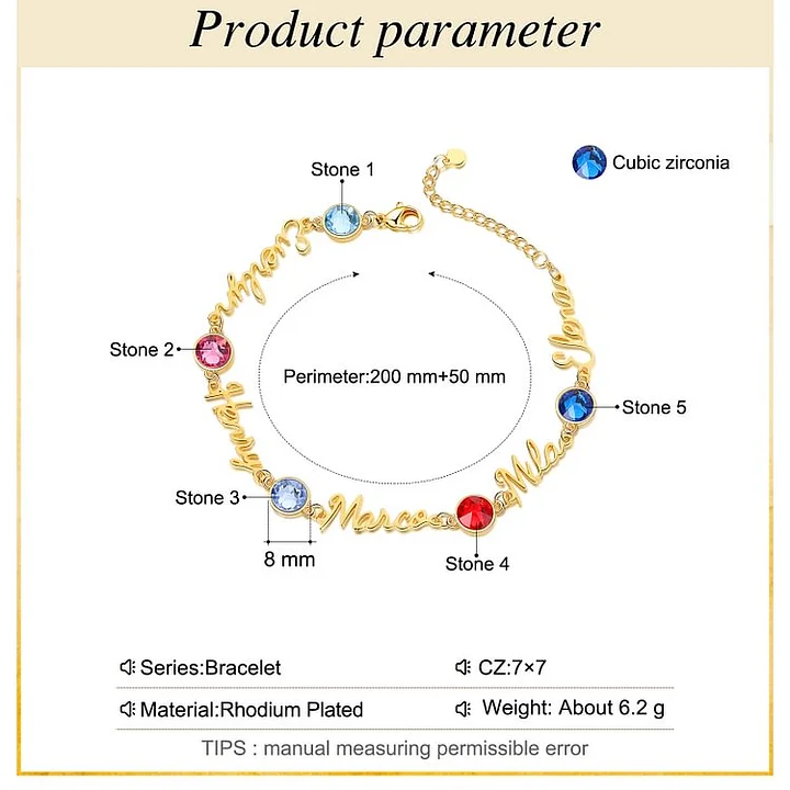 Braccialetto anello con 5 nomi e 5 pietre di nascita personalizzabili regalo per donna