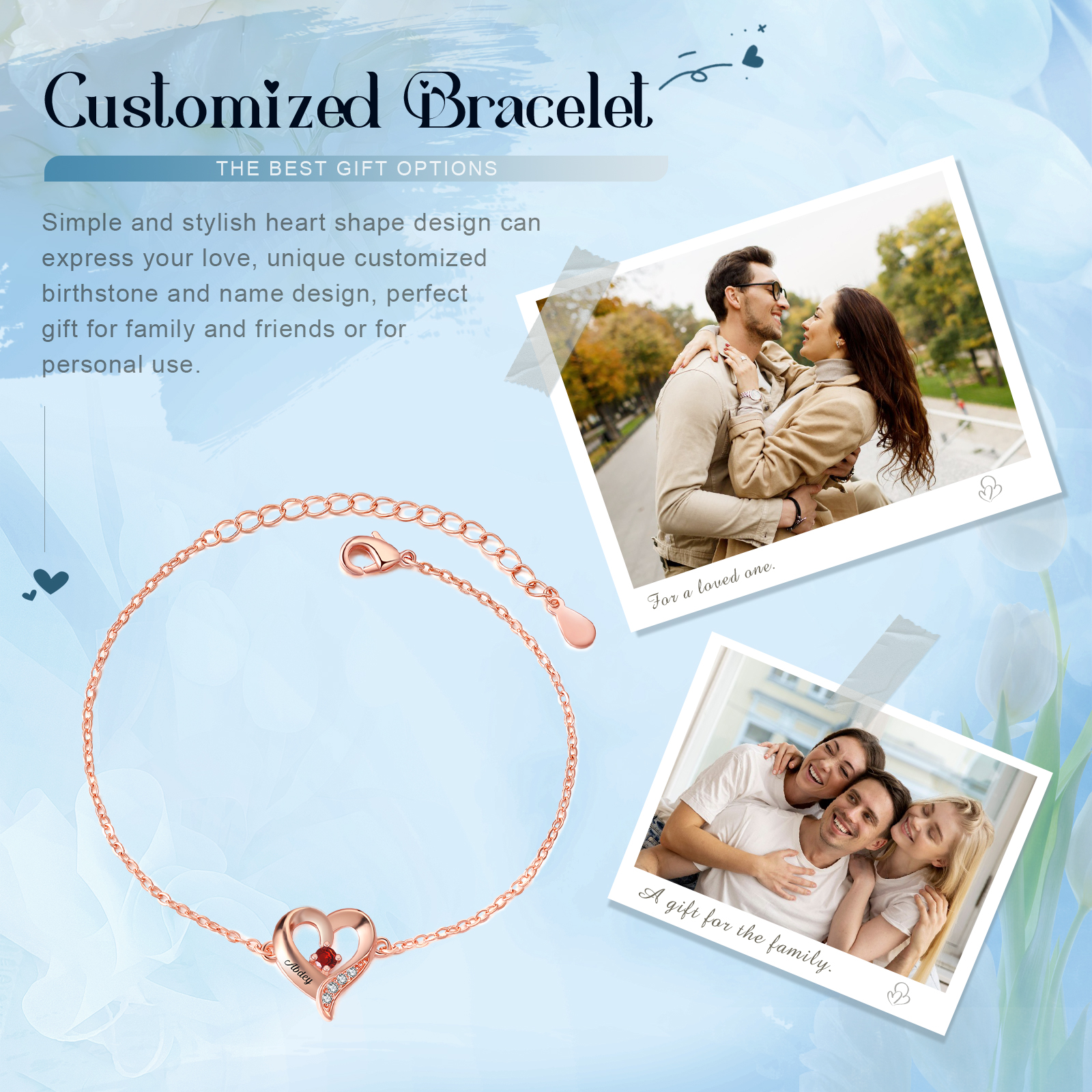 Braccialetto anello per donna 1 nome e pietra natale personalizzabili