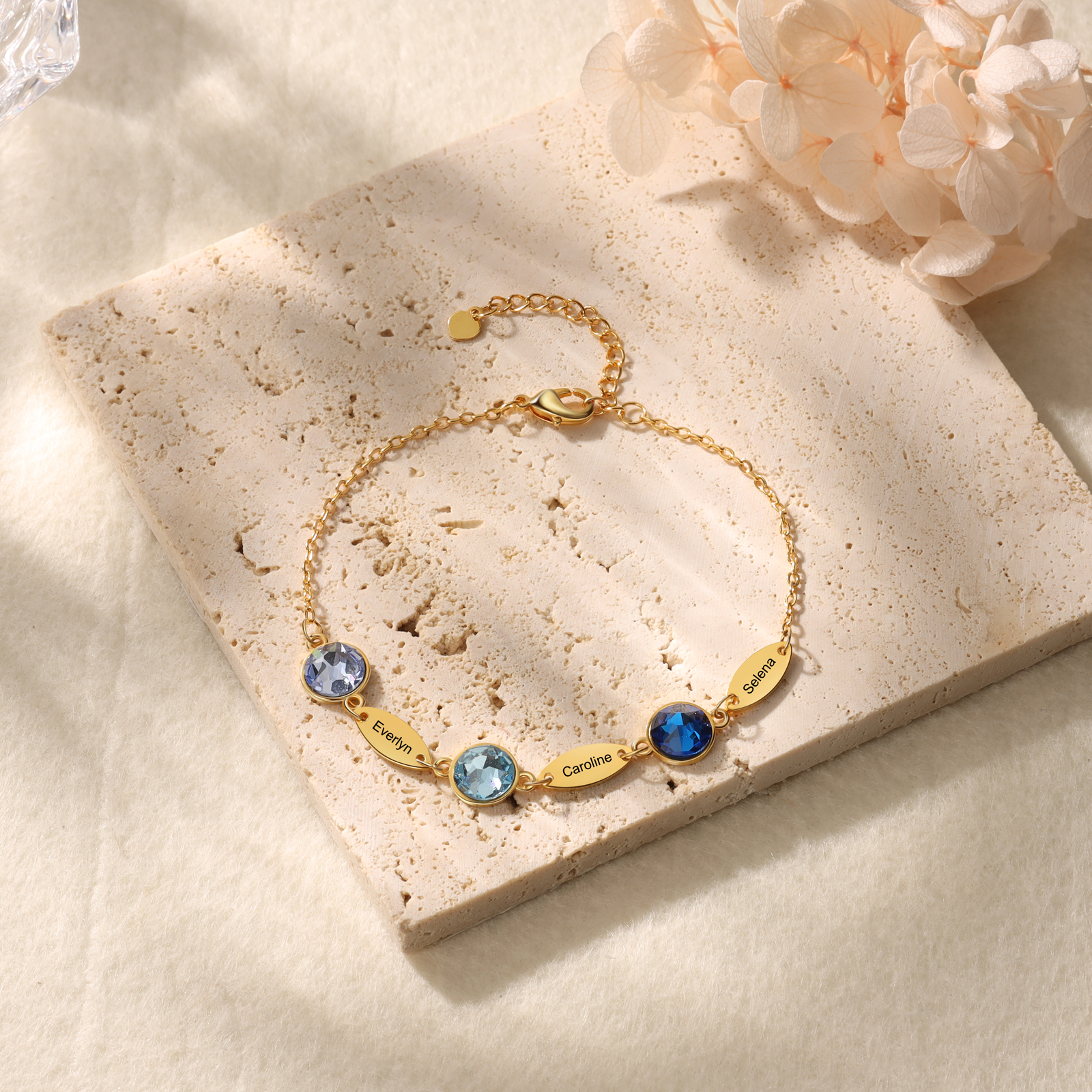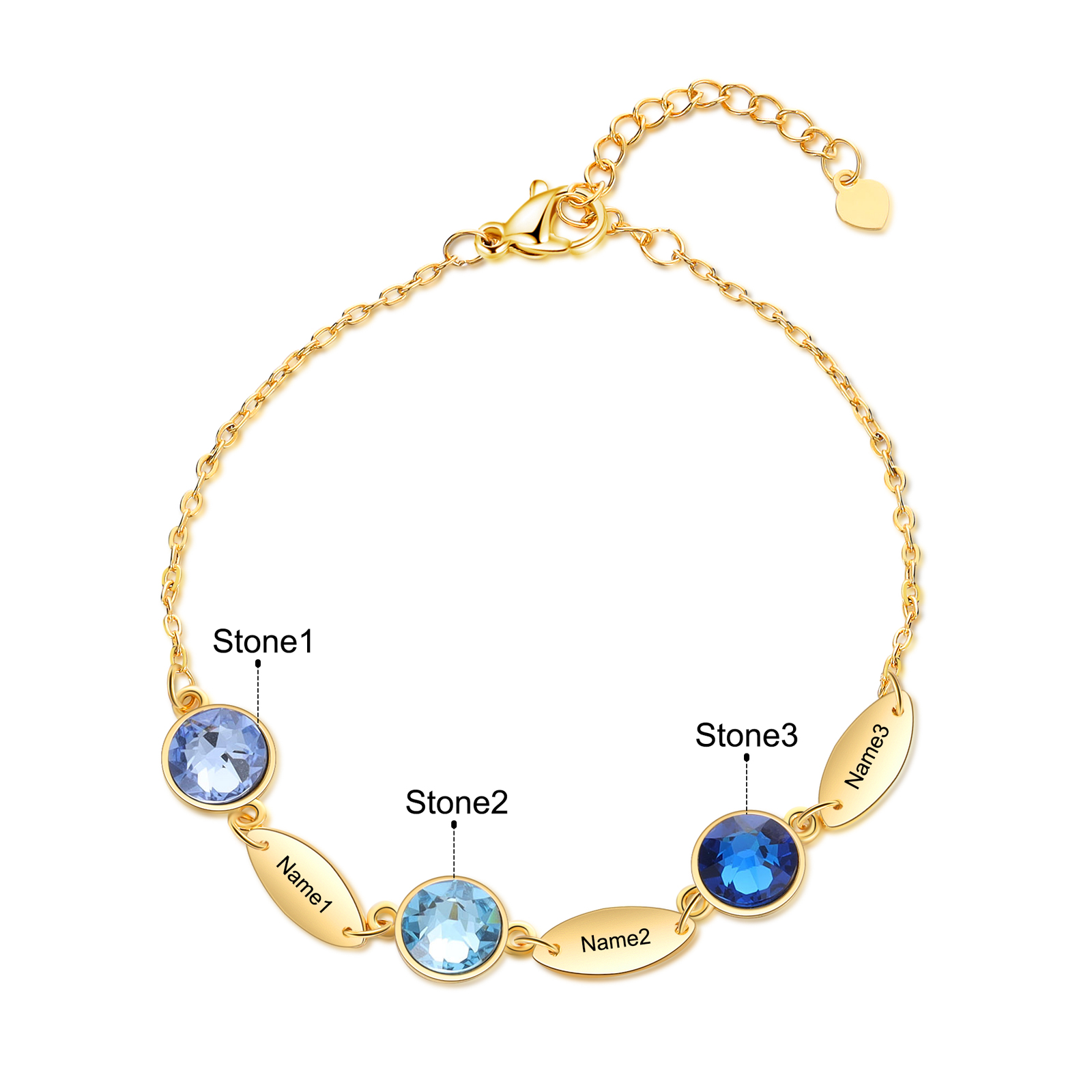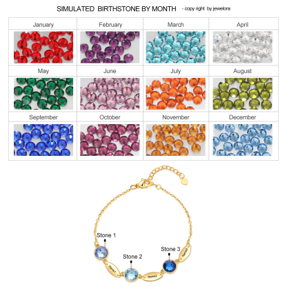 Braccialetto ciondolo 3 nomi in Personalizzare con 3 pietre di nascita