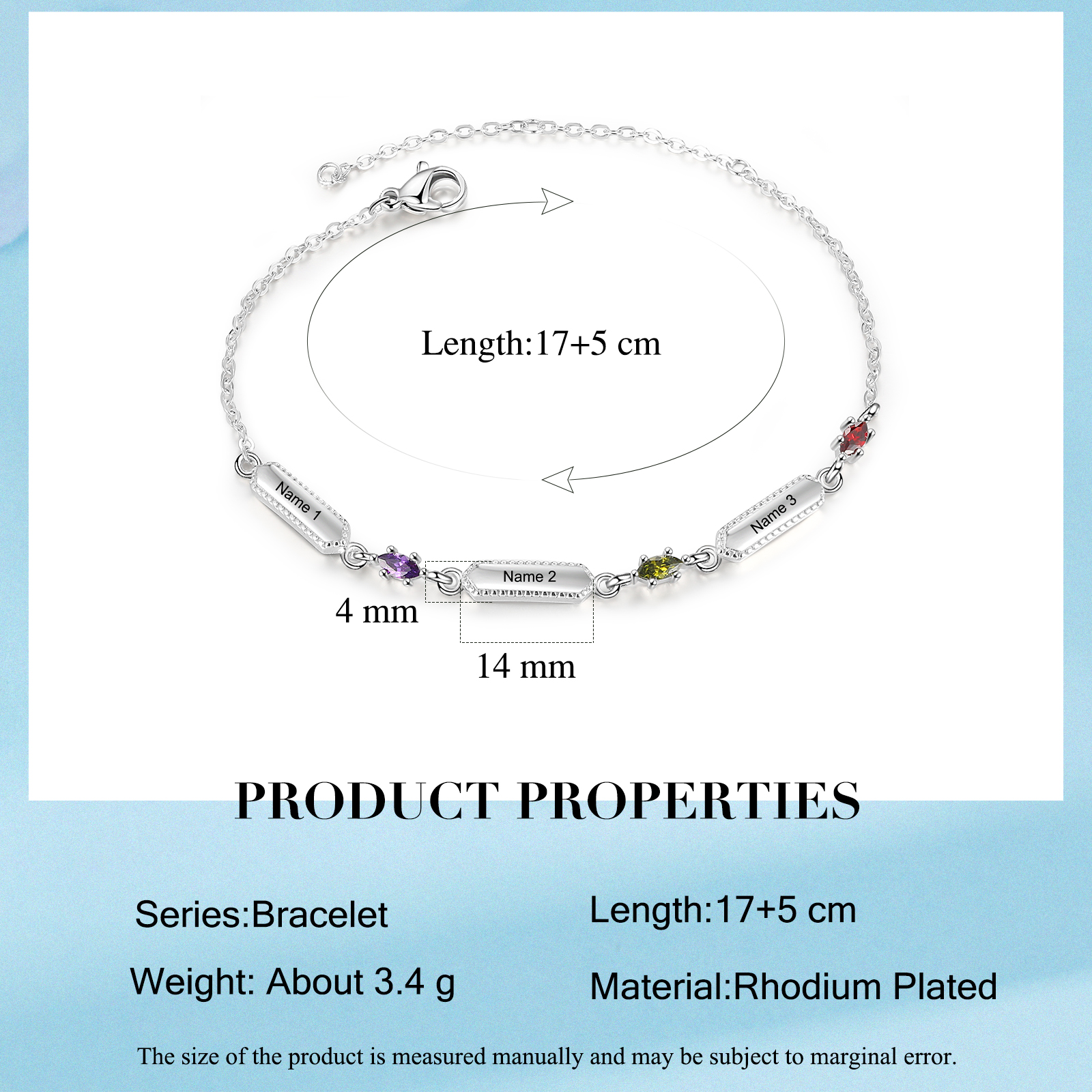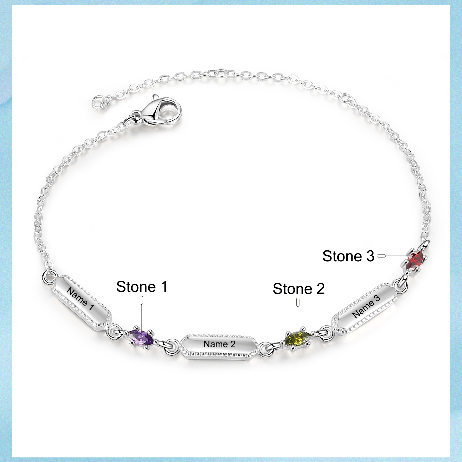 Braccialetto con 3 pietre di nascita e 3 nomi personalizzati regalo per donna