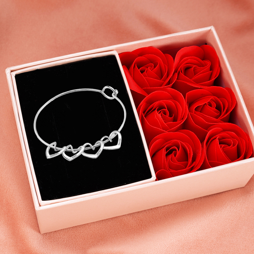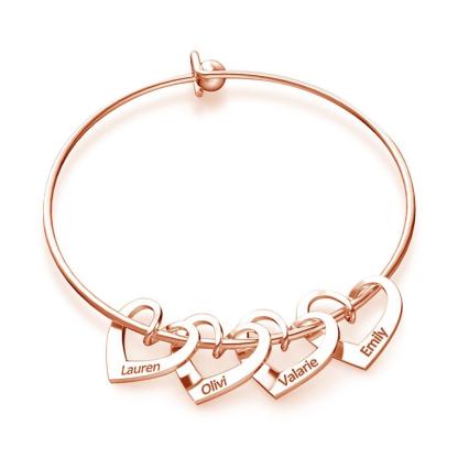 Braccialetto con 4 nomi personalizzati e 4 ciondoli a cuore