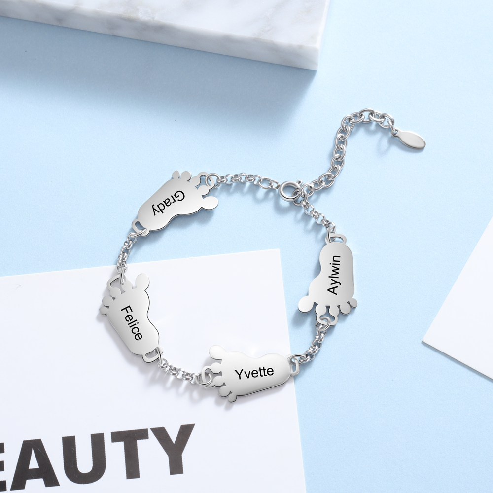 Braccialetto con piede di bambino personalizzato con 4 nomi regalo per mamma/nonna