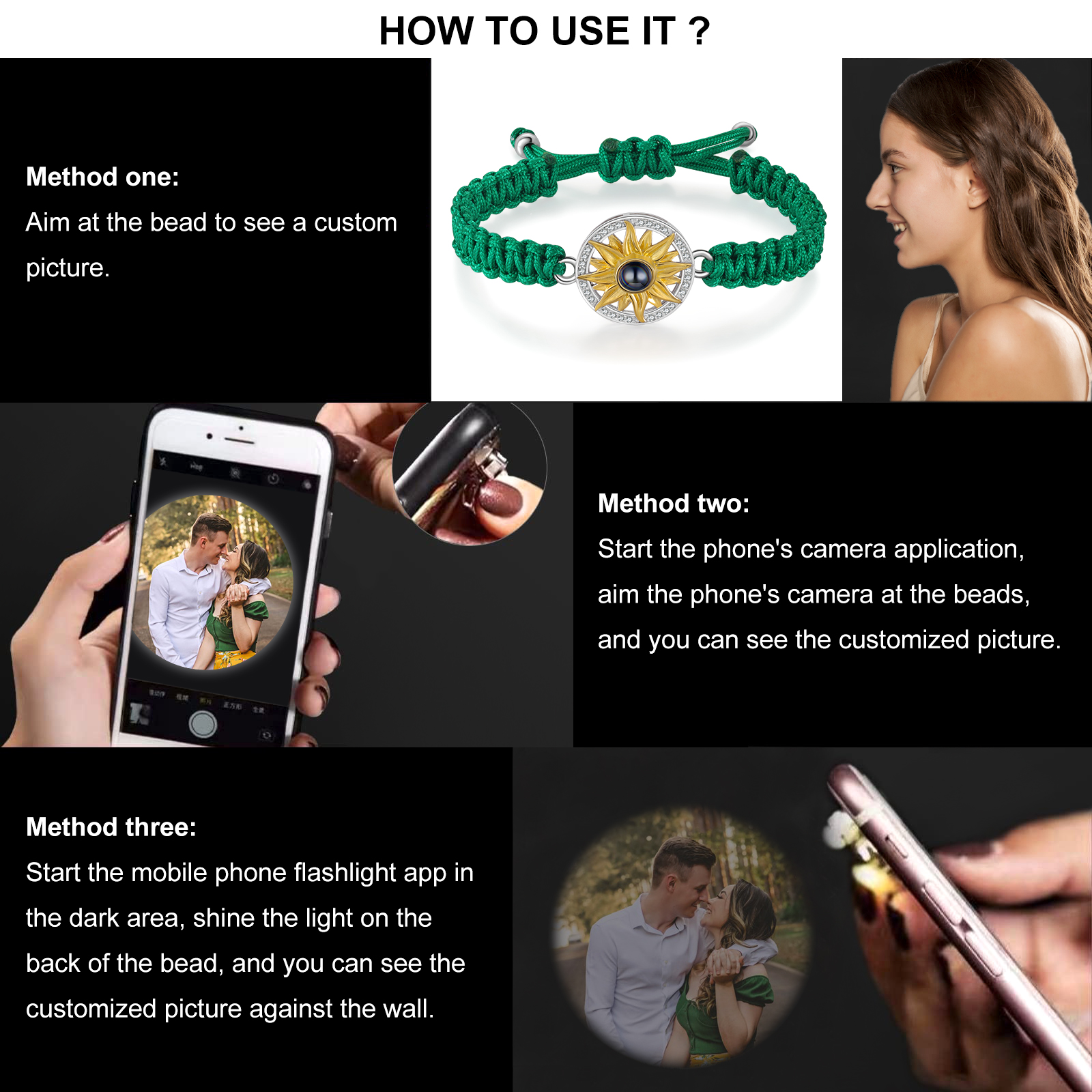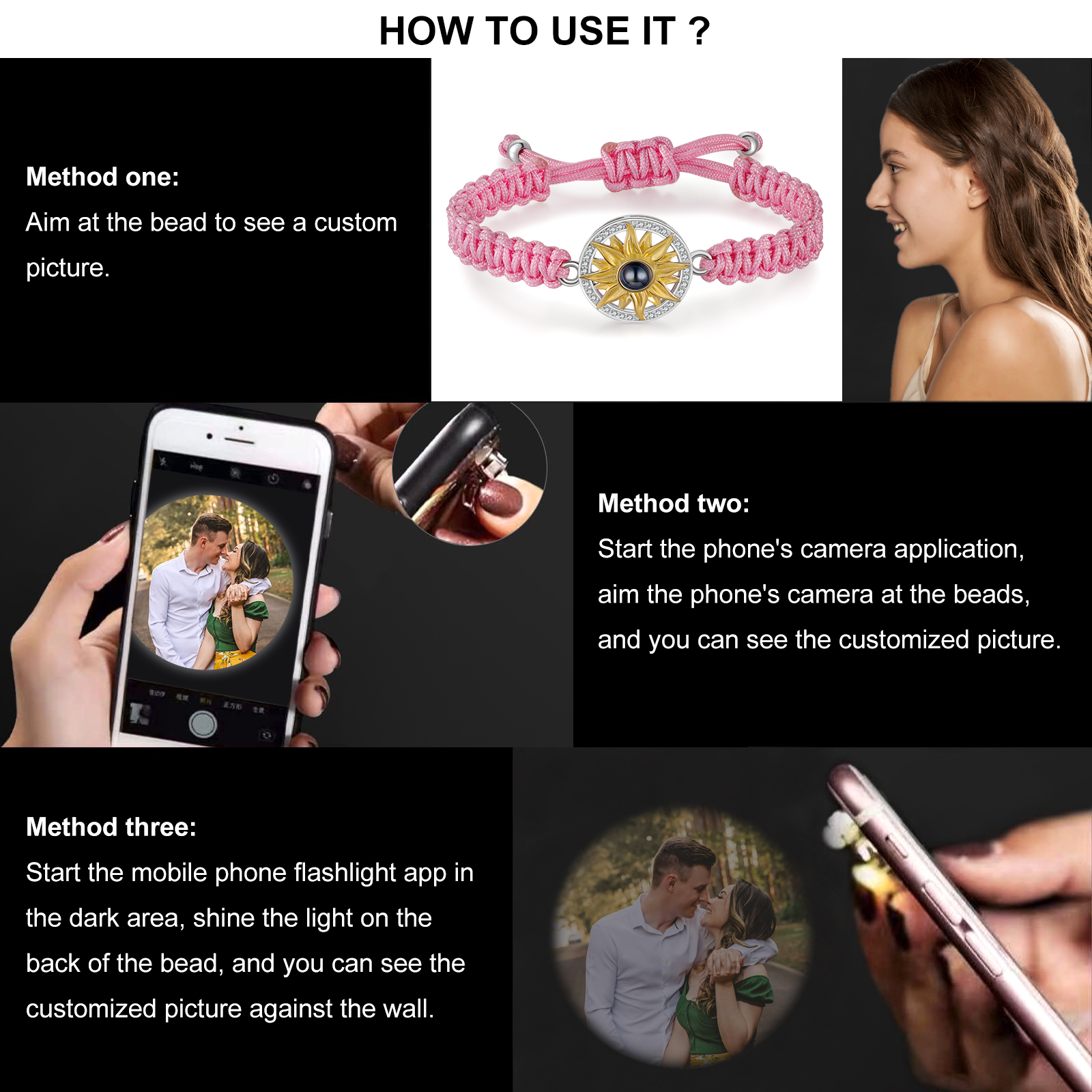 Braccialetto con Sole Proiezione 1 foto personalizzabile colorato regalo per coppia