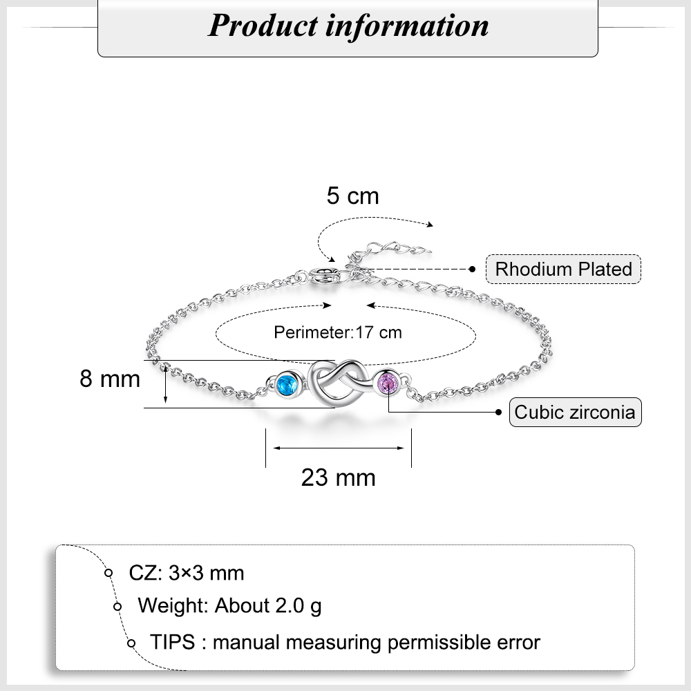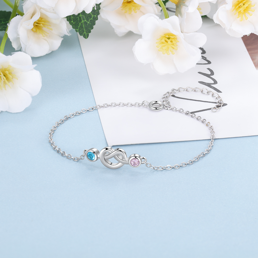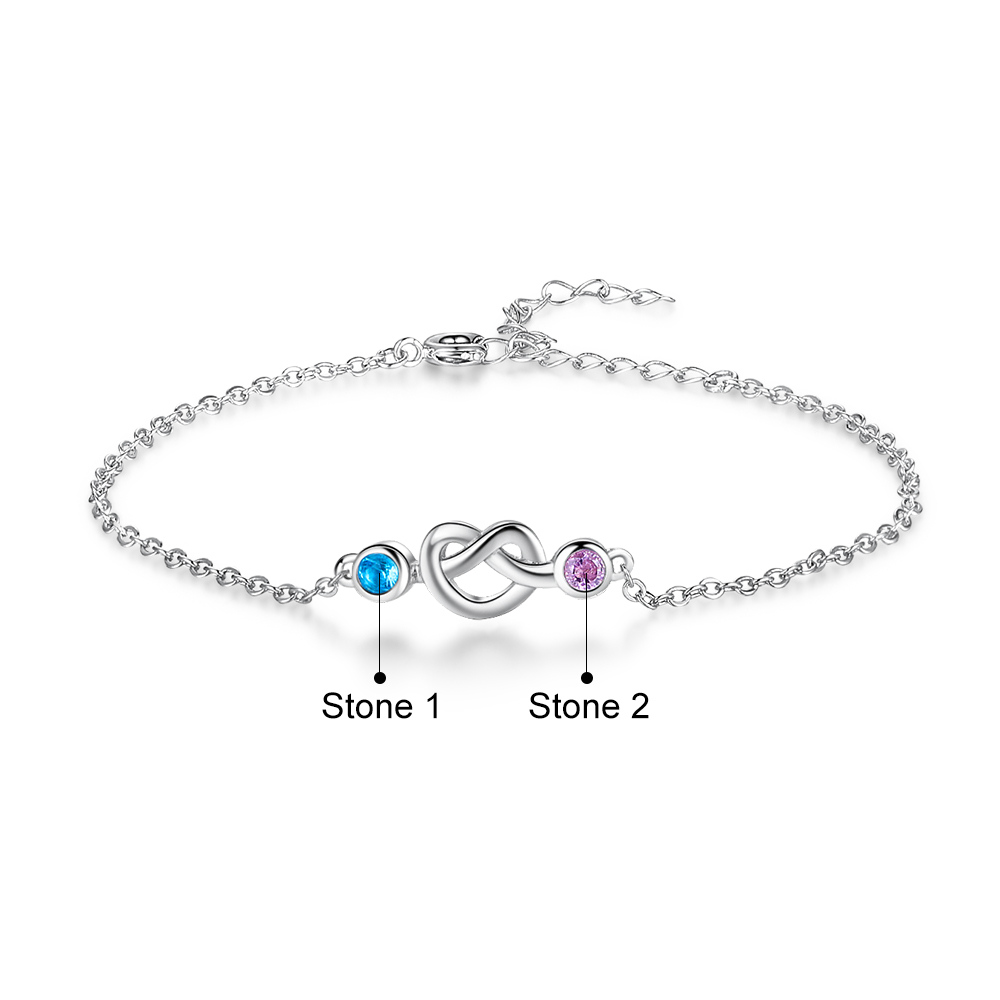 Braccialetto cuore con 2 pietre di nascita personalizzate regalo per donna