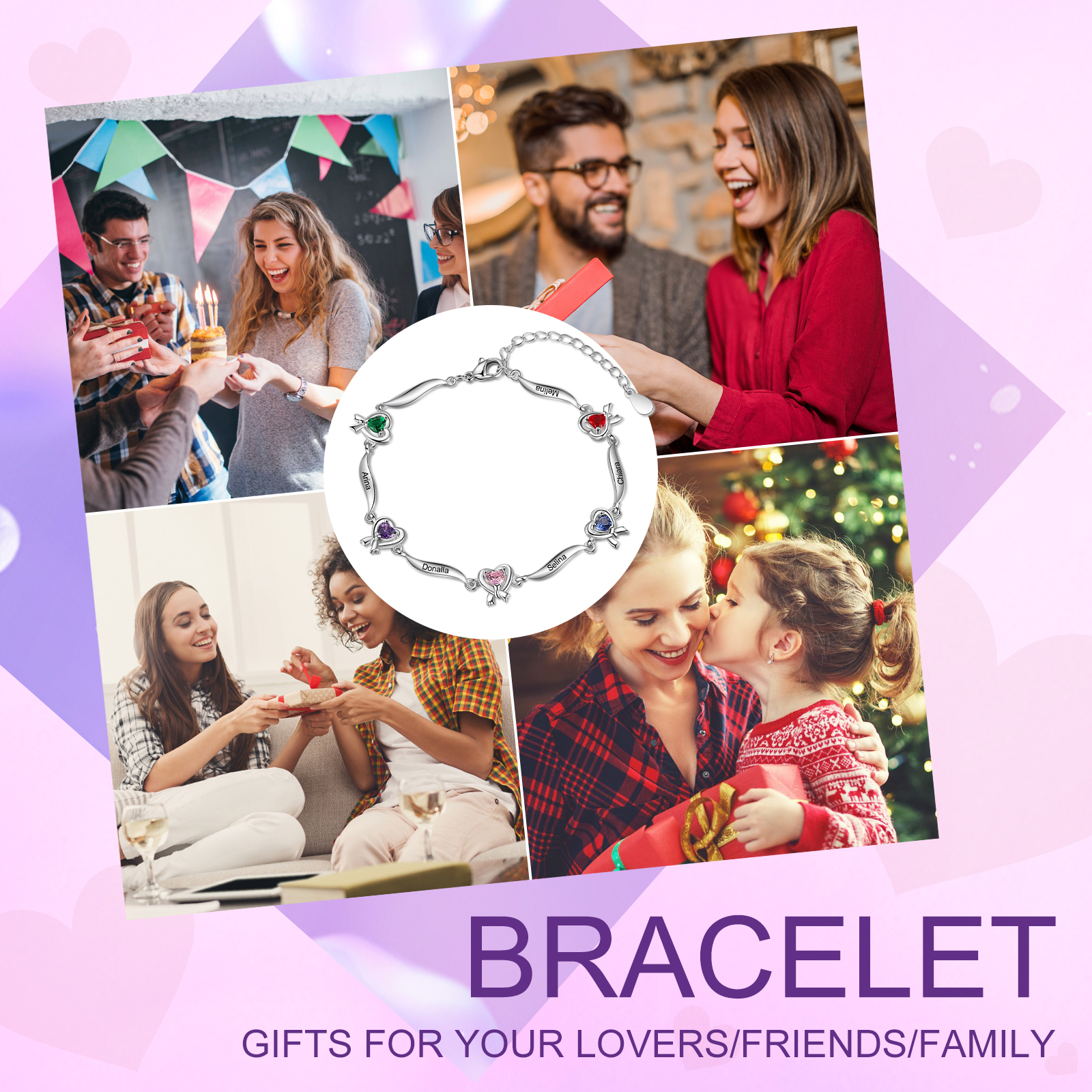 Braccialetto Cuore nodo di farfalla con 5 pietre di nascita e 5 nomi personalizzati regalo per donna