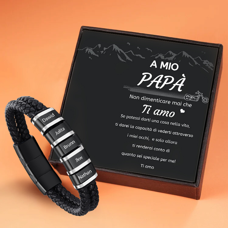 Braccialetto da uomo in pelle con carta 5 nomi personalizzati regalo per la festa del papà