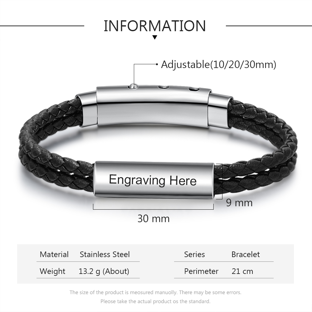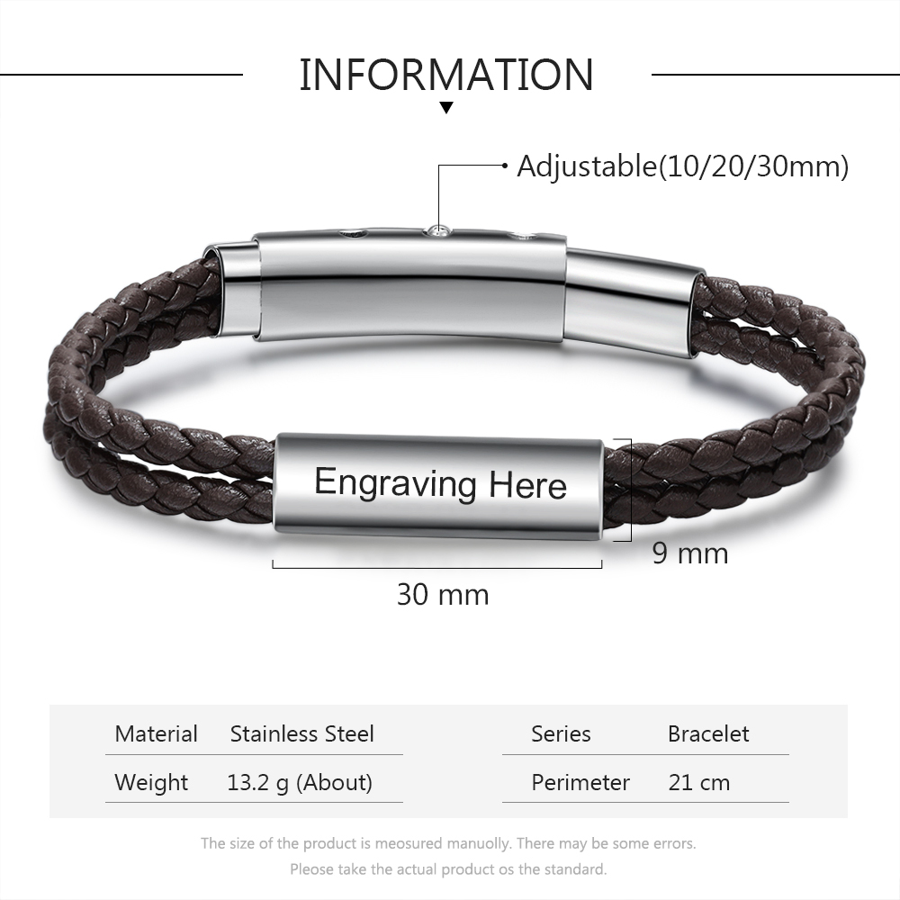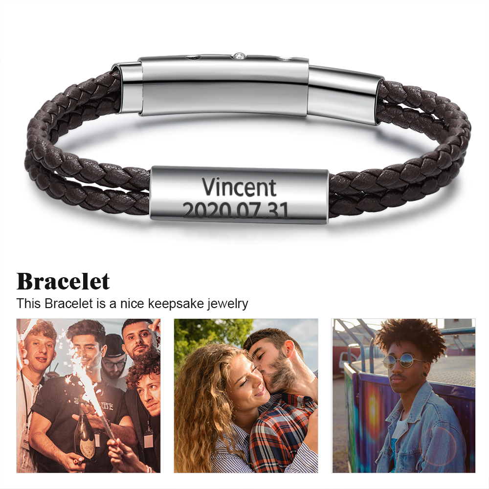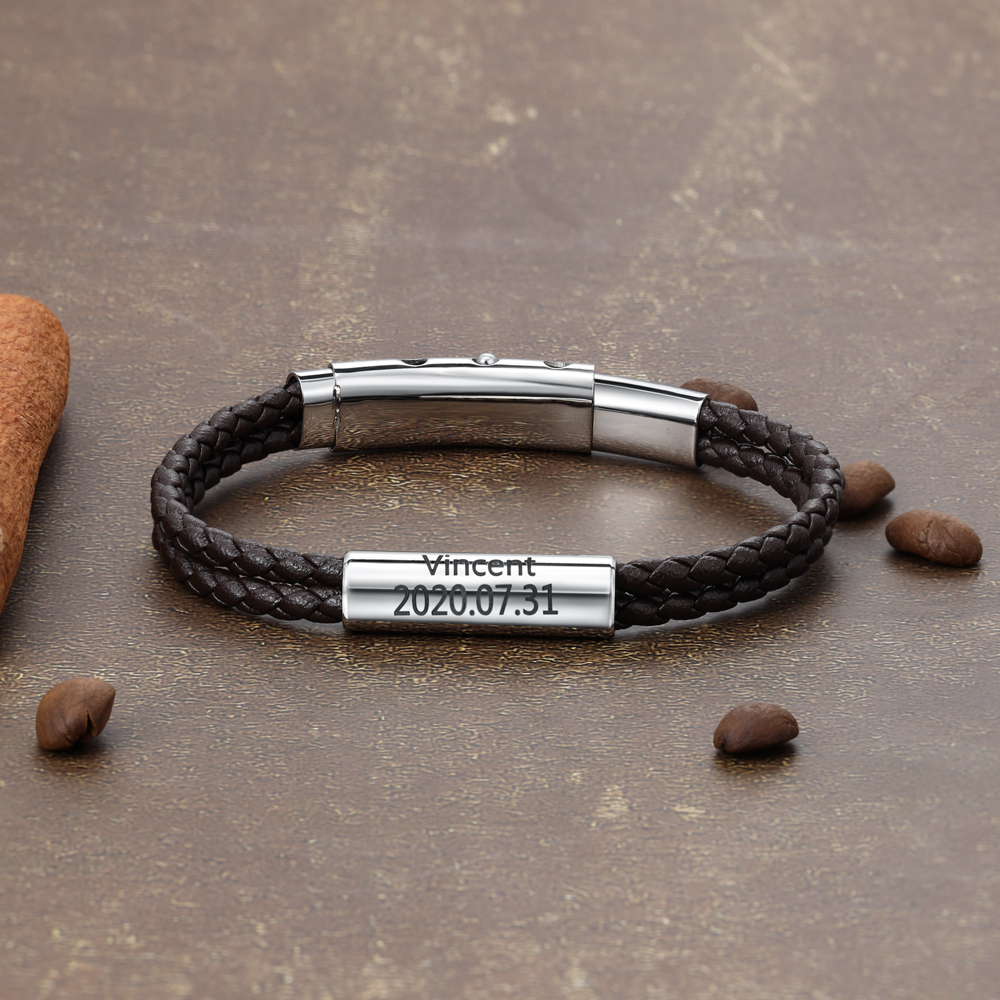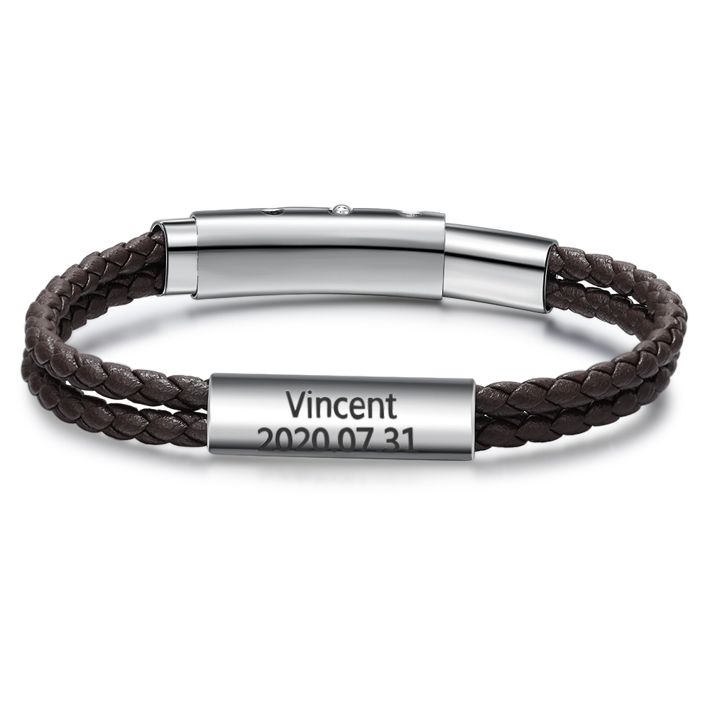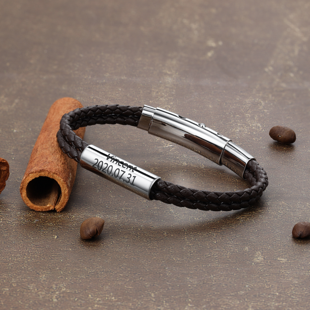 Braccialetto da uomo in pelle con nome personalizzato
