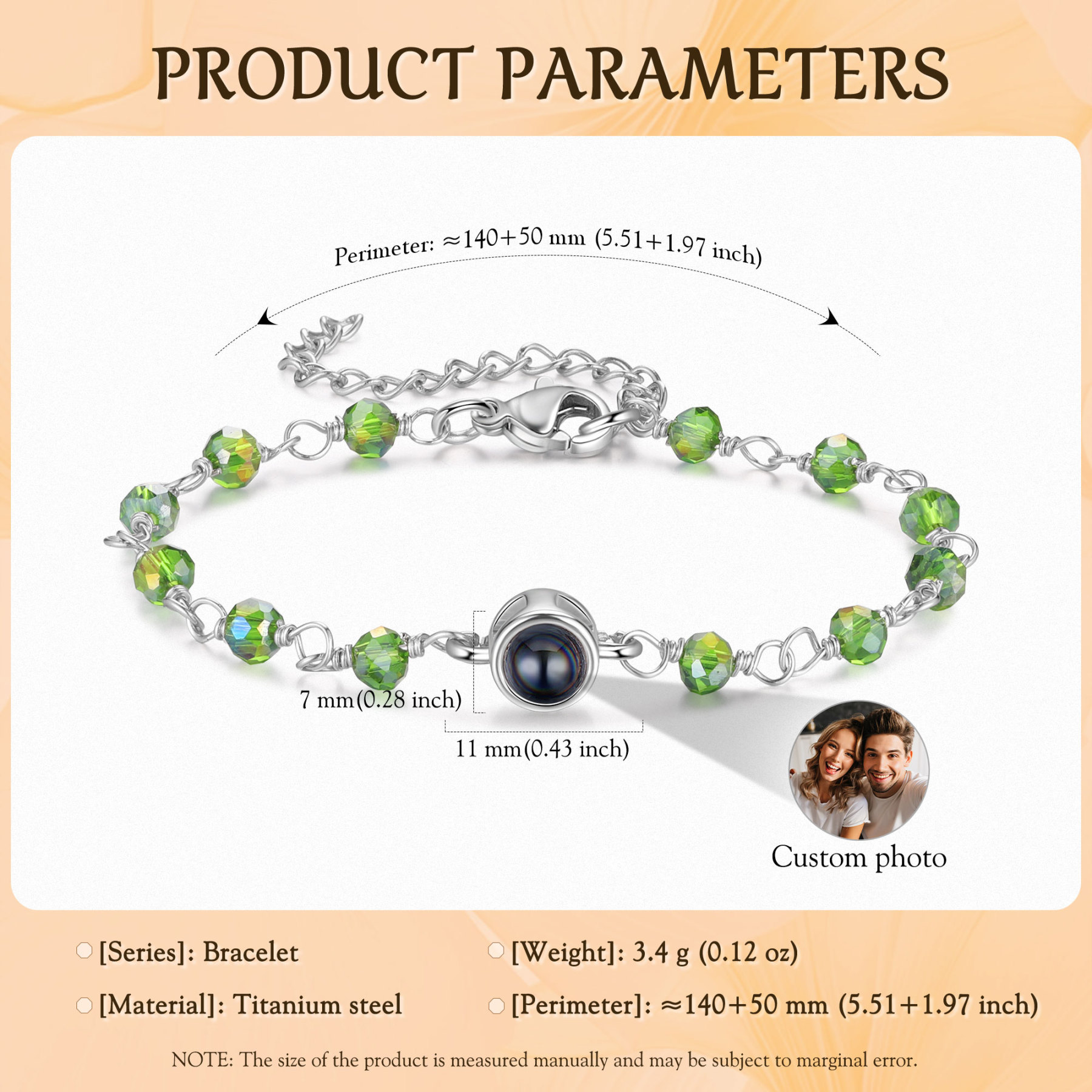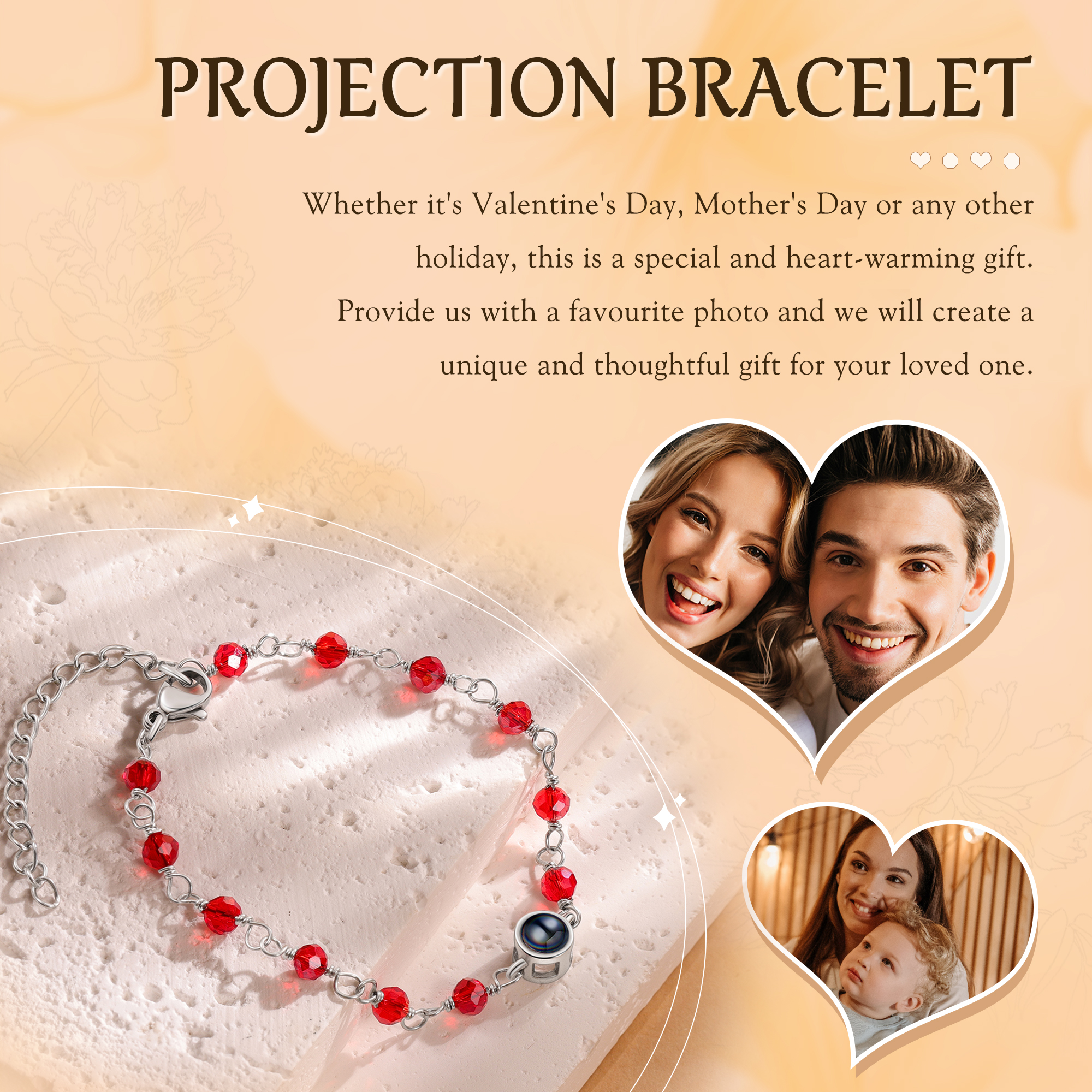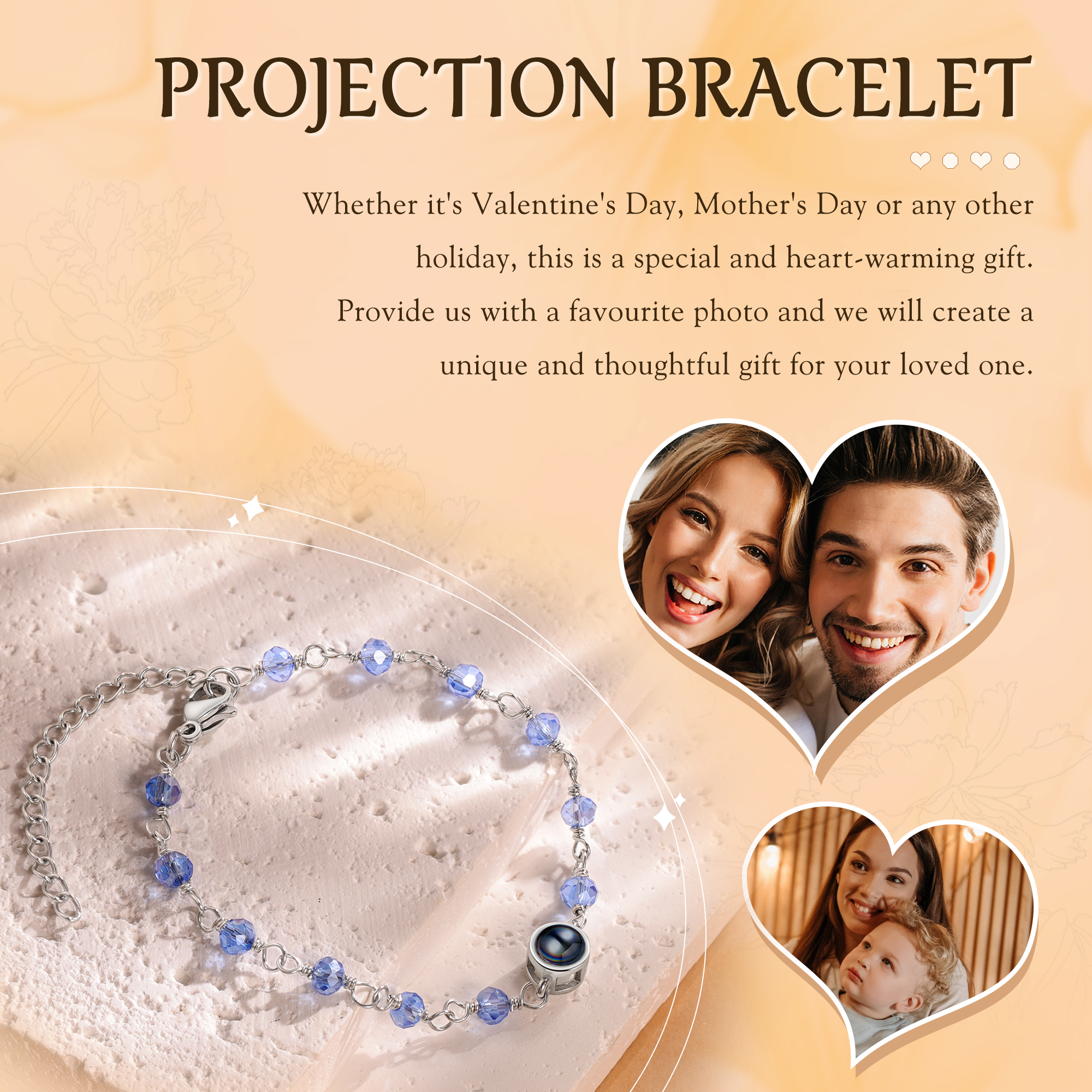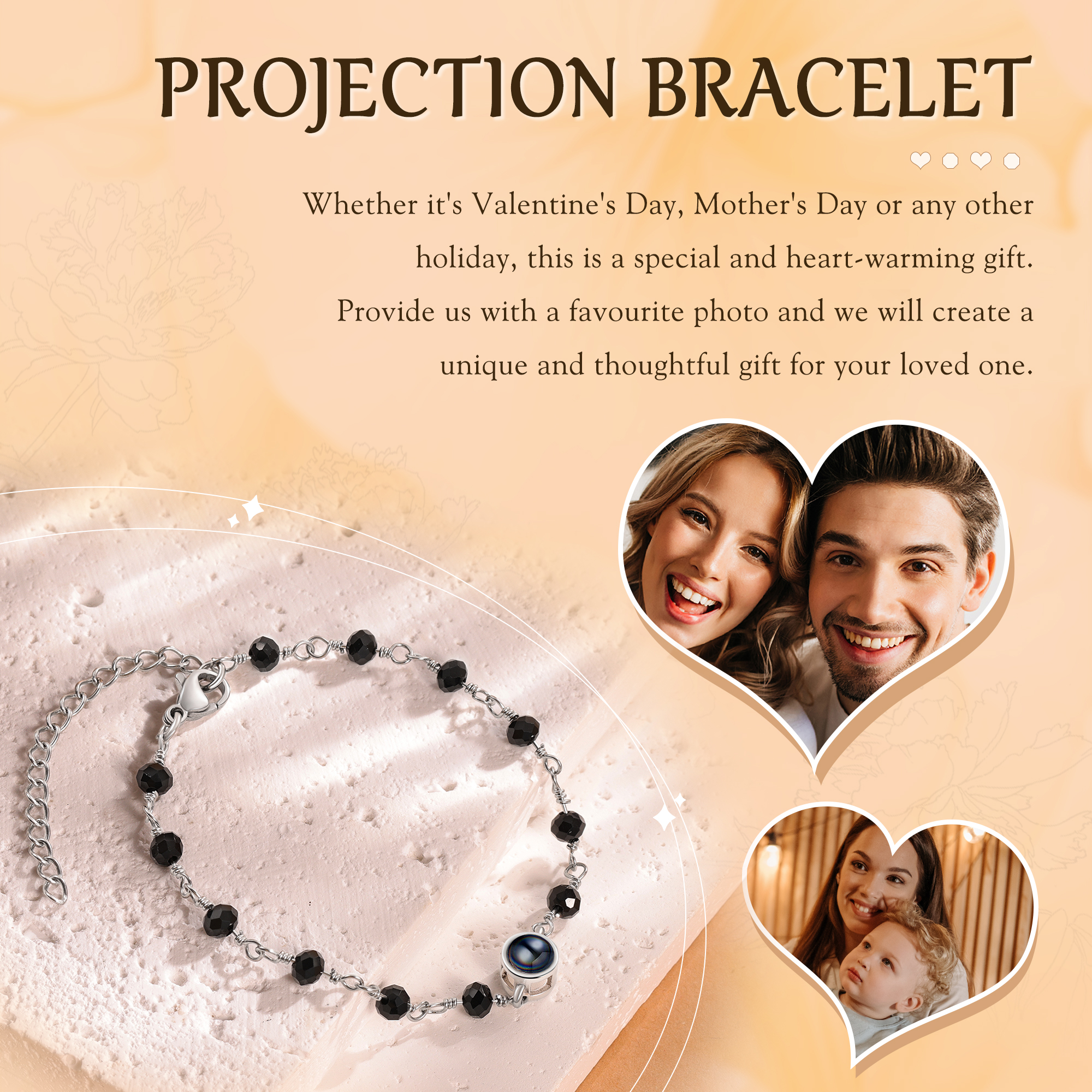 Braccialetto di colorate perle con proiezione di foto regalo per donna multicolori da scegliere