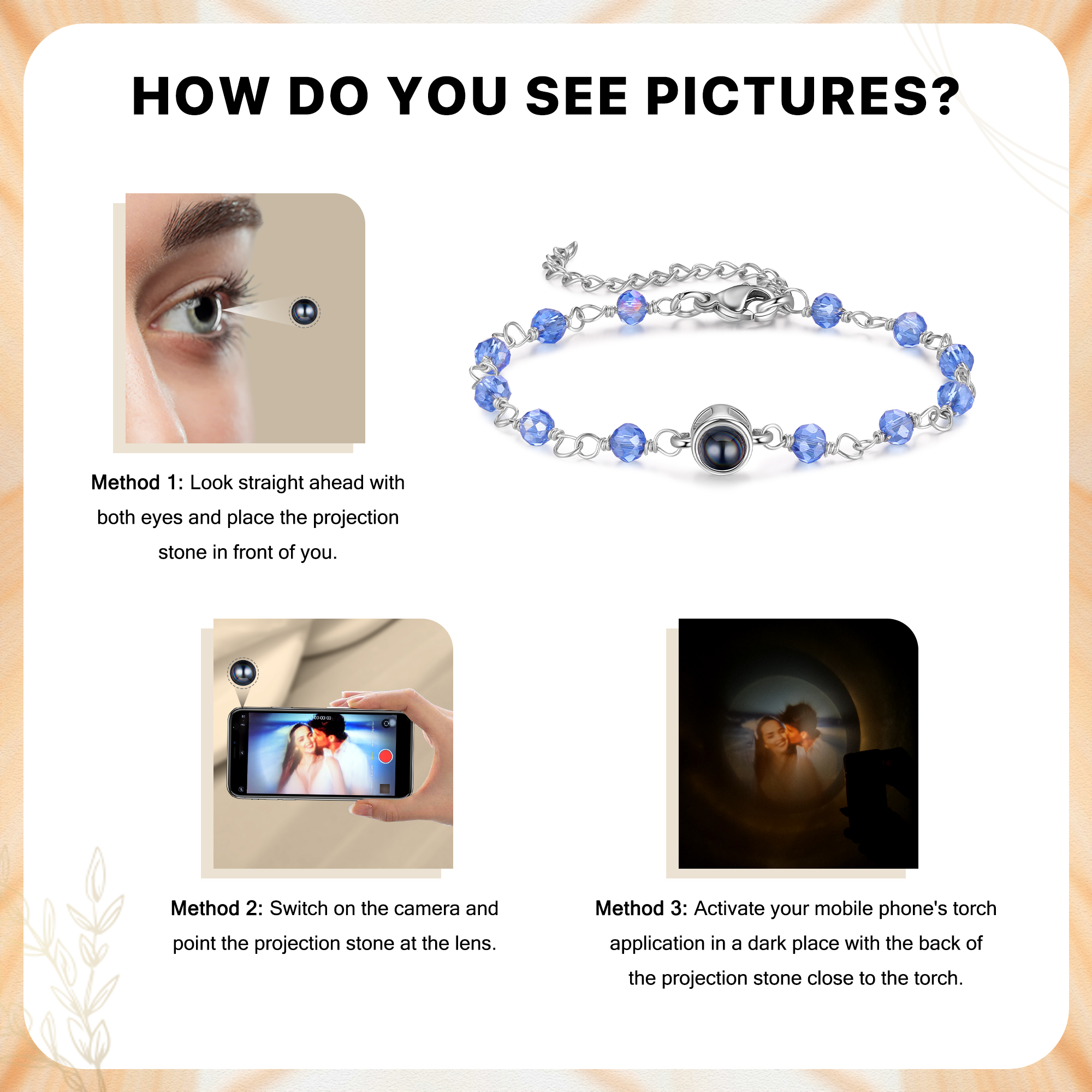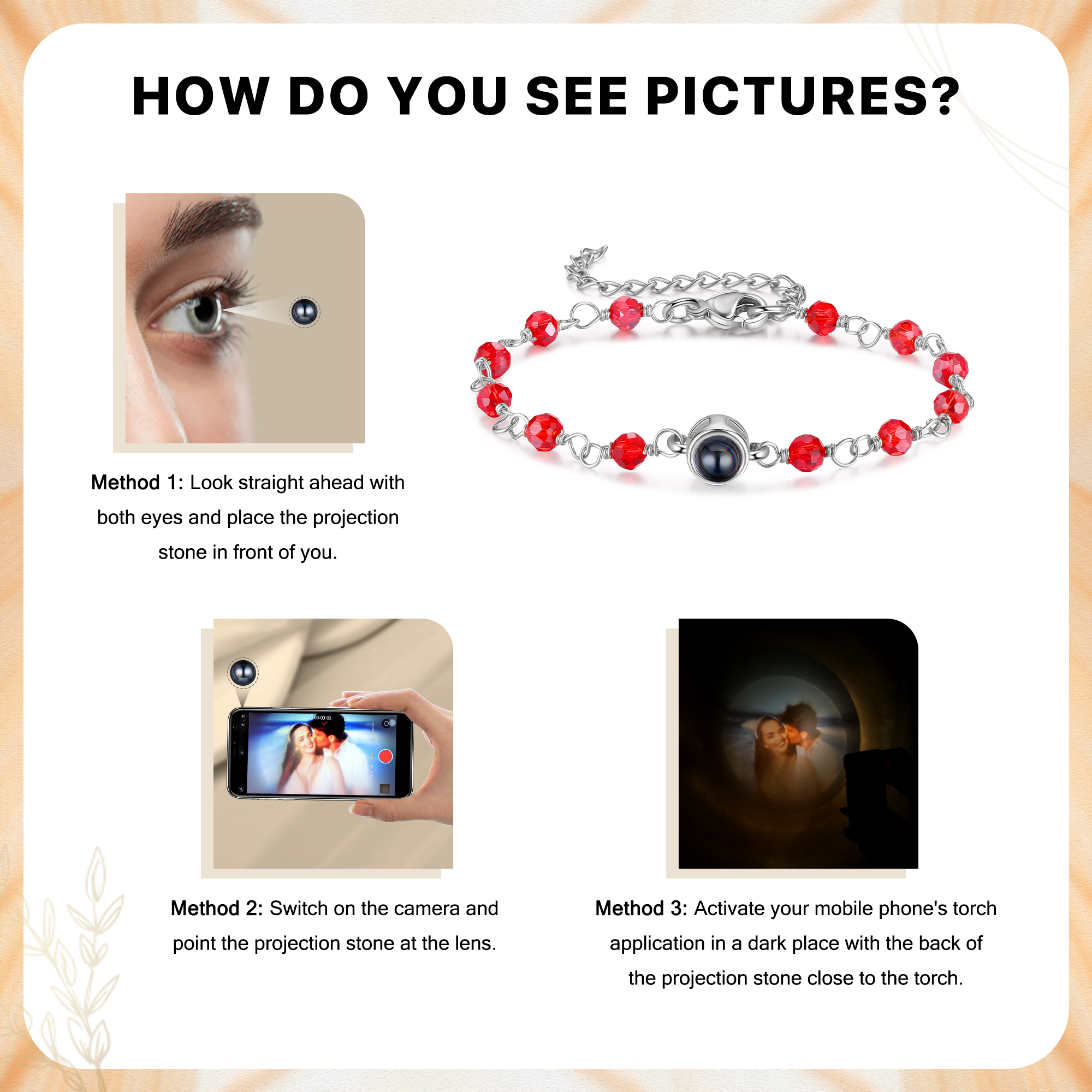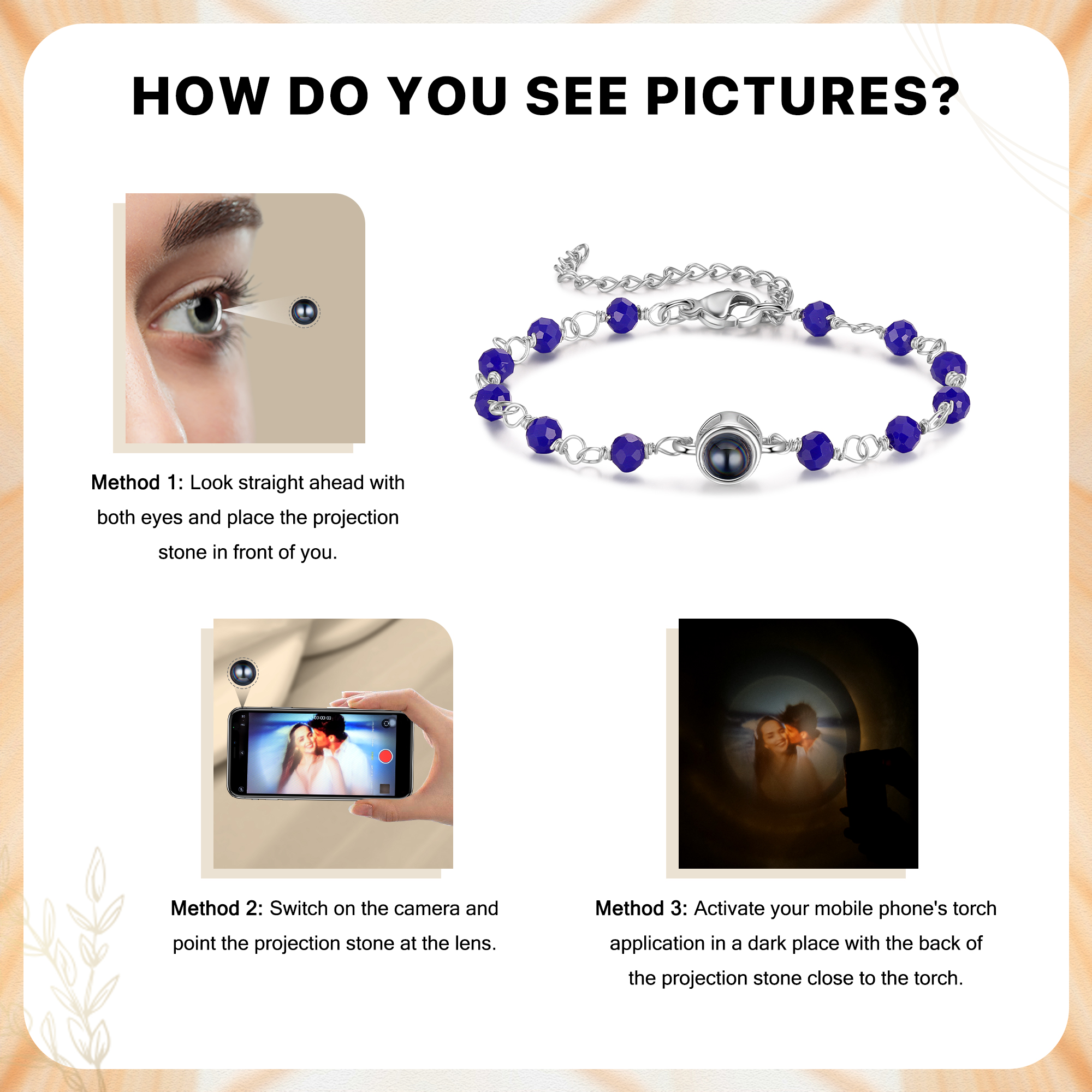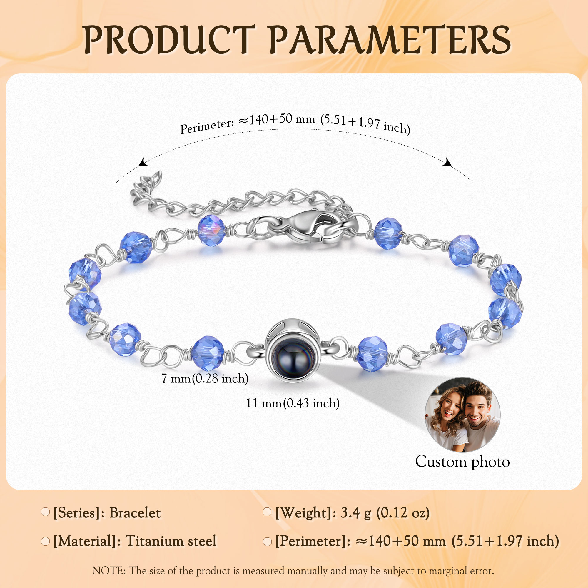 Braccialetto di colorate perle con proiezione di foto regalo per donna multicolori da scegliere