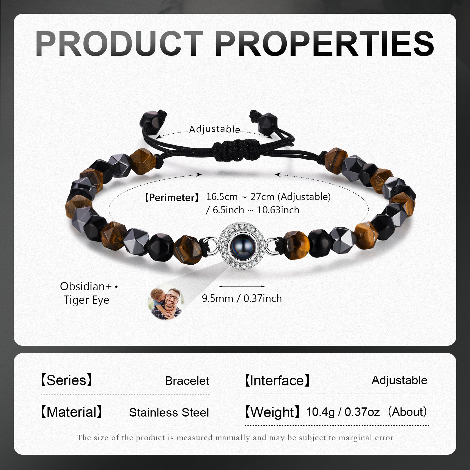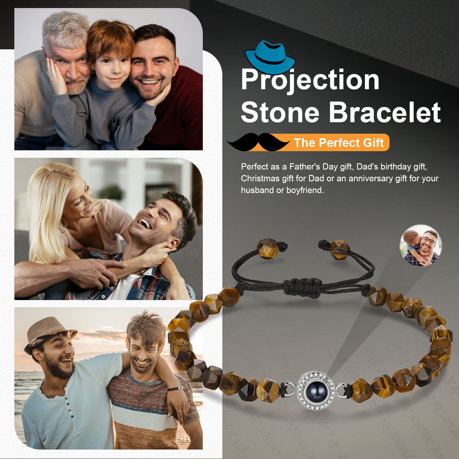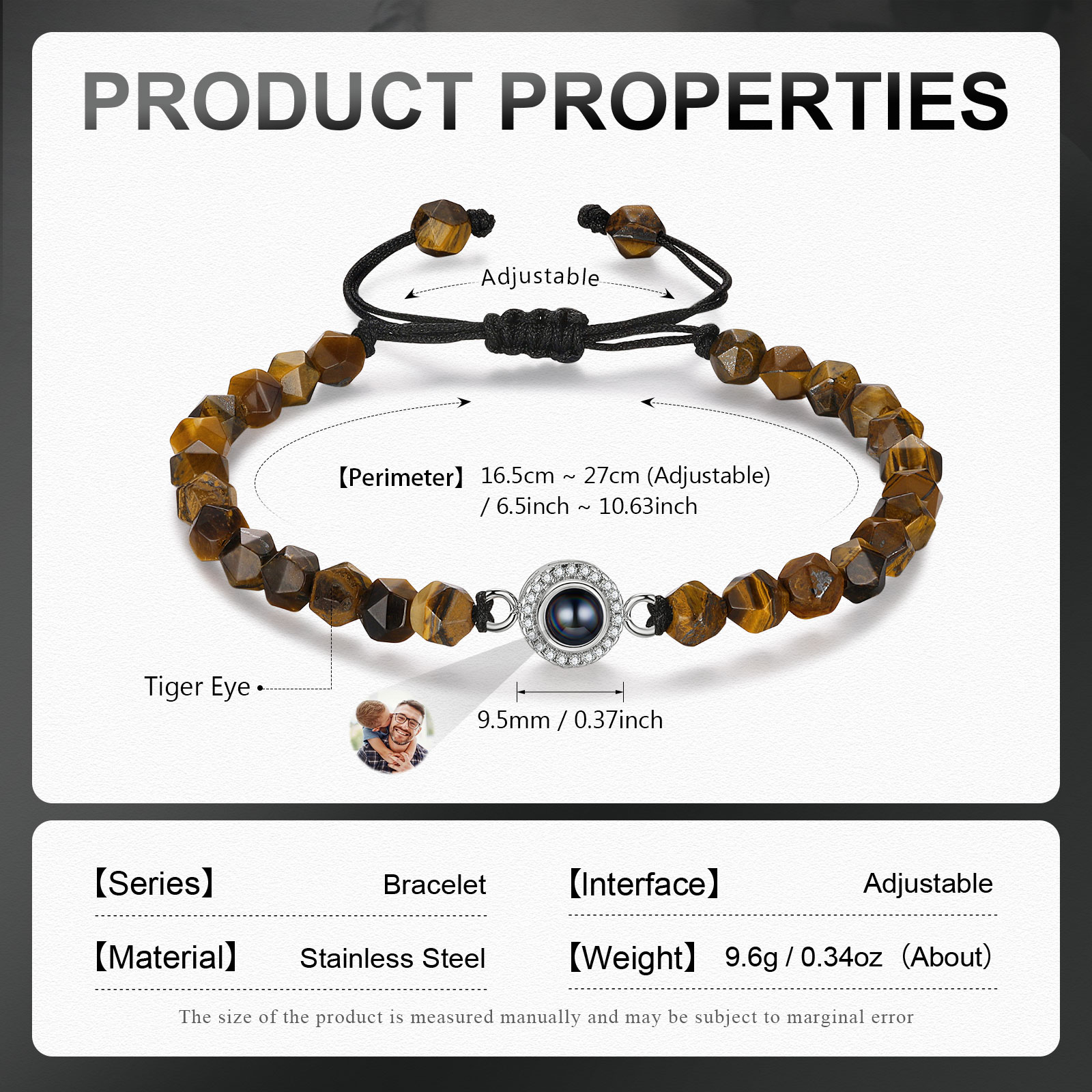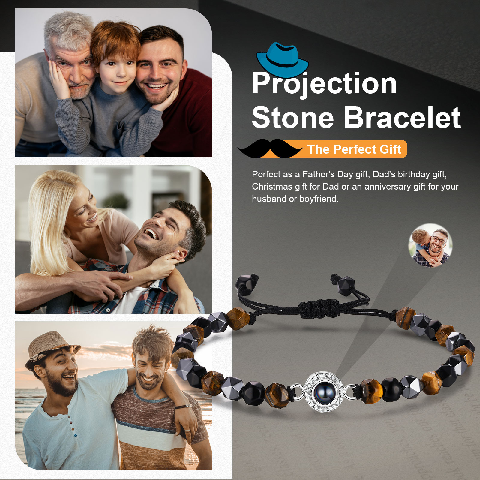 Braccialetto di perle irregolare con proiezione di foto regalo per uomo multicolori da scegliere