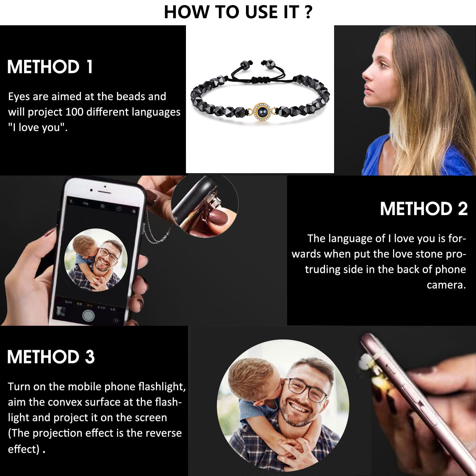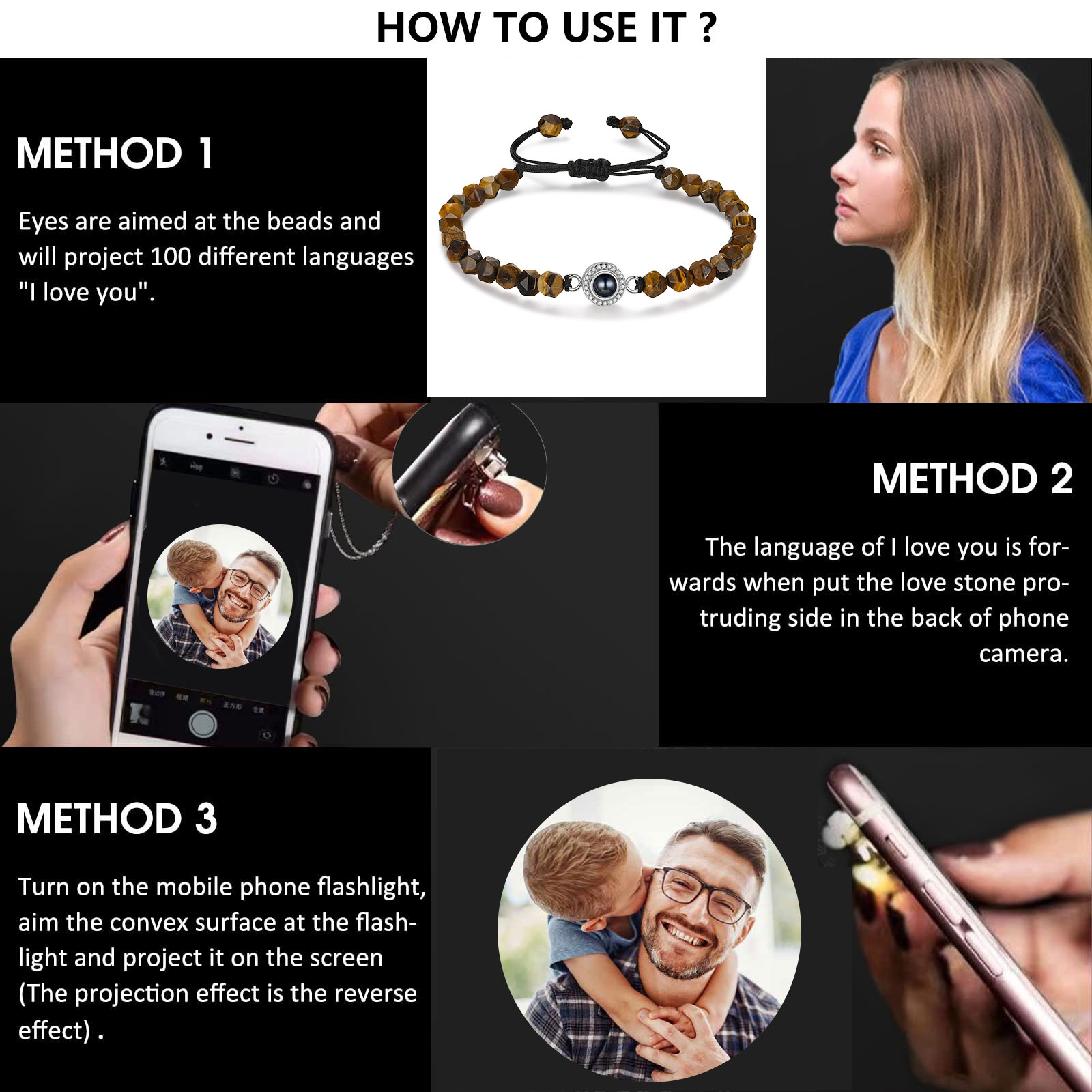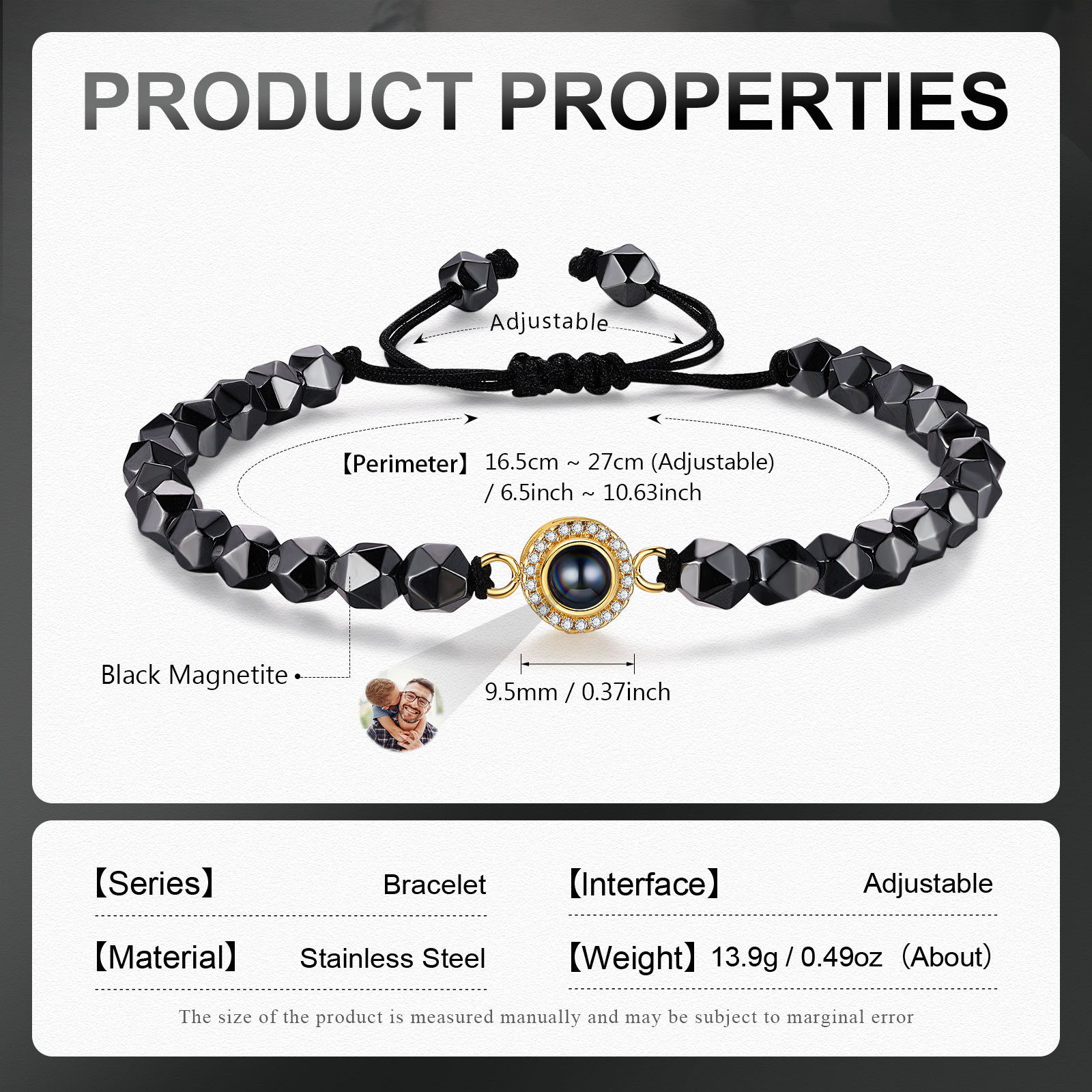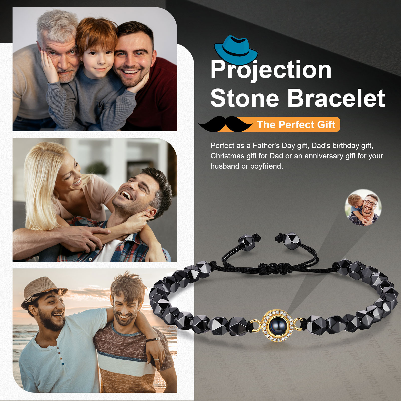 Braccialetto di perle irregolare con proiezione di foto regalo per uomo multicolori da scegliere