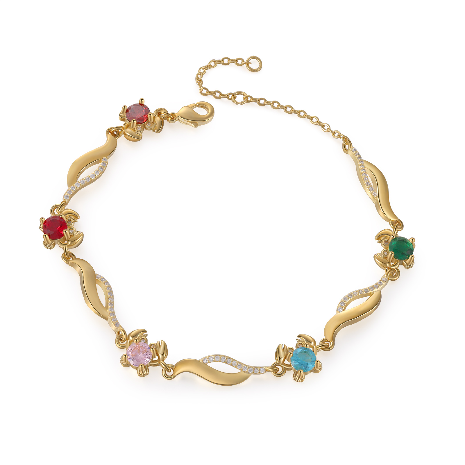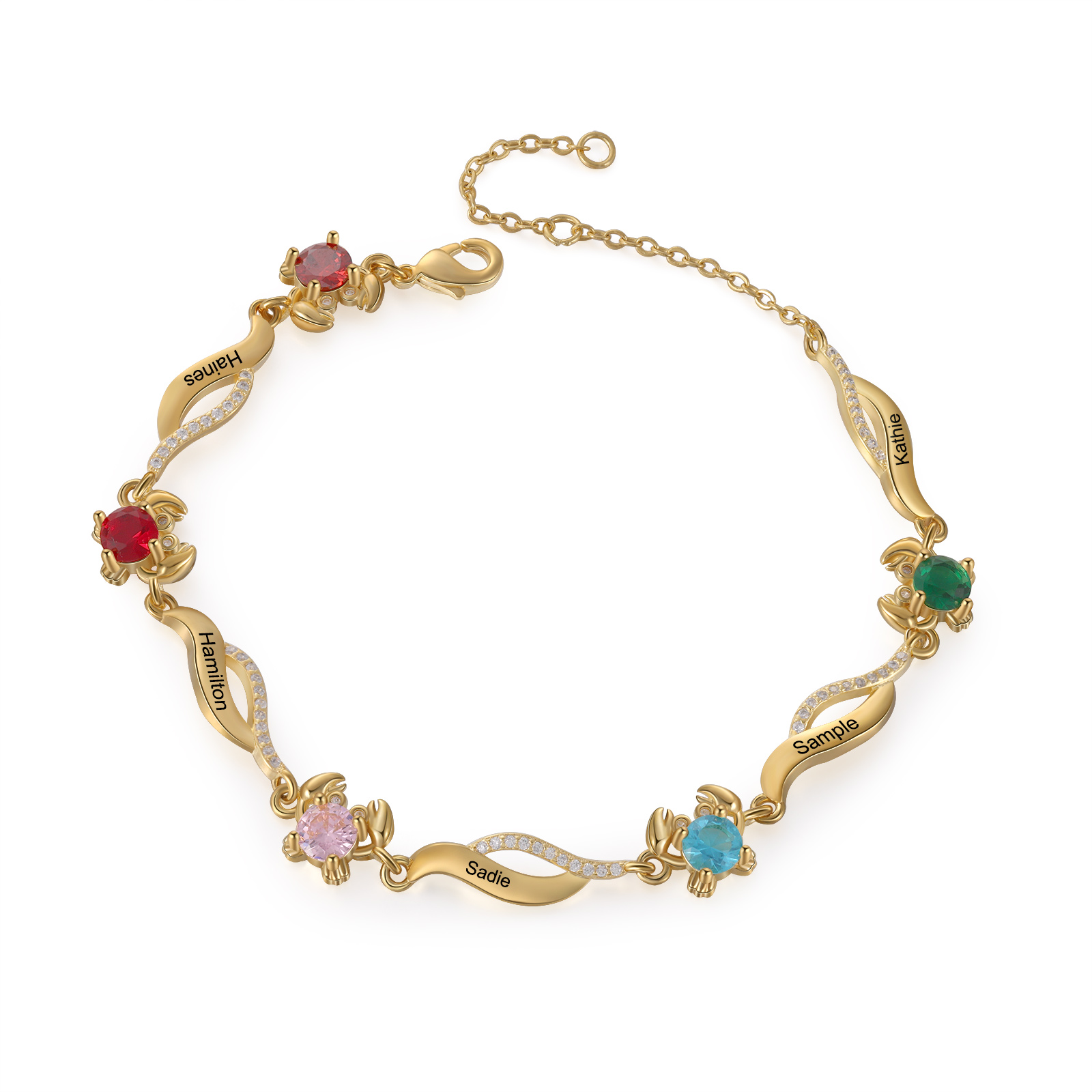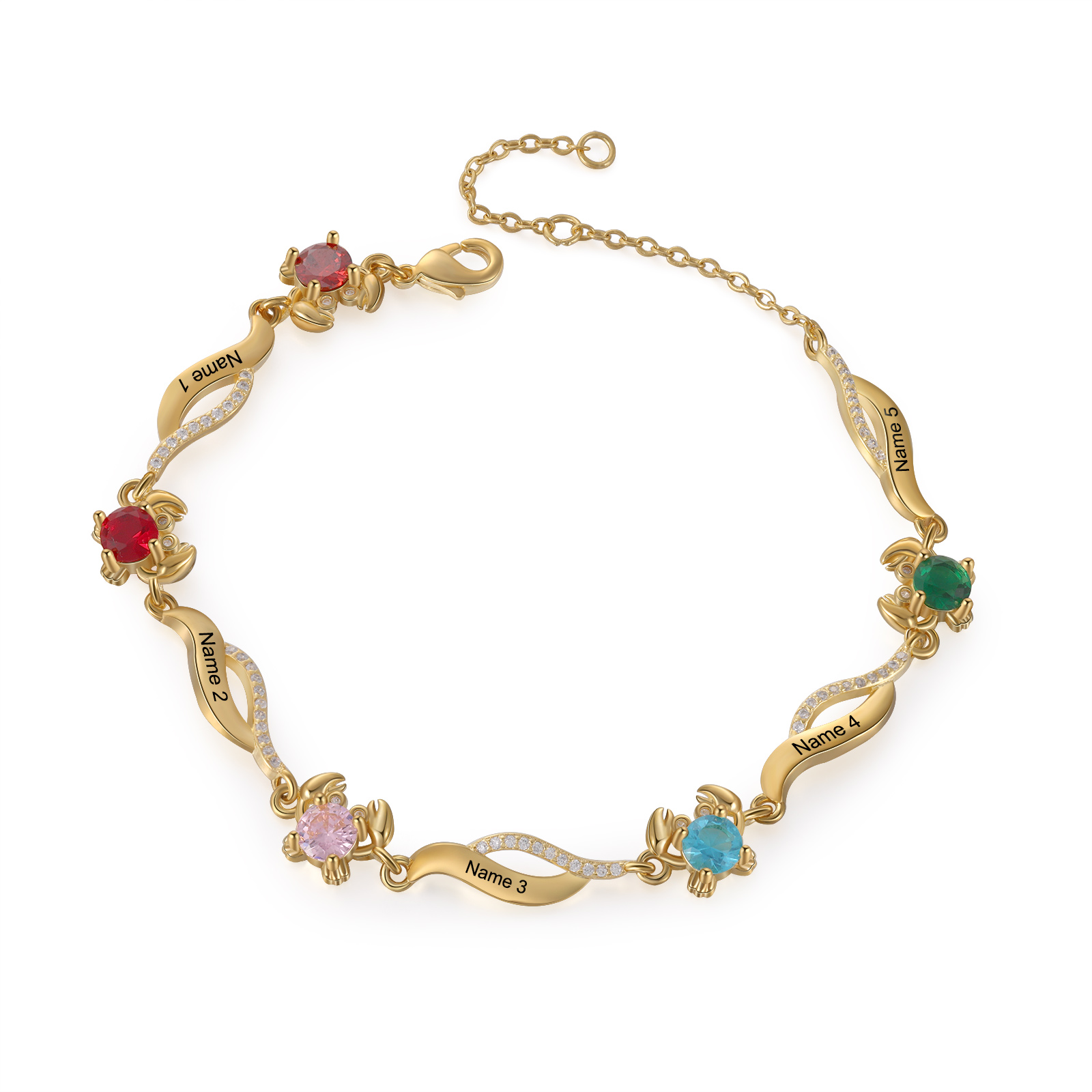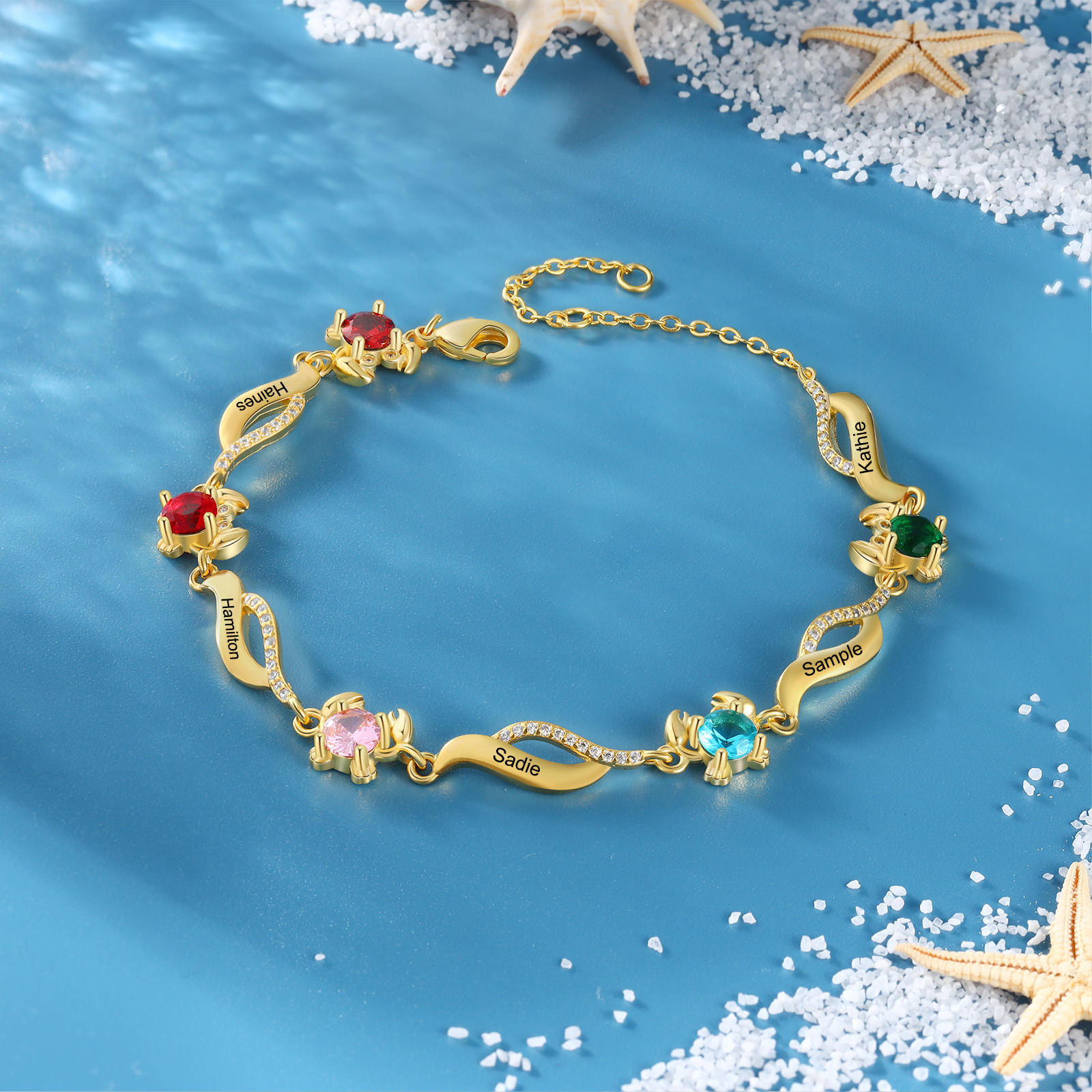 Braccialetto granchio personalizzato con 5 pietre di nascita e 5 nomi personalizzati regalo per donna