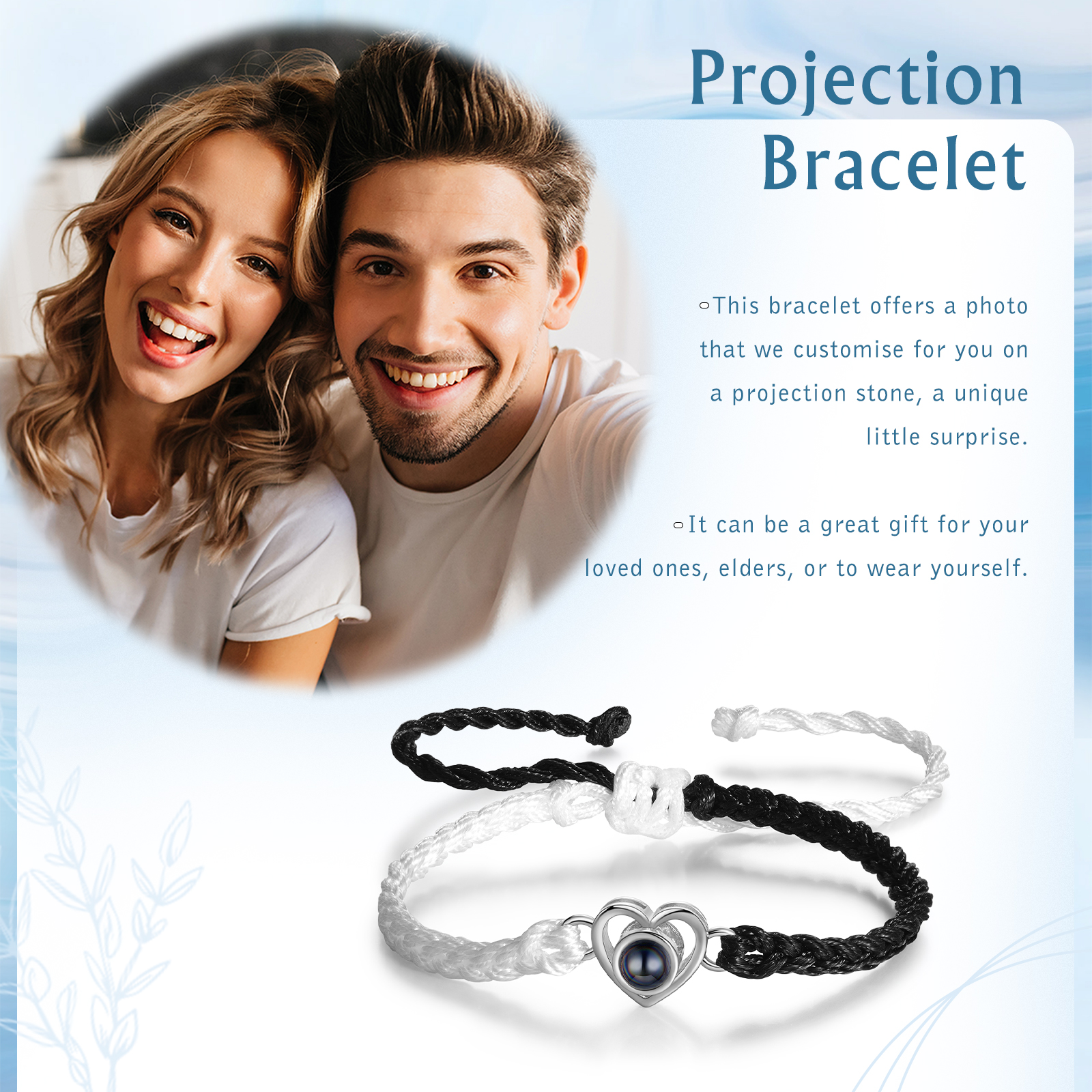 Braccialetto in nylon con Proiezione 1 foto personalizzabile cuore regalo per padre nonno marito