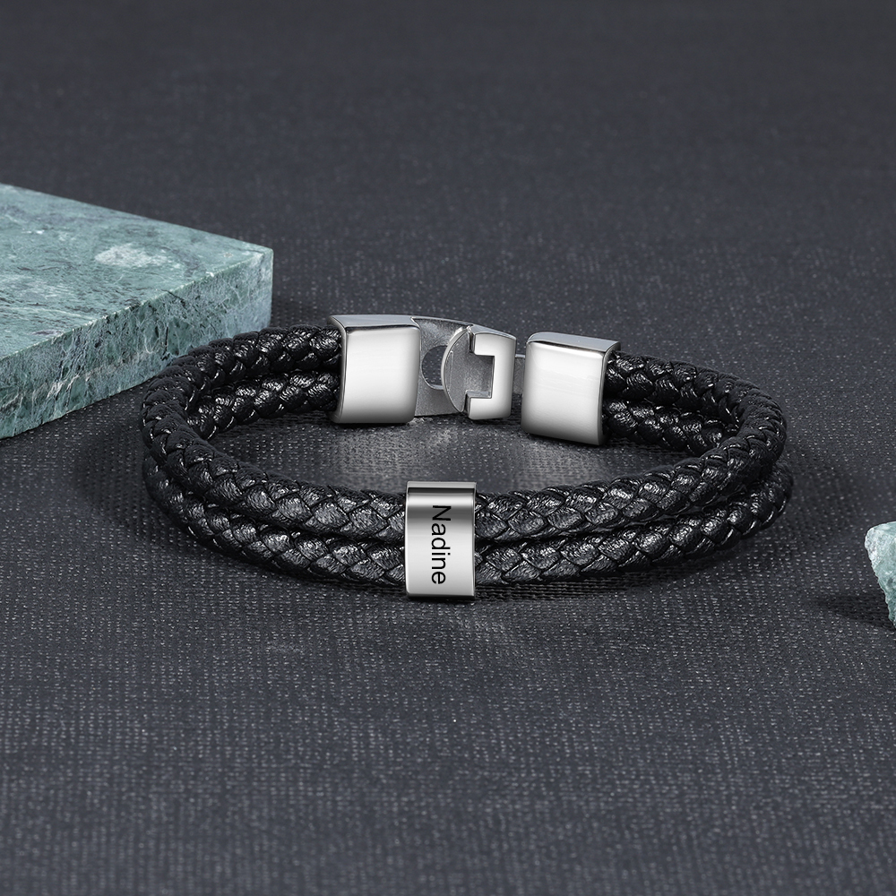 Braccialetto in pelle intrecciata 1 perline Braccialetto maschile con nome personalizzato