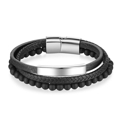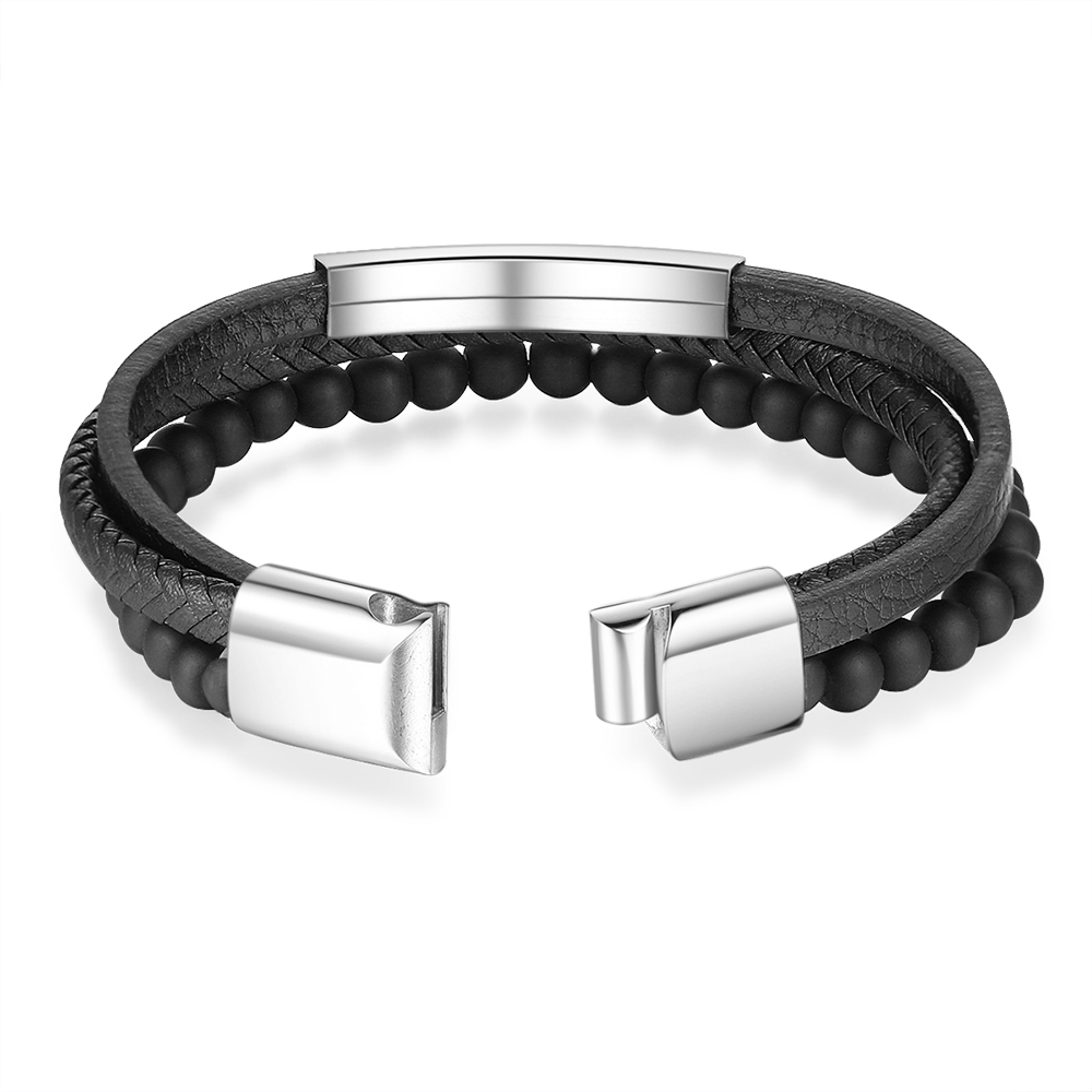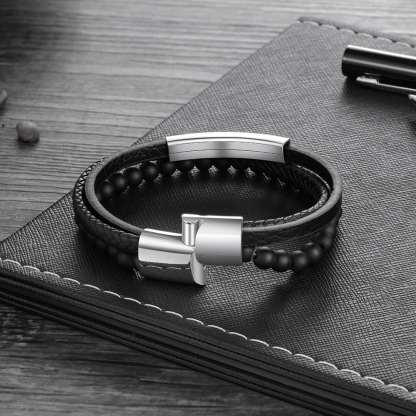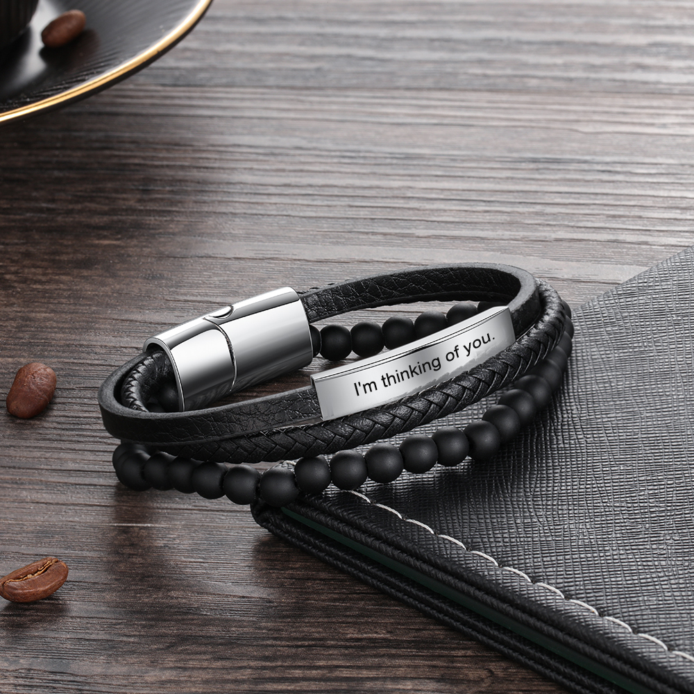 Braccialetto in pelle intrecciata 1 testo Braccialetto maschile personalizzato C stile