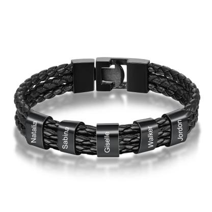 Braccialetto in pelle intrecciata 5 nomi Braccialetto maschile personalizzato
