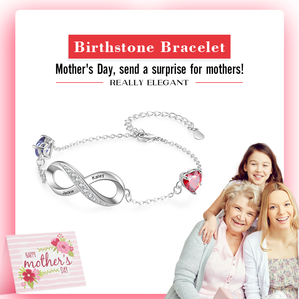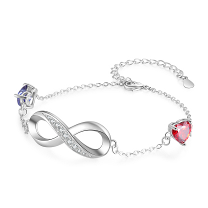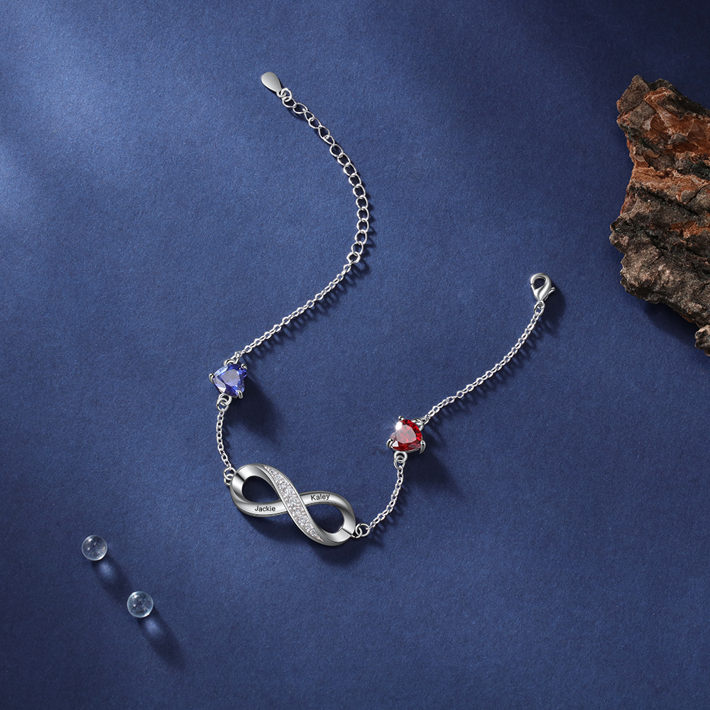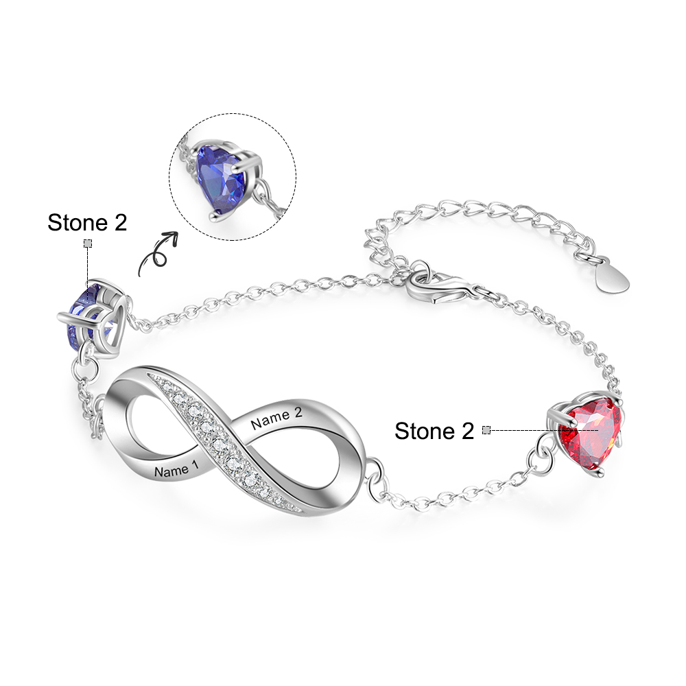 Braccialetto infinito con ciondolo del cuore 2 nomi personalizzati con 2 pietre di nascita