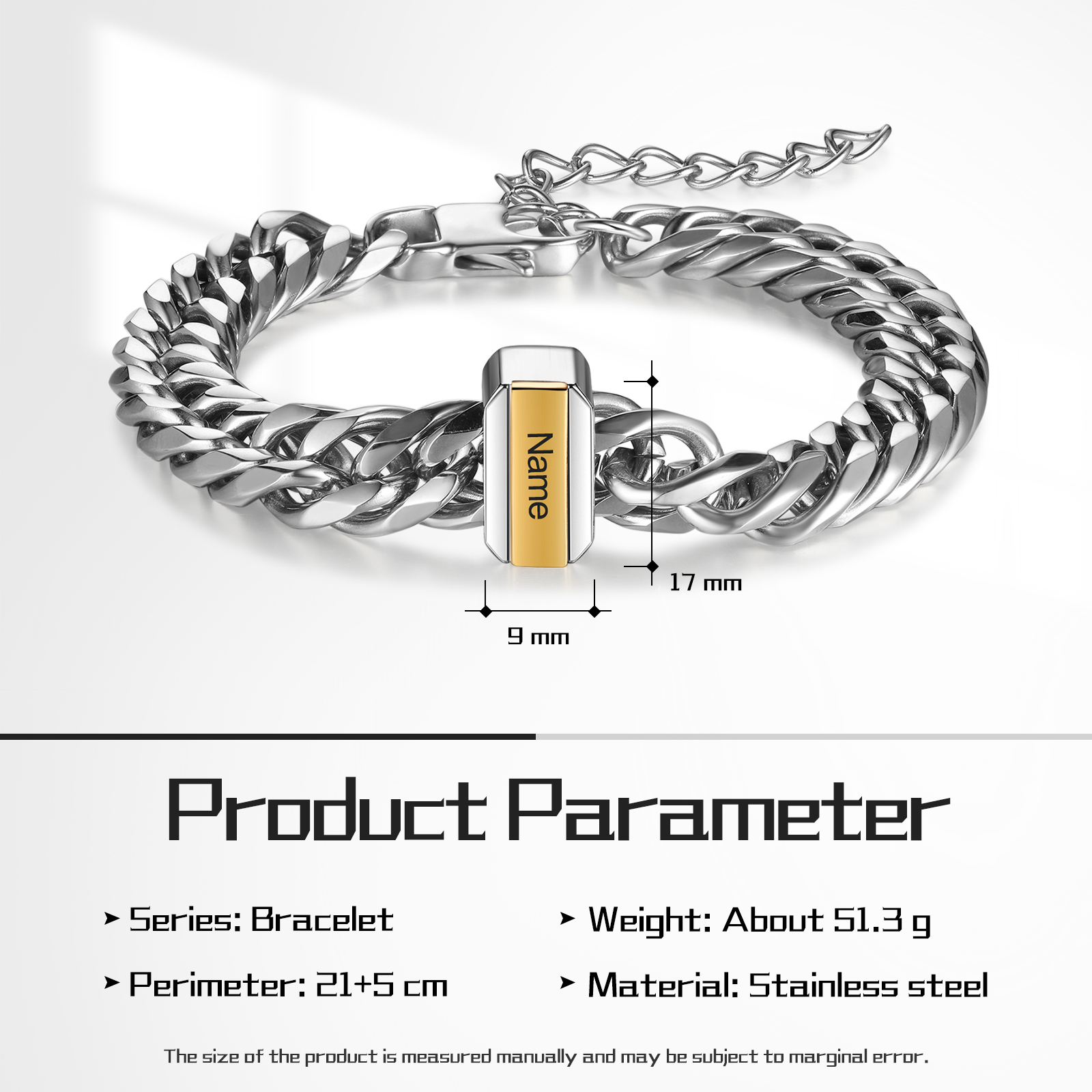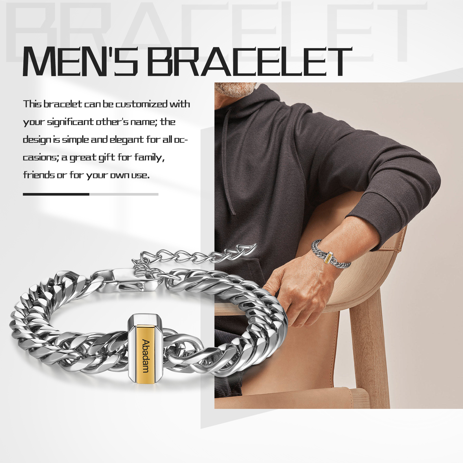 Braccialetto maschile acciaio inox con 1 nome personalizzabile argento