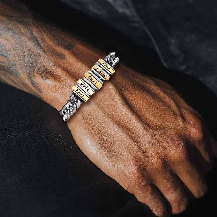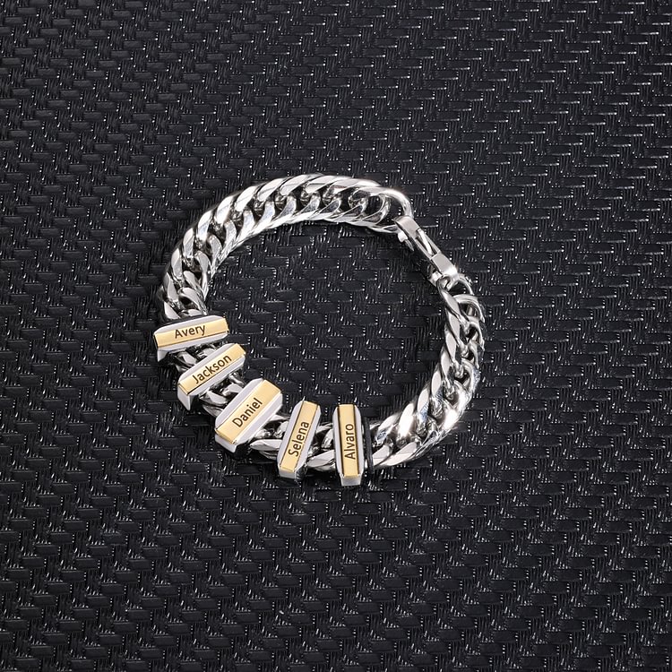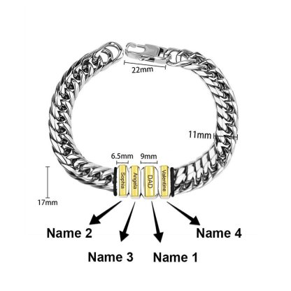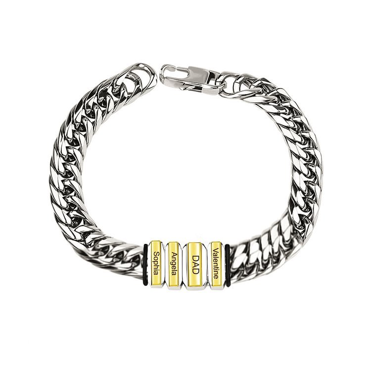 Braccialetto maschile acciaio inox con 4 nomi personalizzabile argento