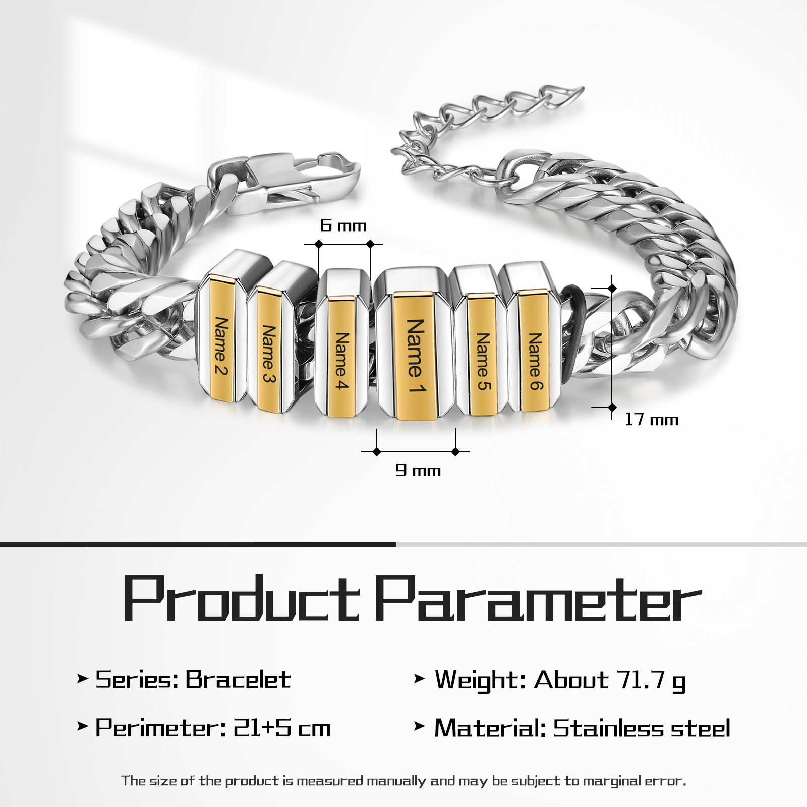 Braccialetto maschile acciaio inox con 6 nomi personalizzabile argento