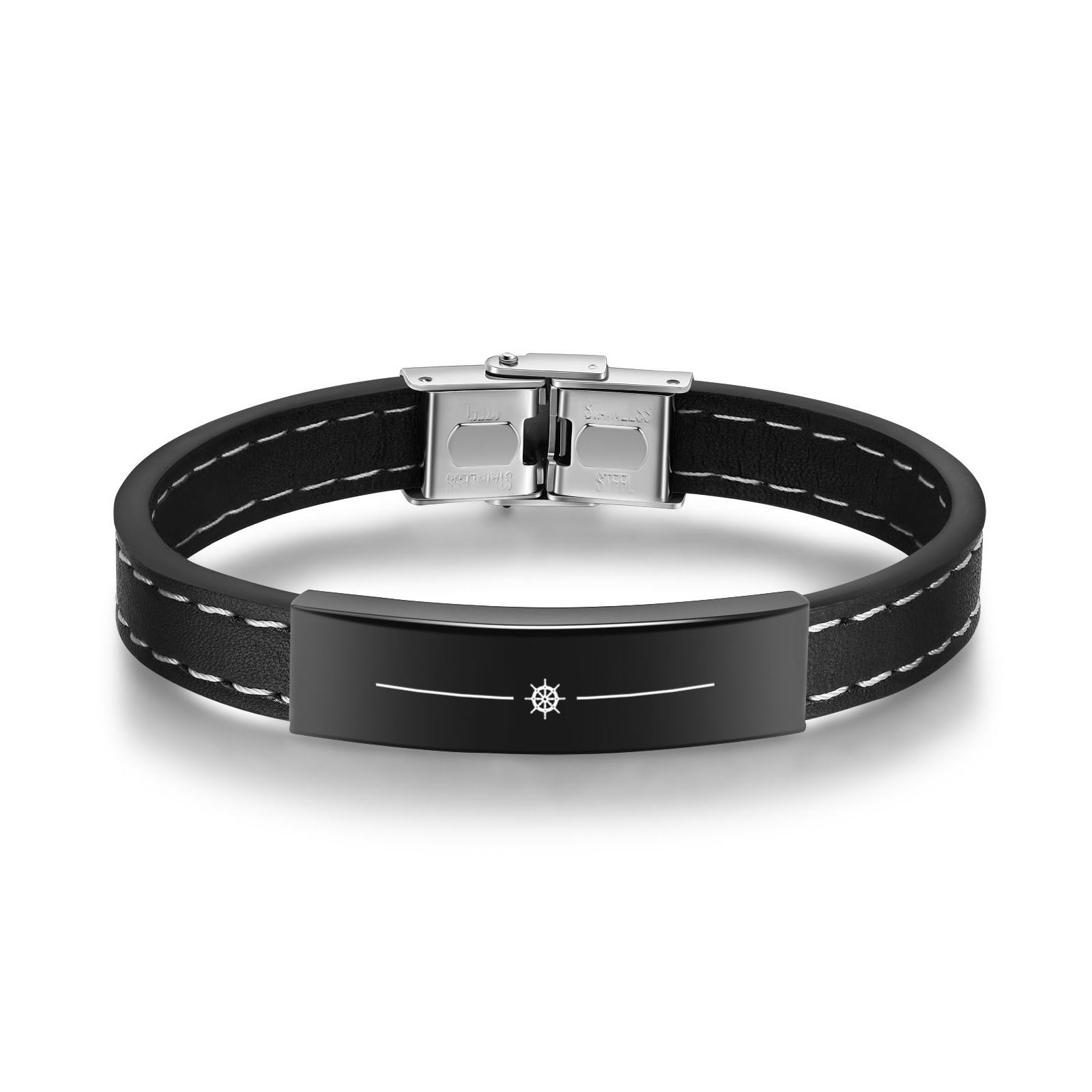 Braccialetto maschile in acciaio inox e ecopelle con 1 nome e 1 data personalizzati