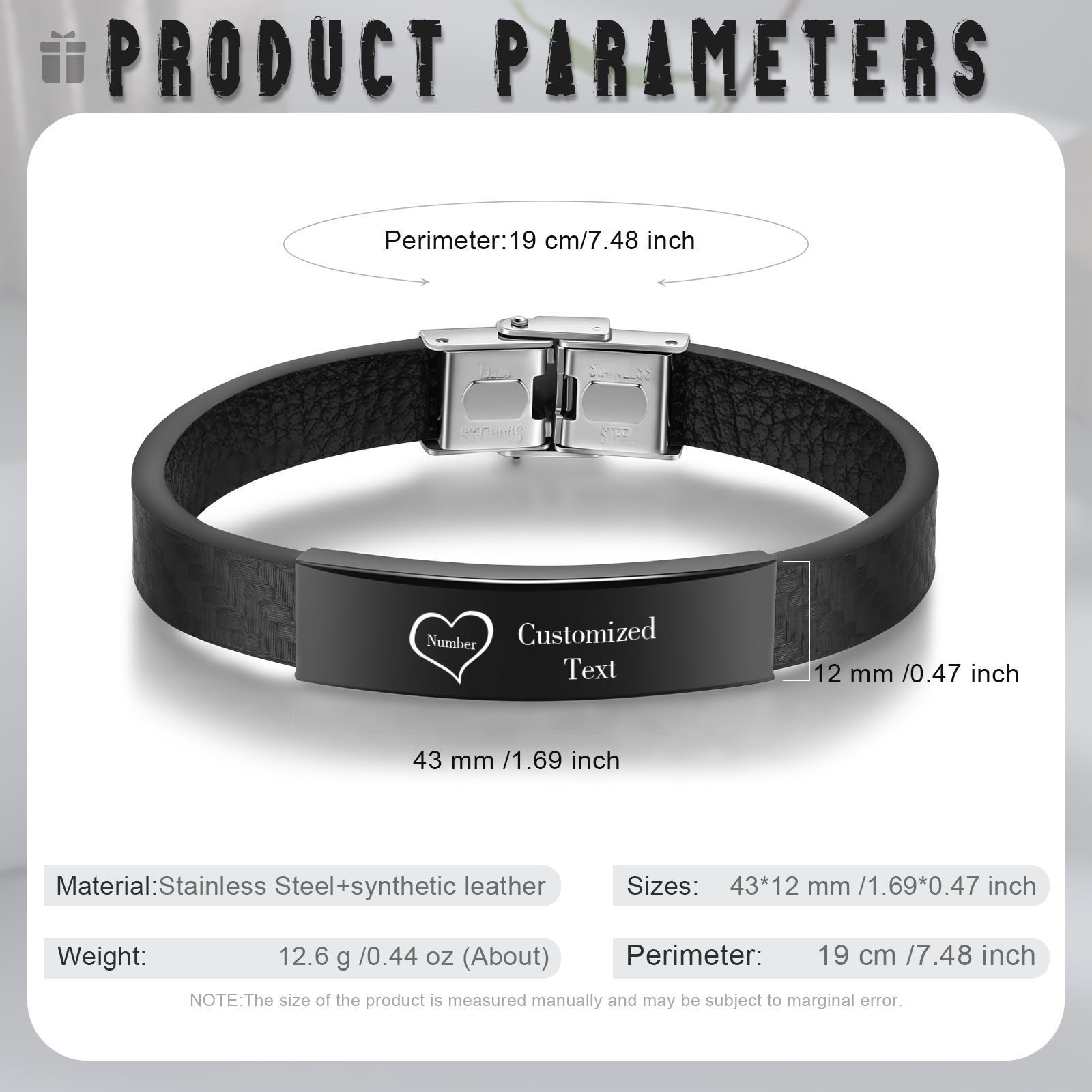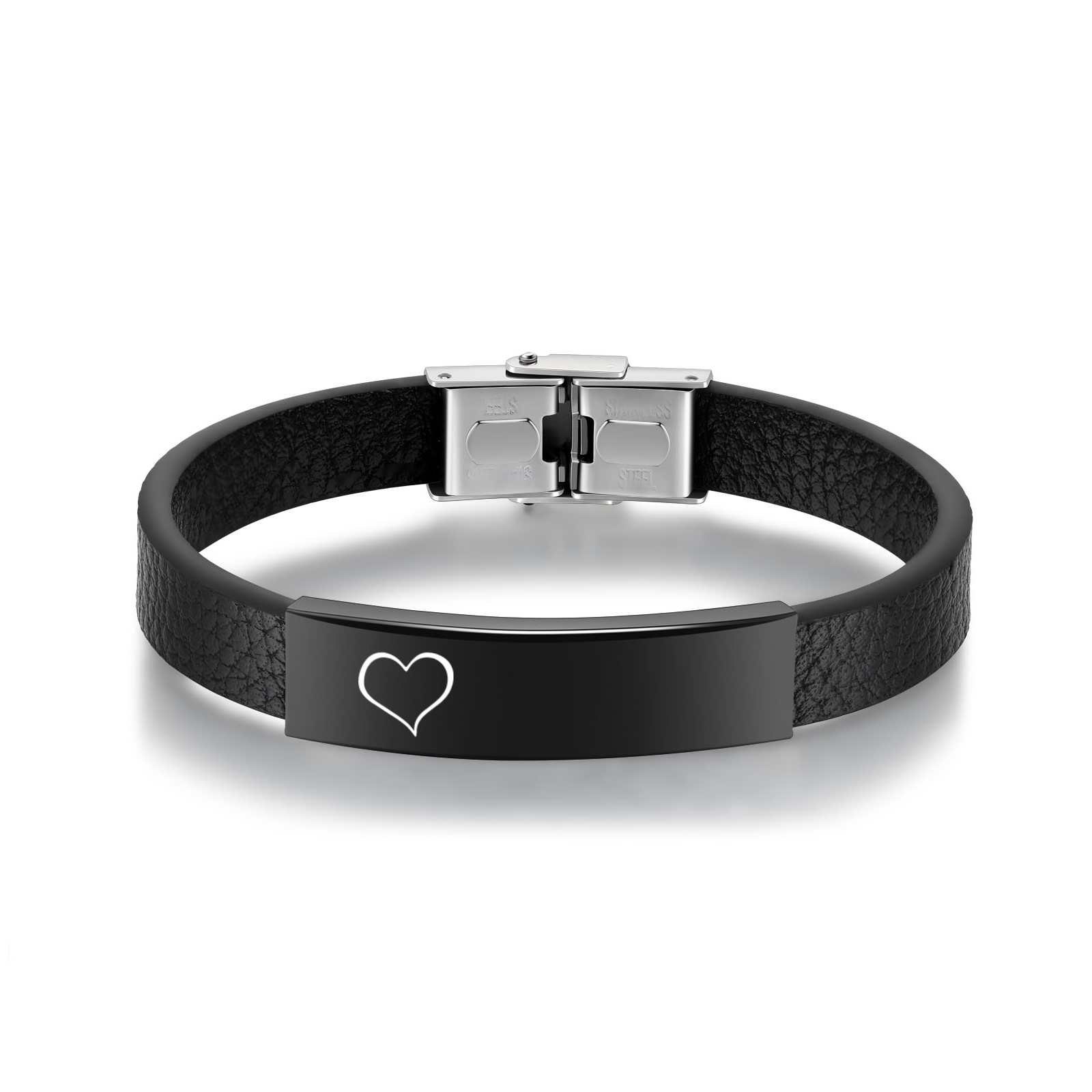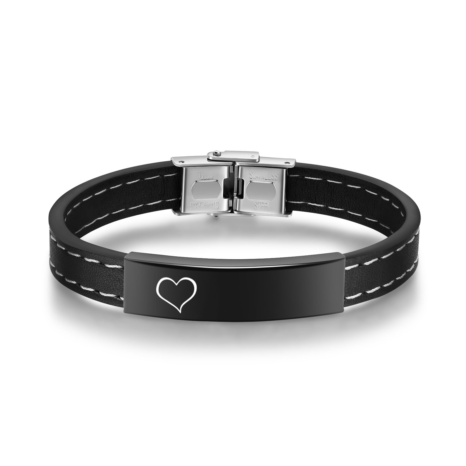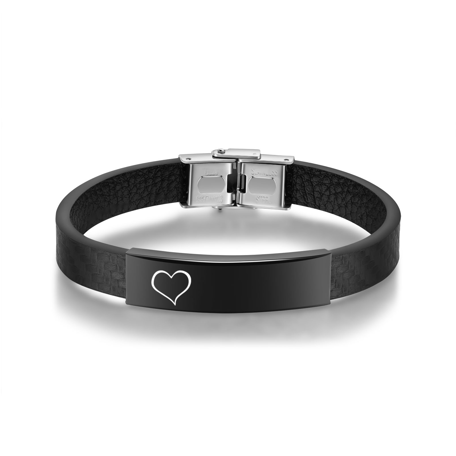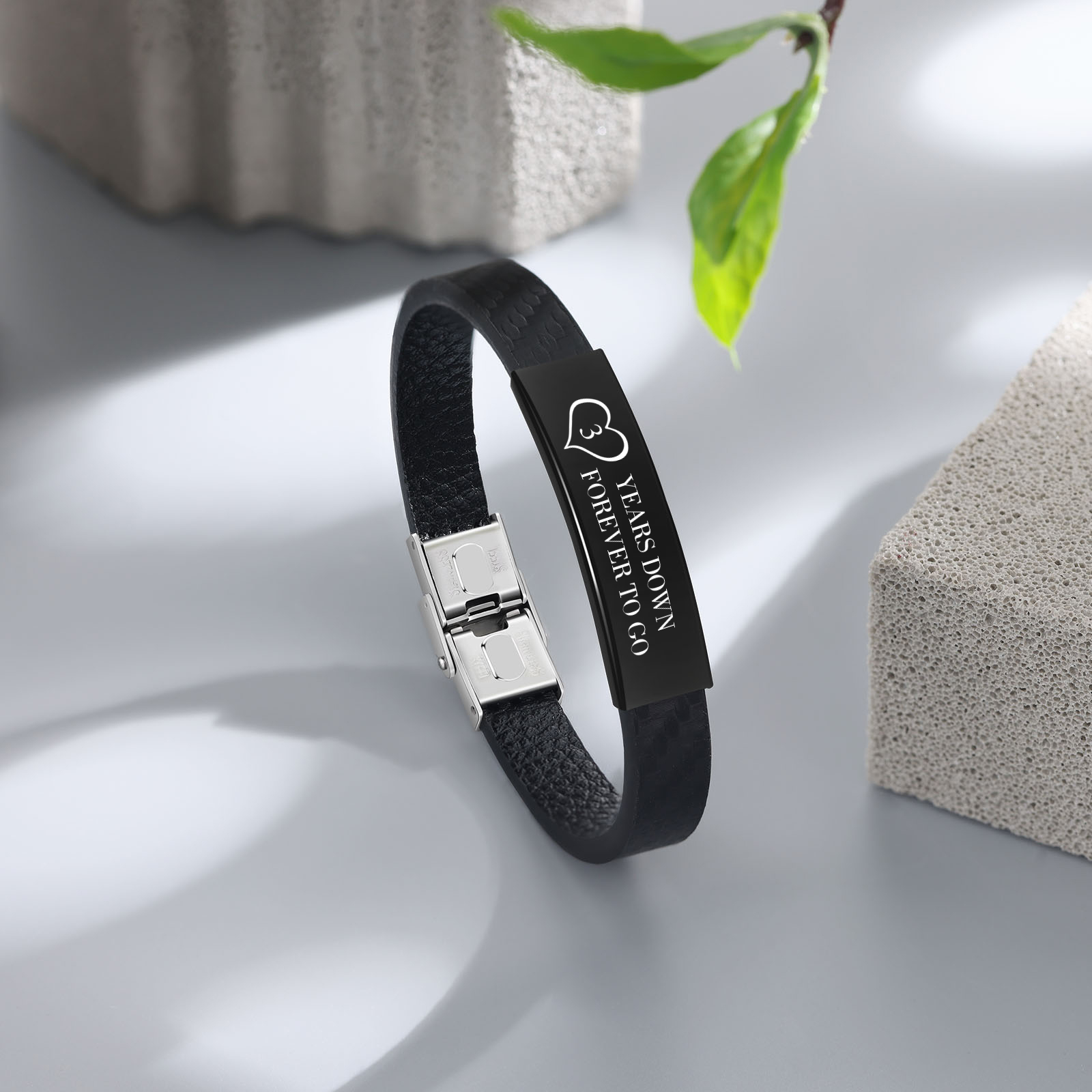 Braccialetto maschile in acciaio inox e ecopelle con 1 numero e 1 testo personalizzati