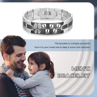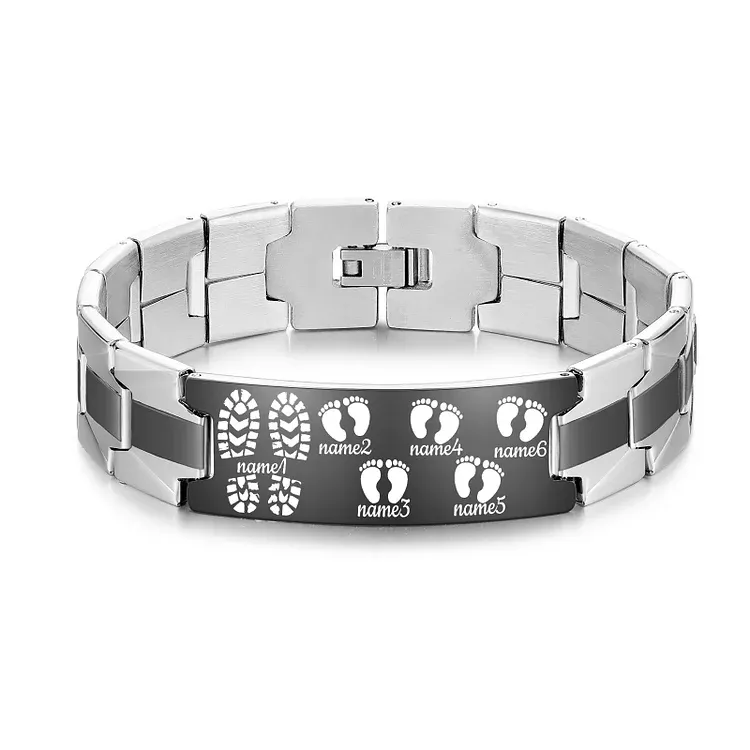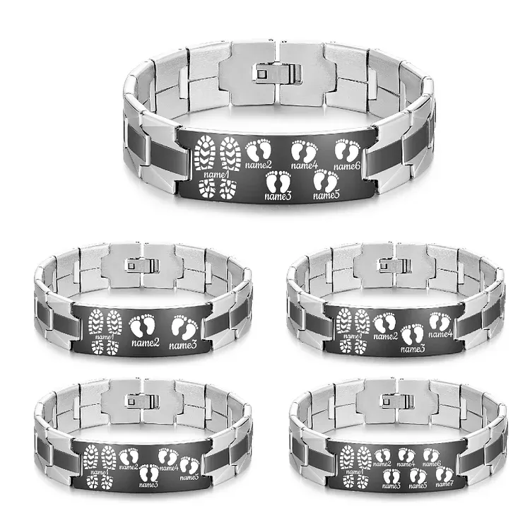 Braccialetto da uomo in acciaio inox con 6 nomi personalizzati come regalo per il papà