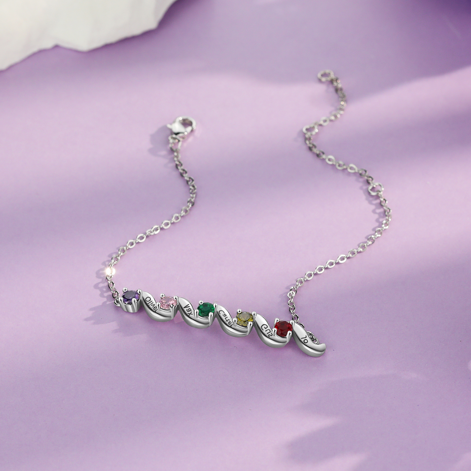 Braccialetto personalizzato con 5 pietre di nascita e 5 nomi personalizzati regalo per donna