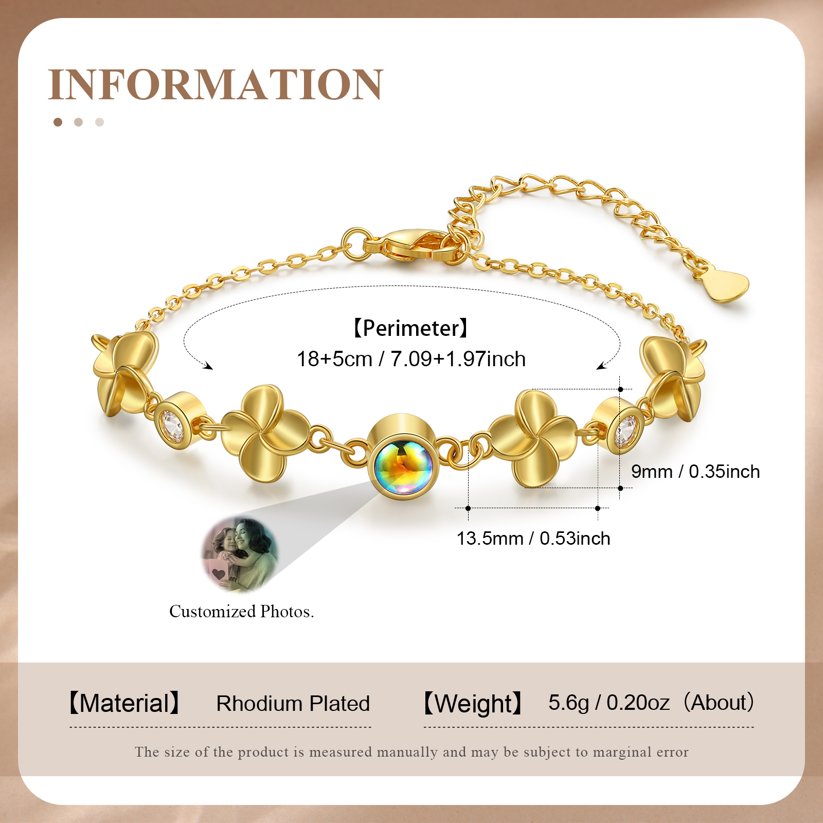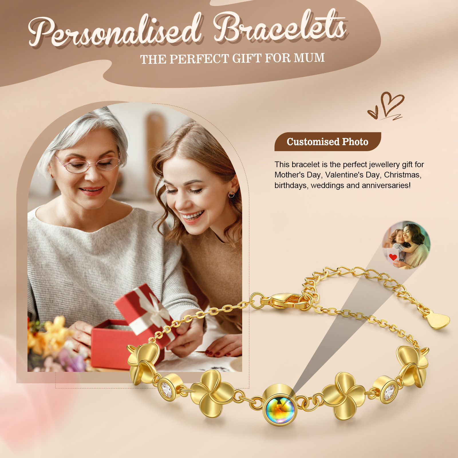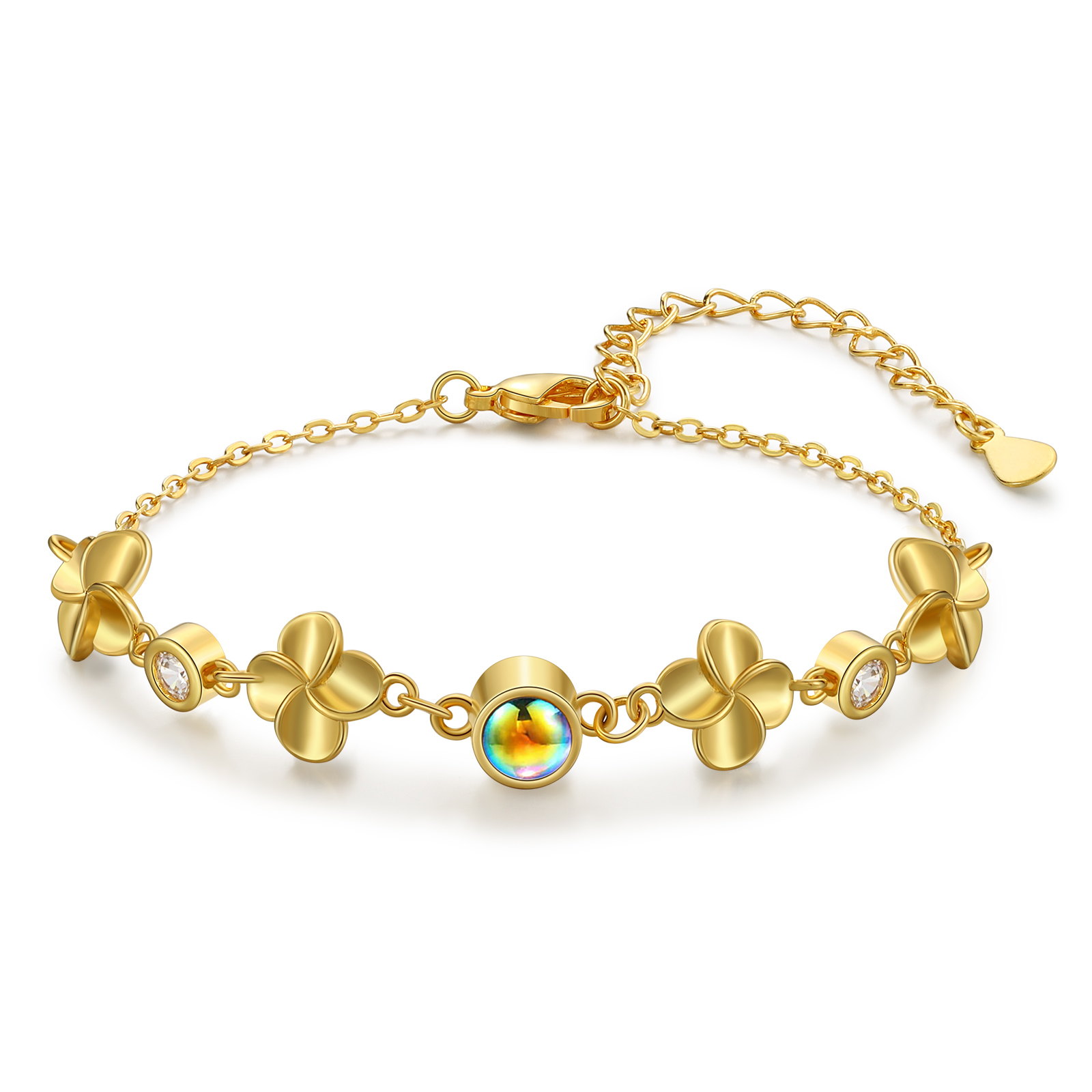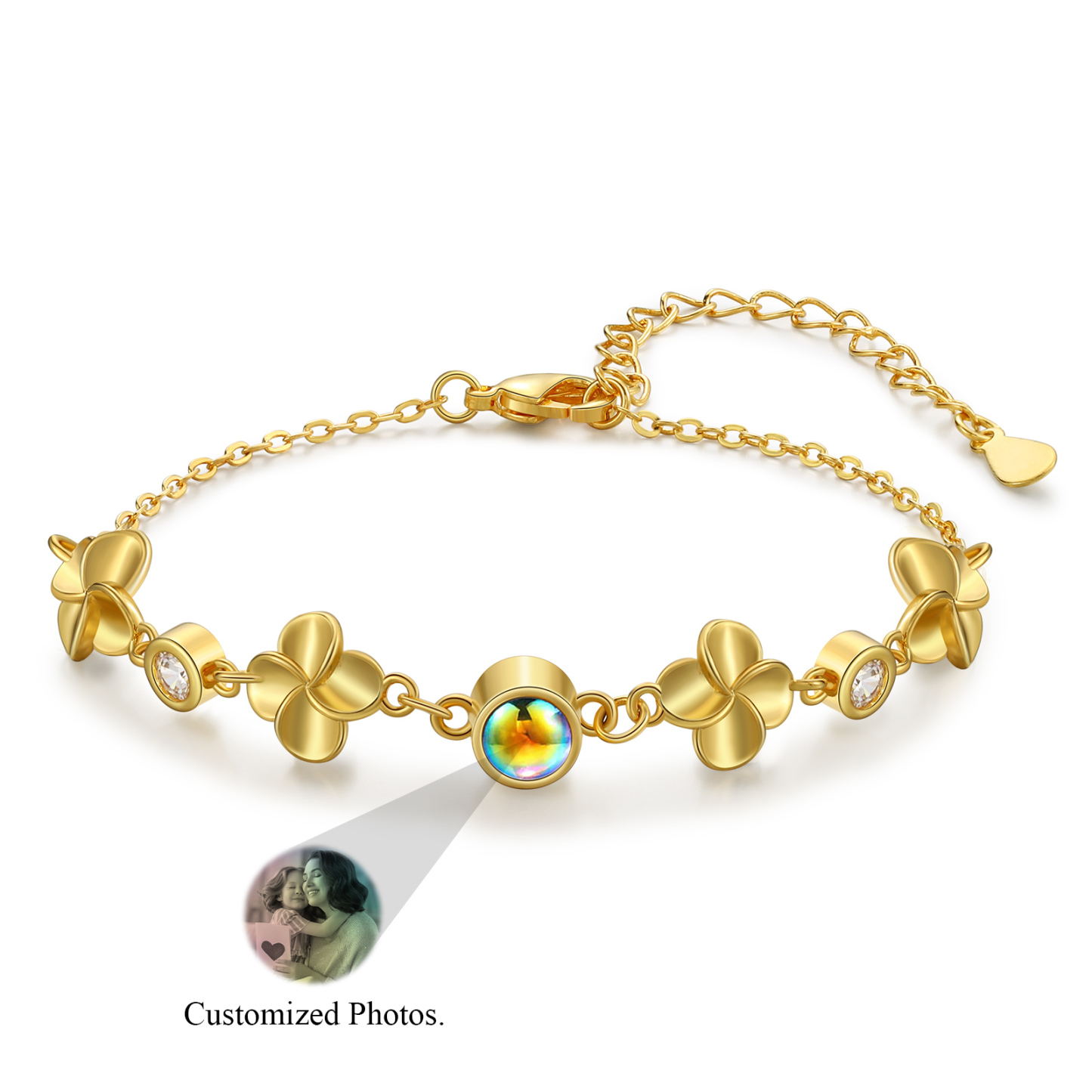 Braccialetto quadrifoglio con colorata proiezione di 1 foto personalizzata per donna