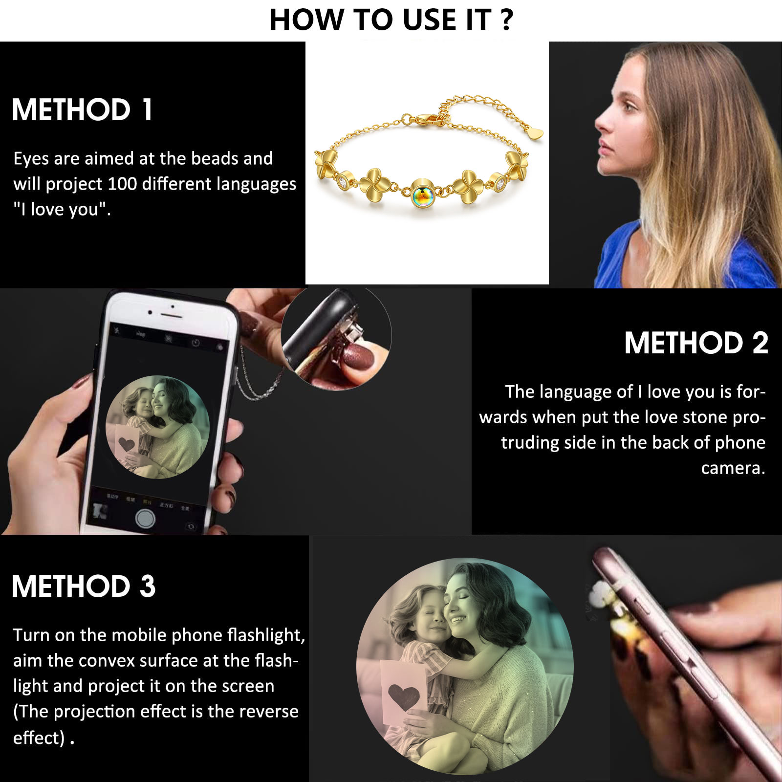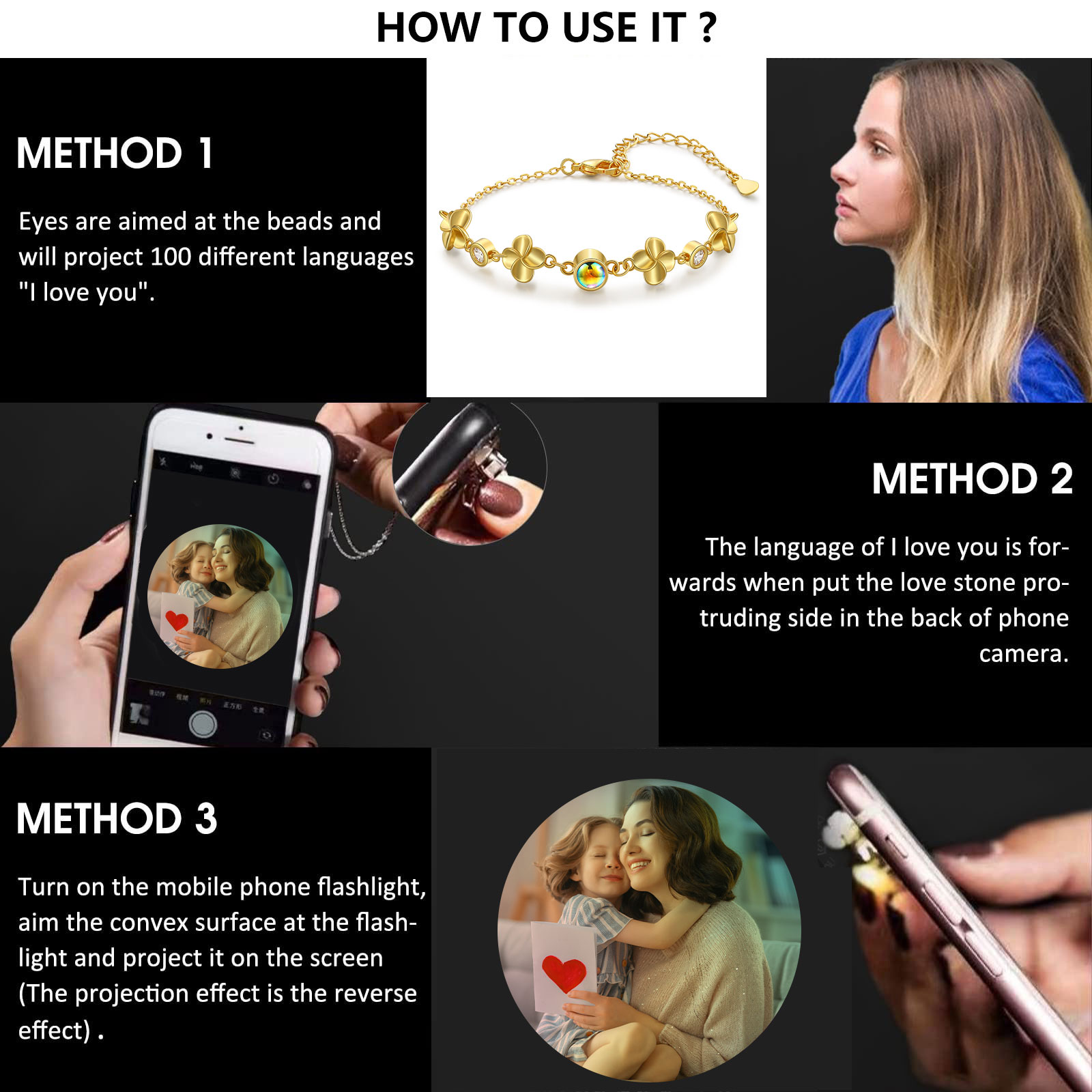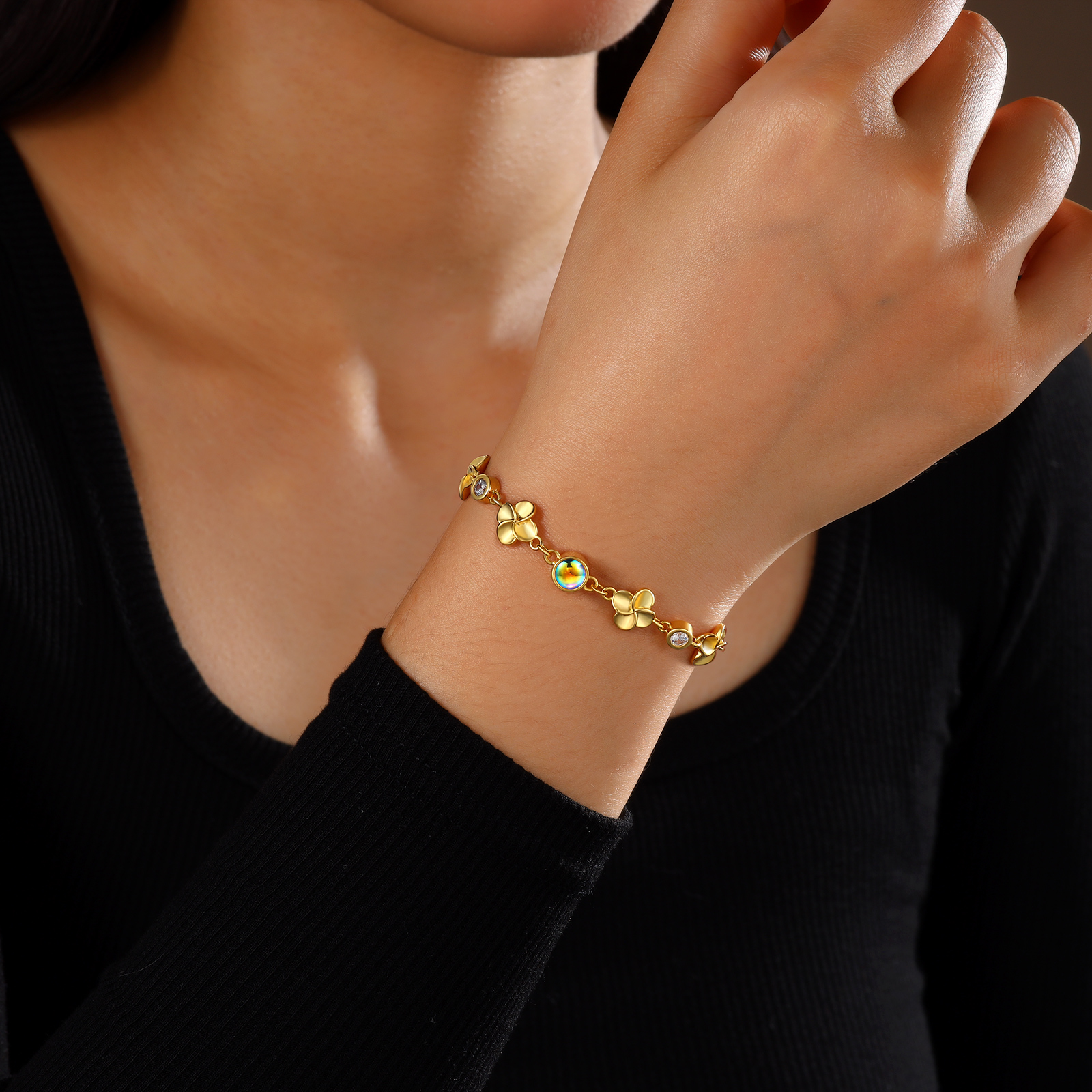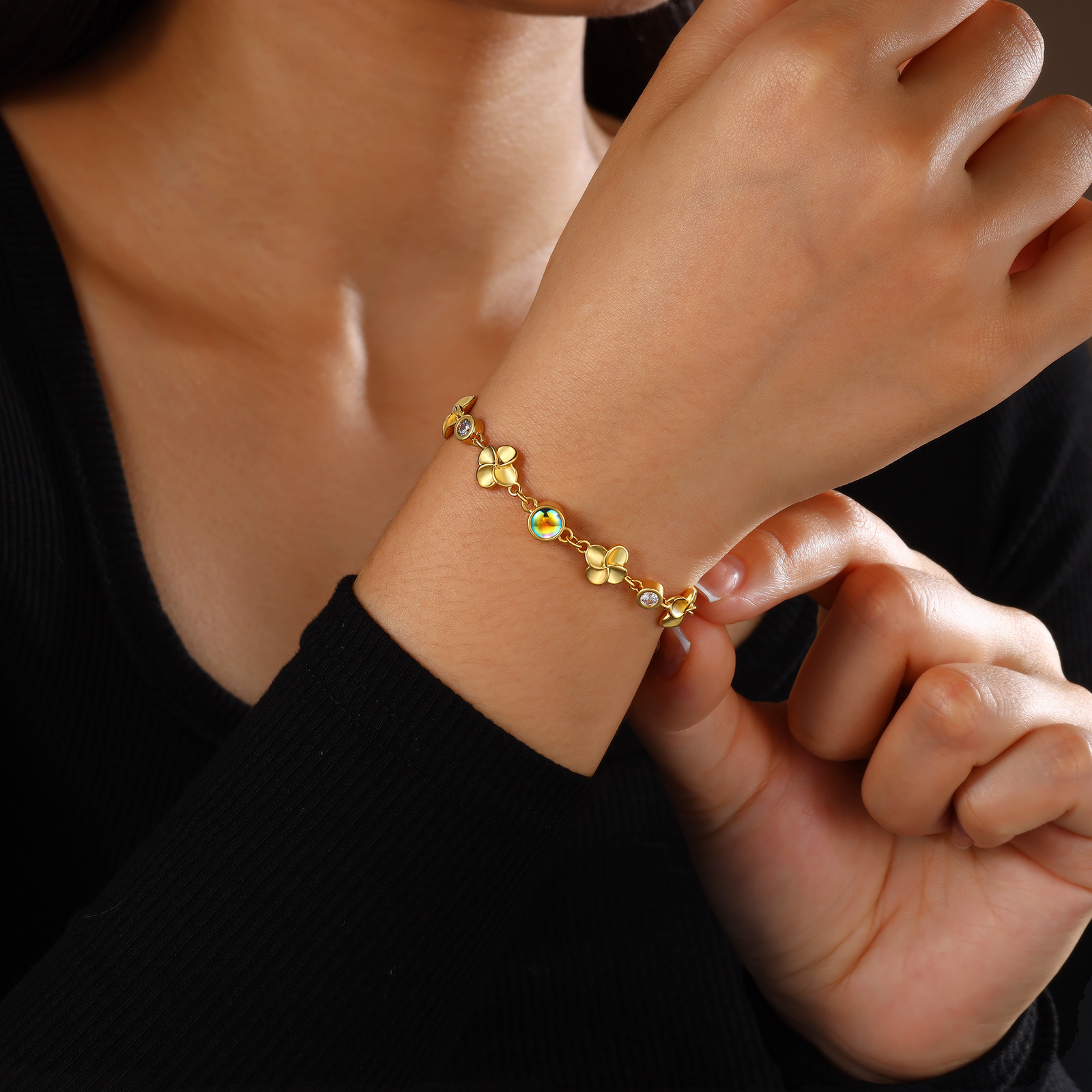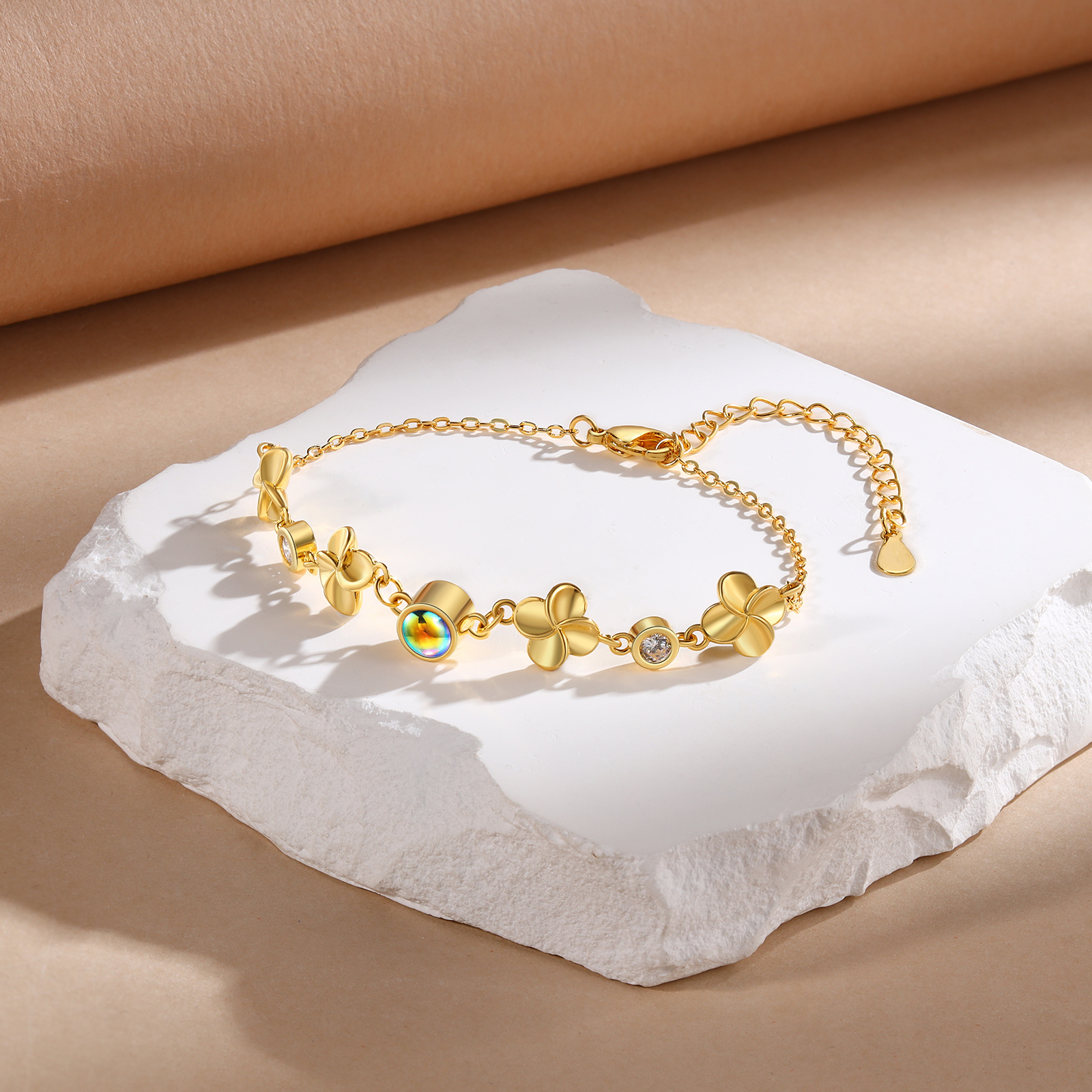 Braccialetto quadrifoglio con colorata proiezione di 1 foto personalizzata per donna