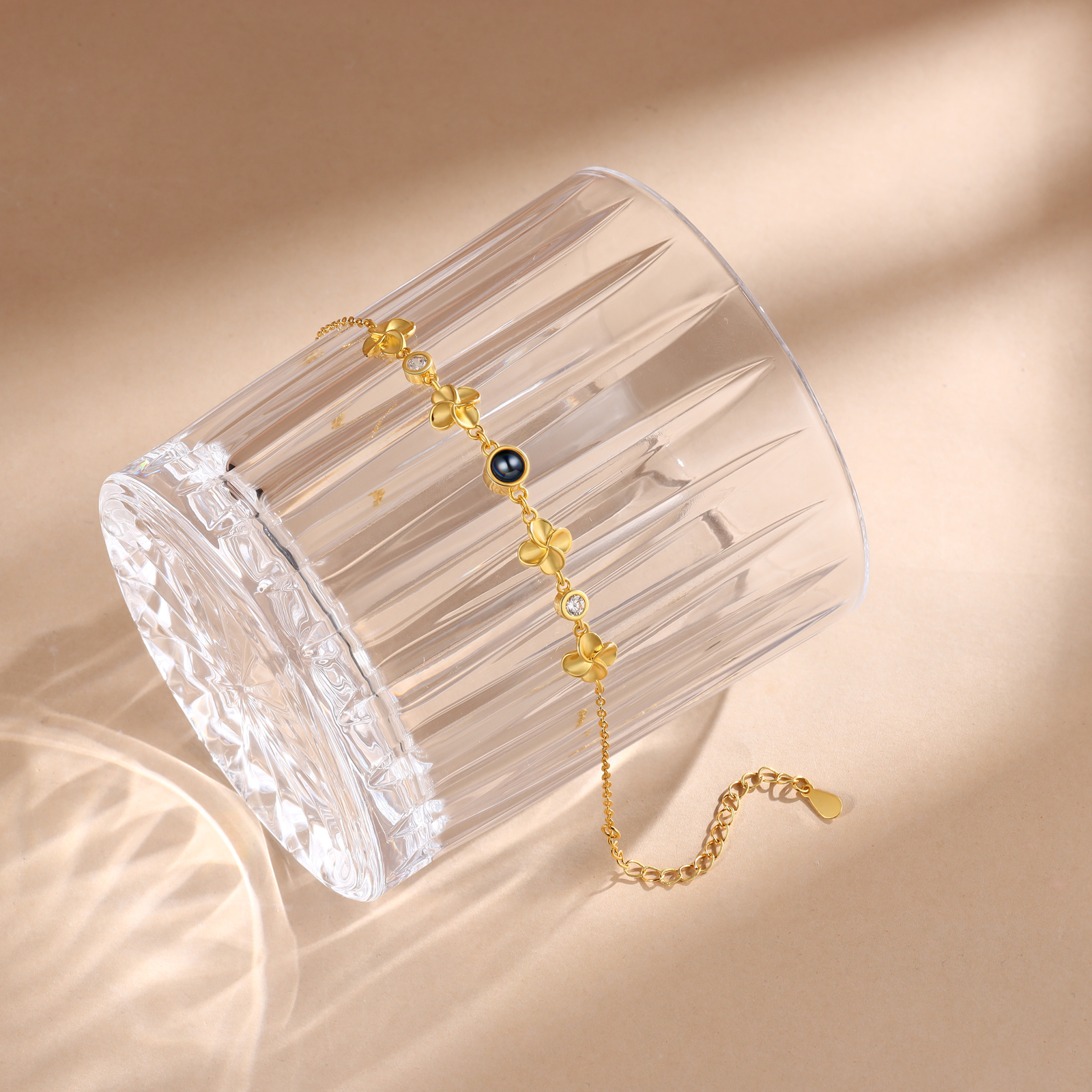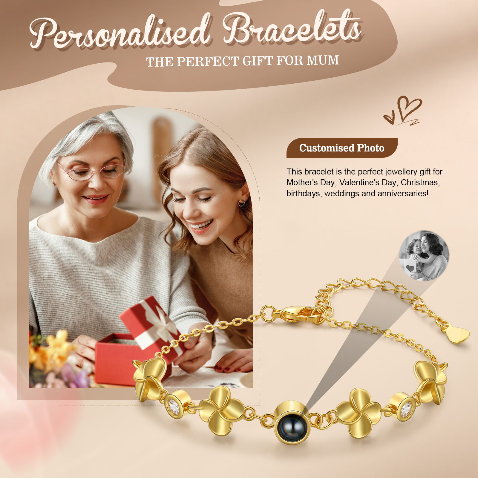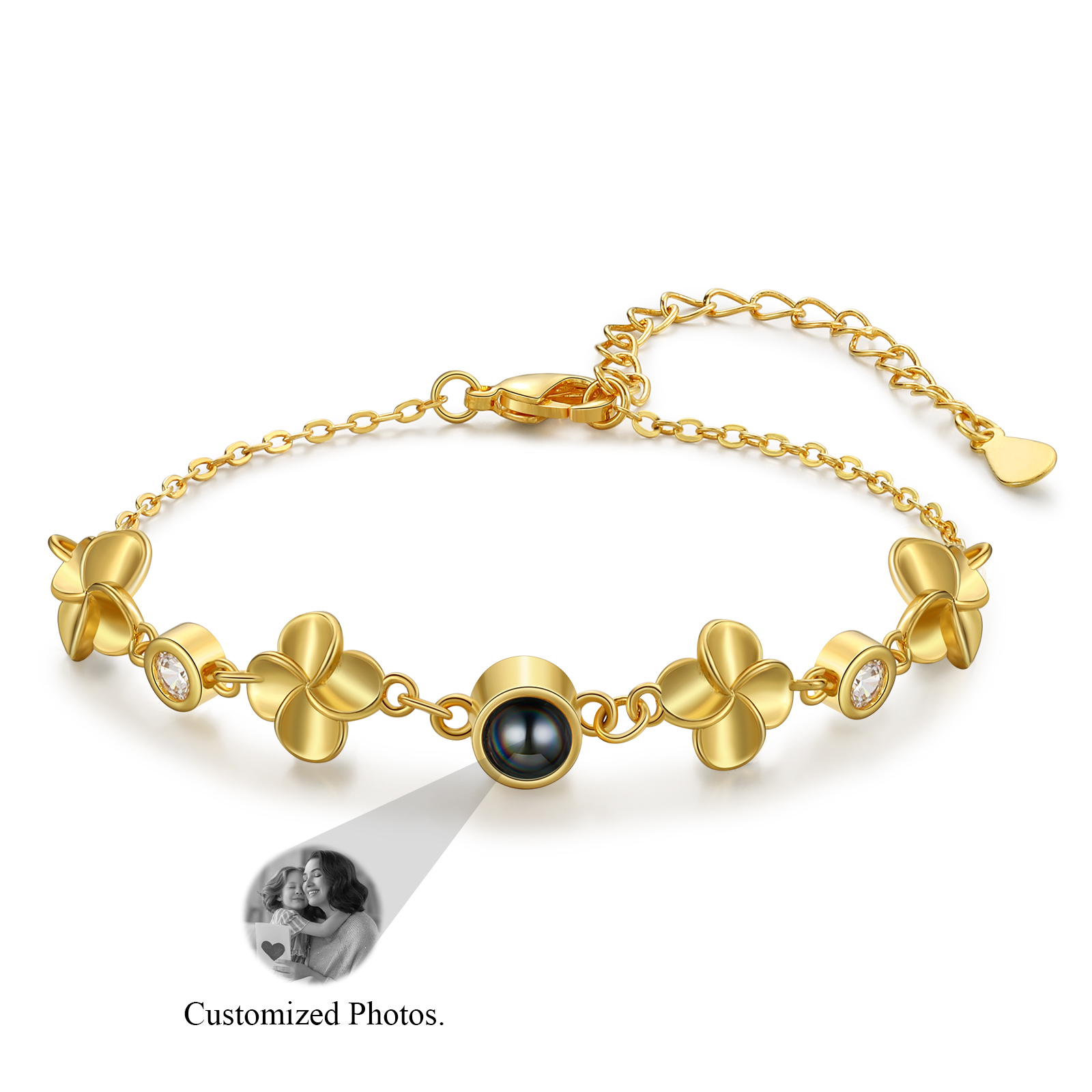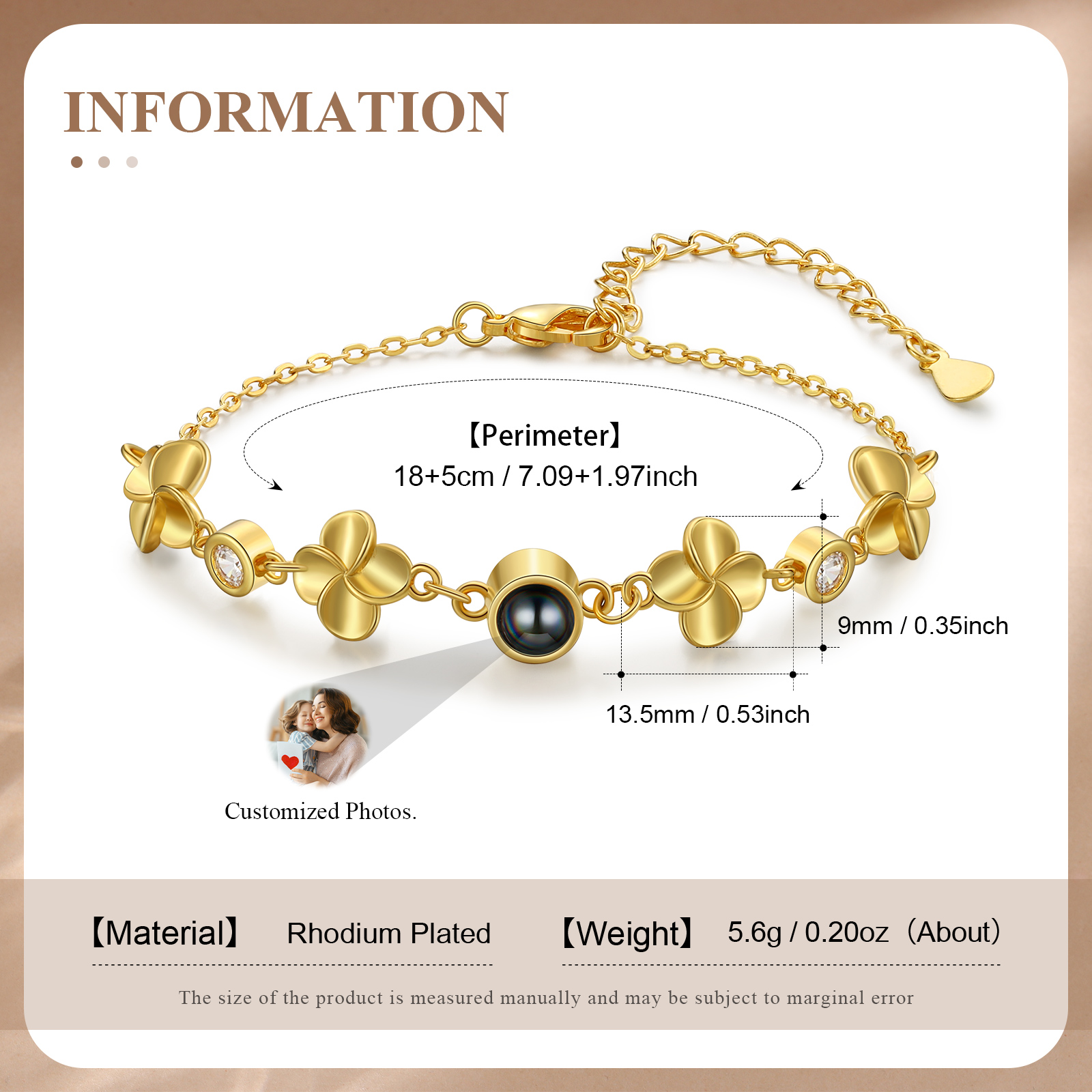 Braccialetto quadrifoglio con proiezione di 1 foto personalizzata per donna