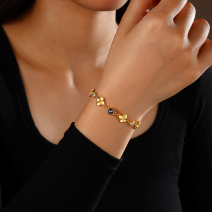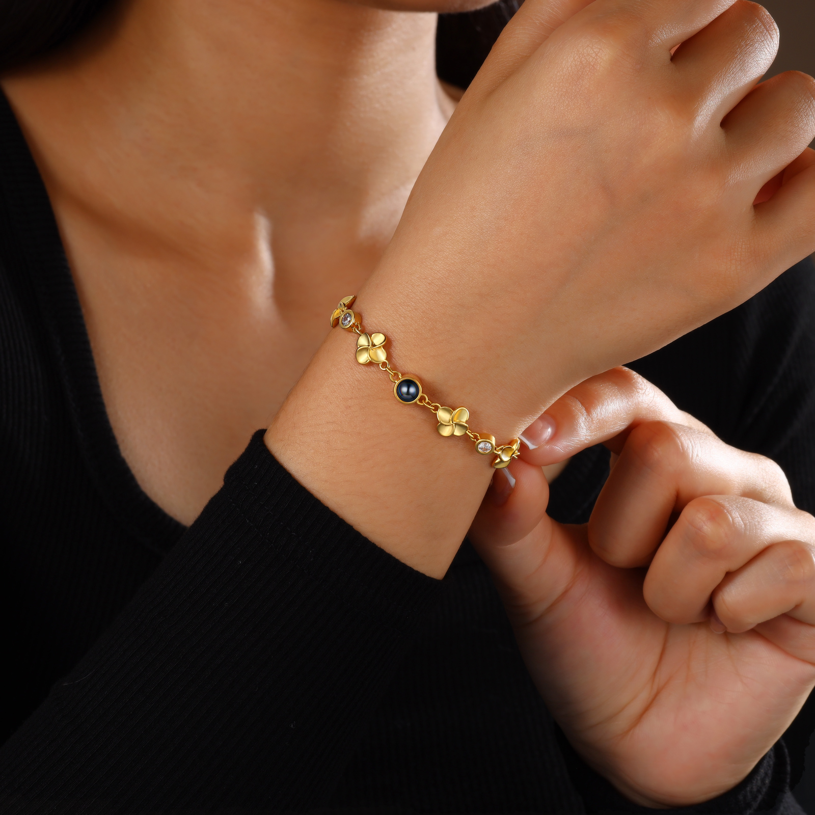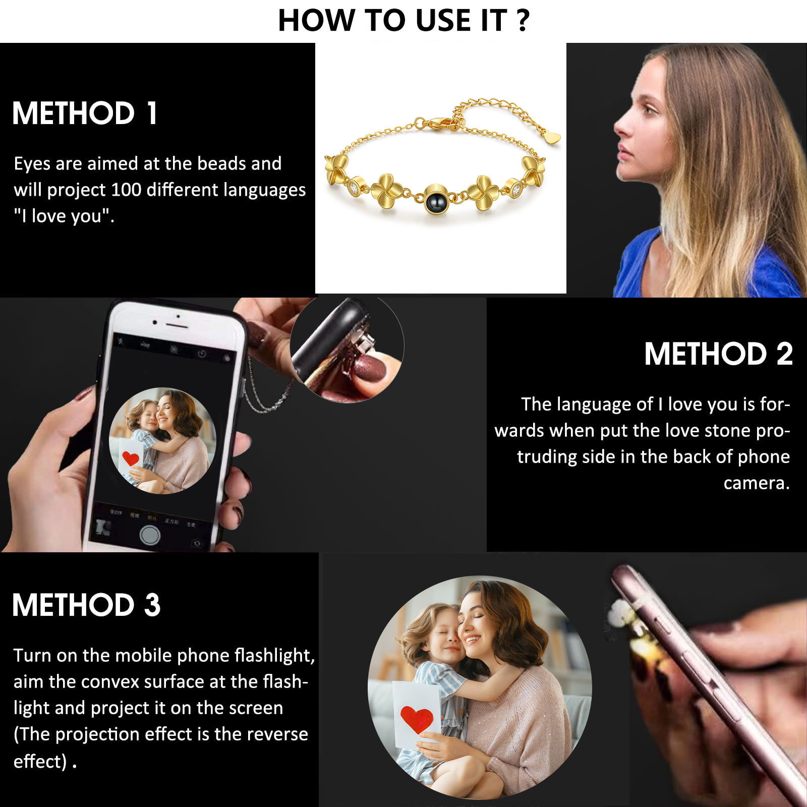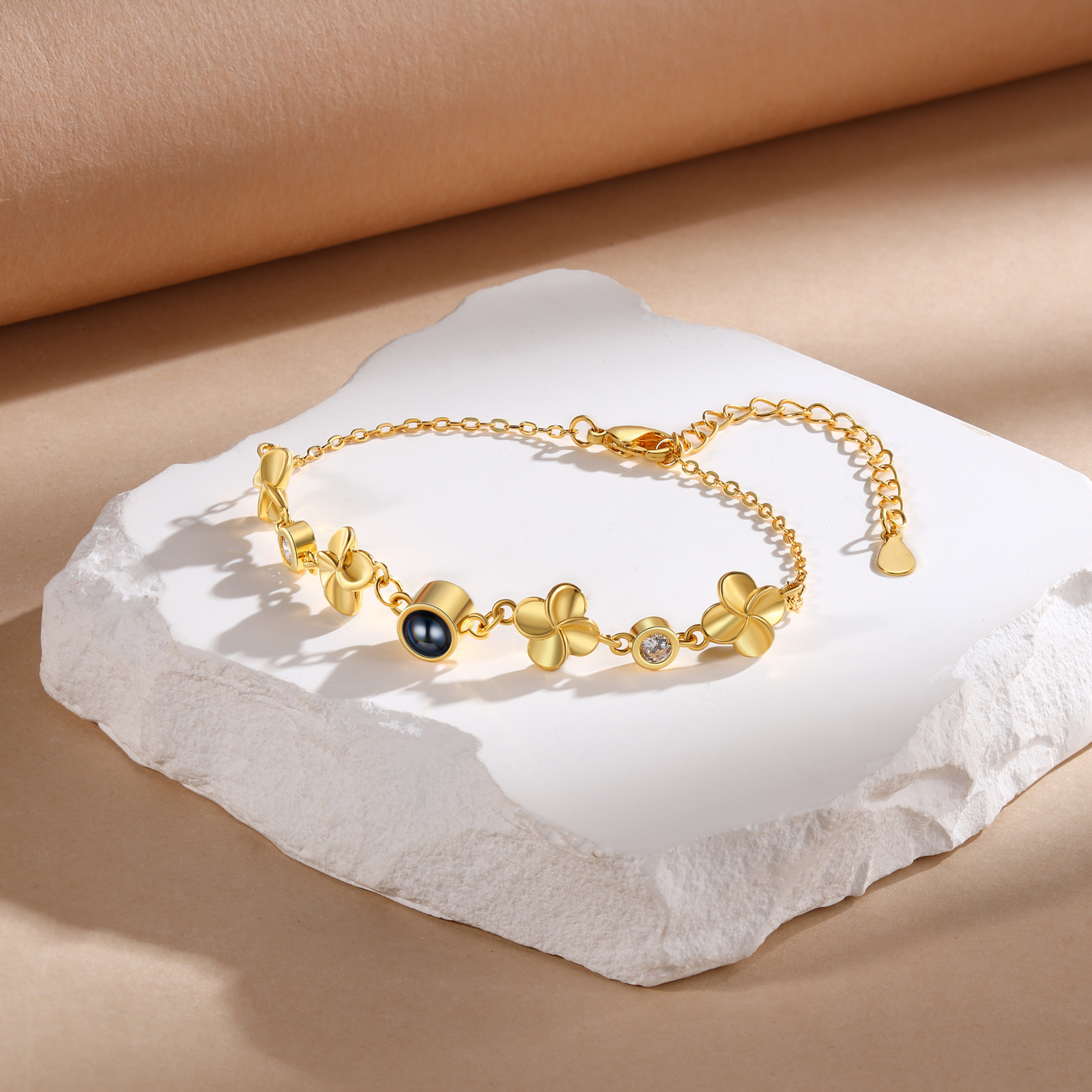 Braccialetto quadrifoglio con proiezione di 1 foto personalizzata per donna