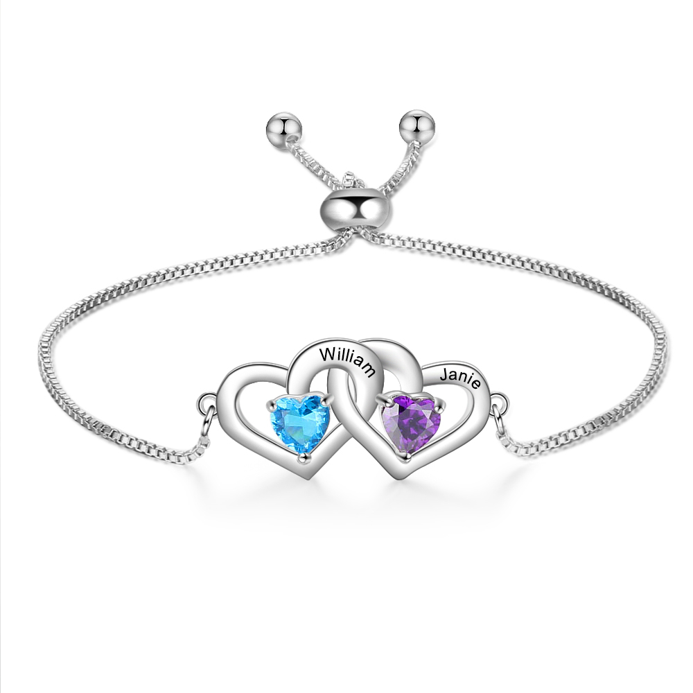 Braccialetto regolabile 2 cuori 2 pietre di nascita