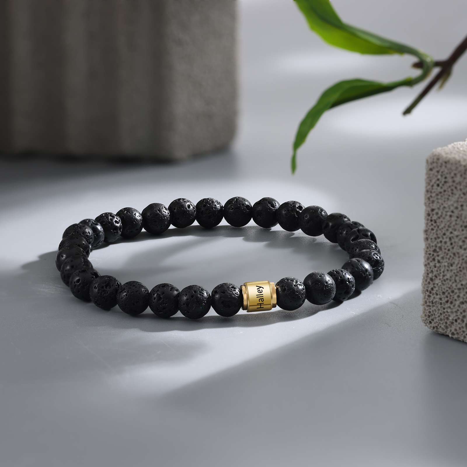 Braccialetto 1 nome braccialetto personalizzato in pietra vulcanica nera