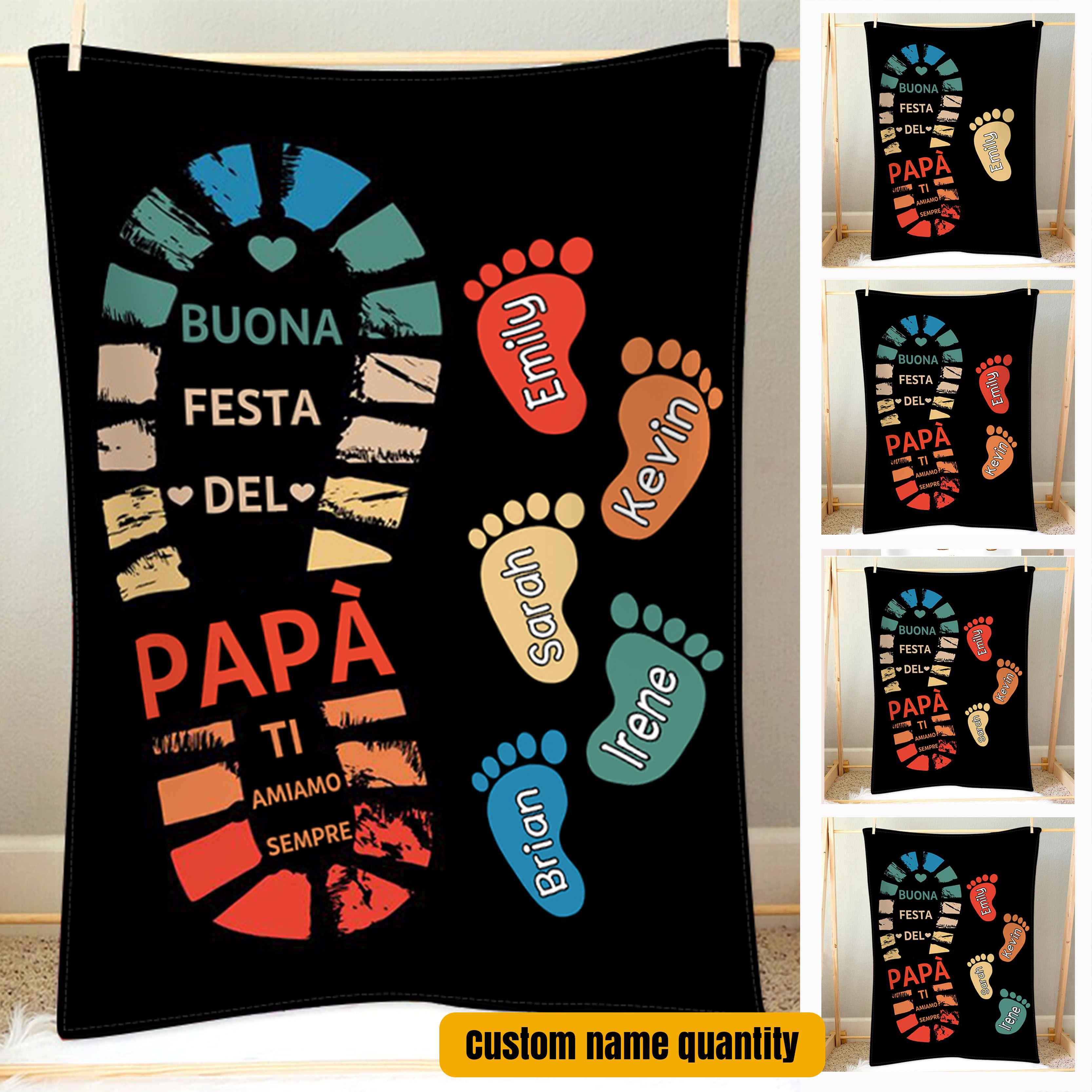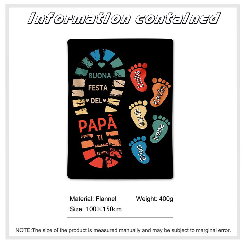 Buona festa del papà-Coperta impronta di piede regalo 2 nomi personalizzati per papà