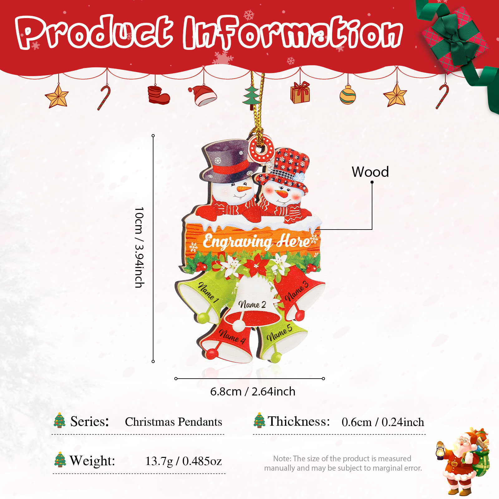 Campanile & Pupazzo di neve-Decorazione di legno natalizia 5 nomi personalizzabili