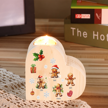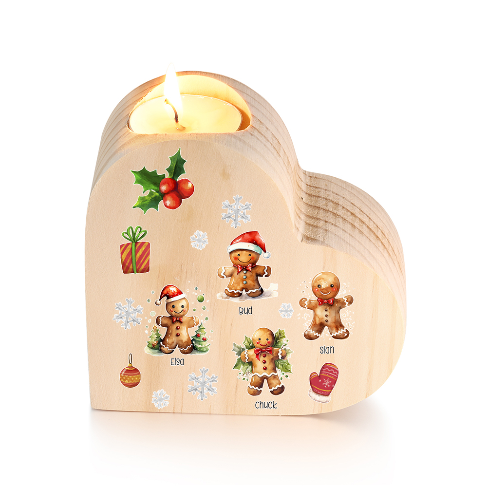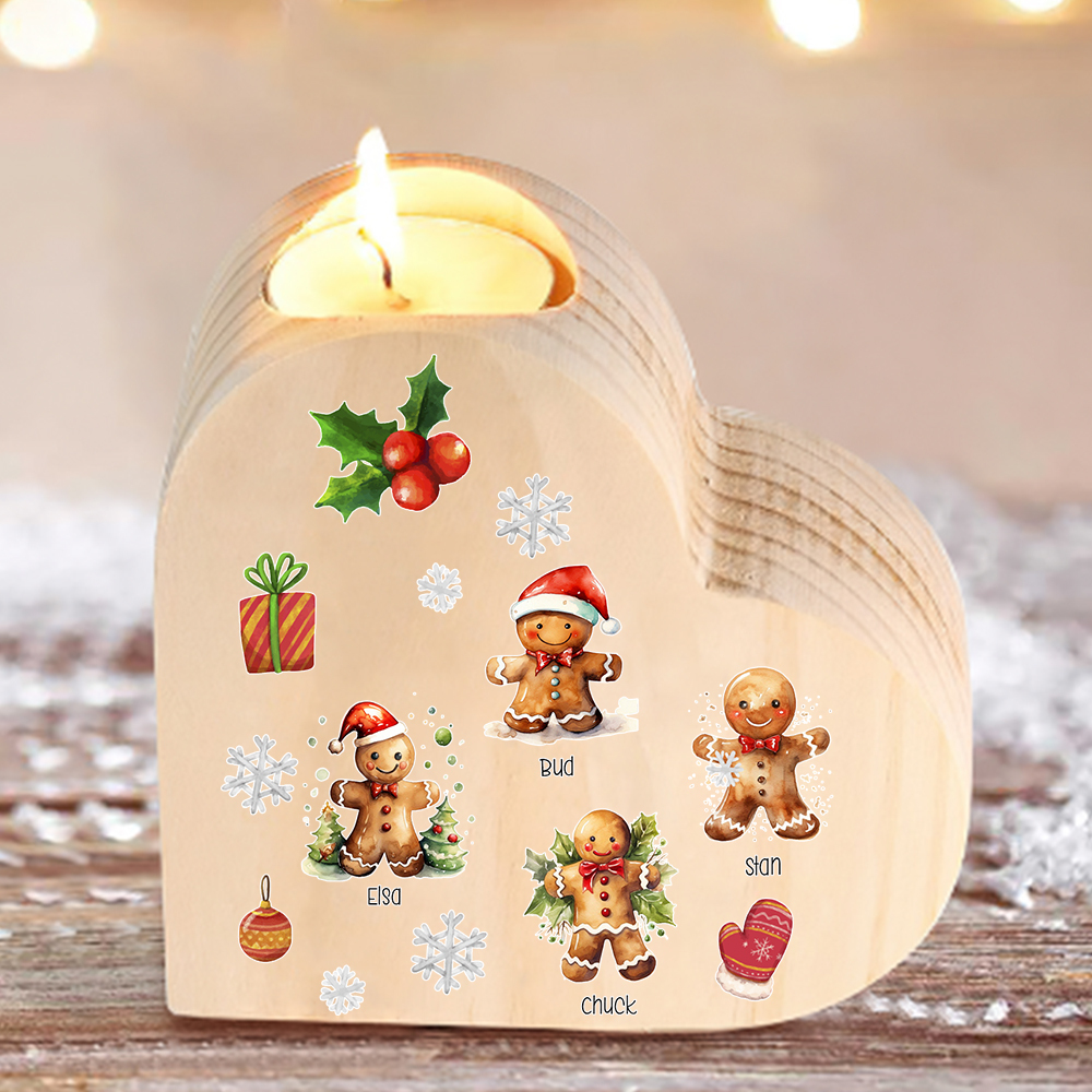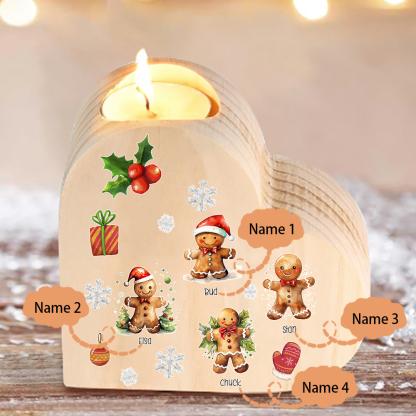Candeliere a cuore Natale Biscotti allo zenzero 4 nomi personalizzabili per membri della famiglia