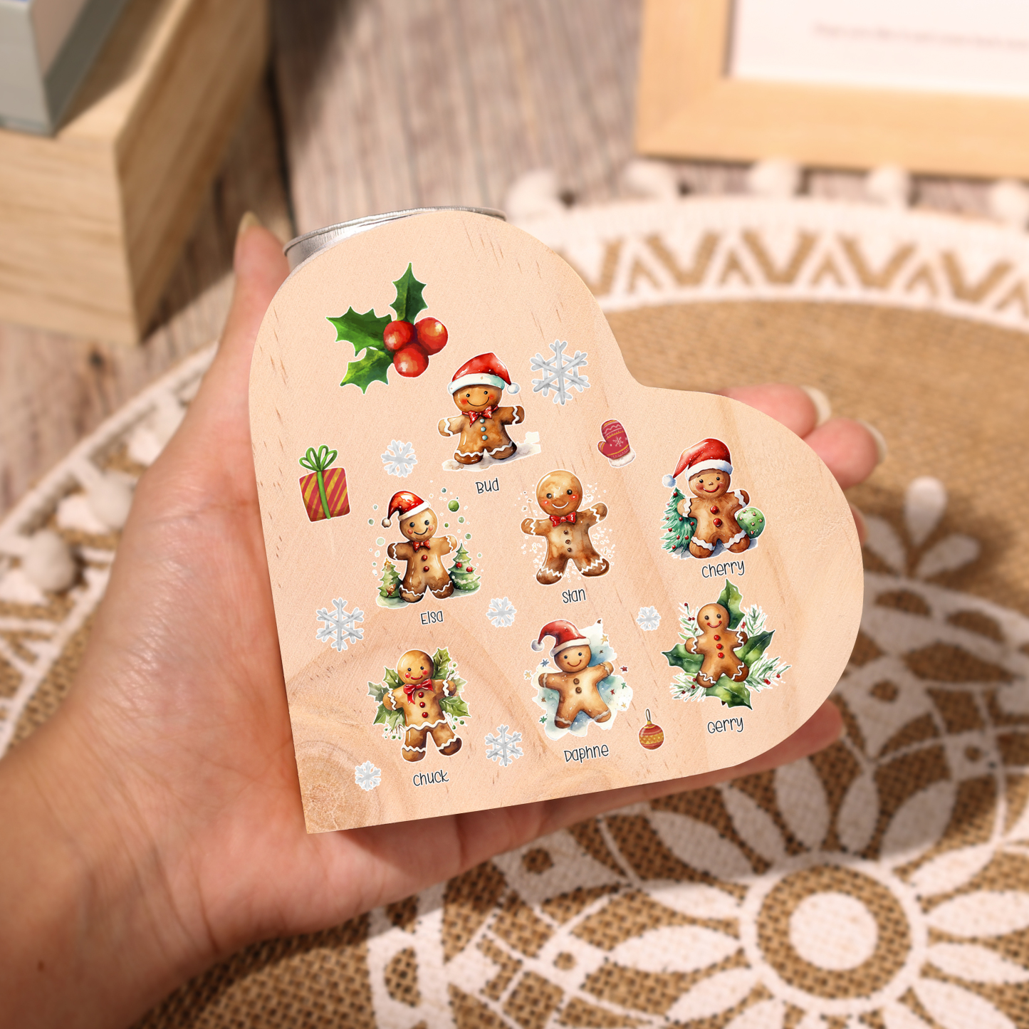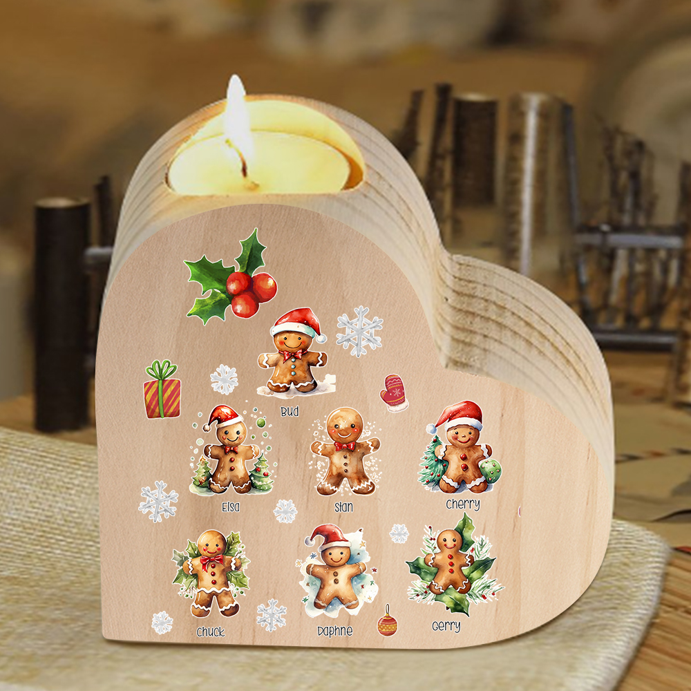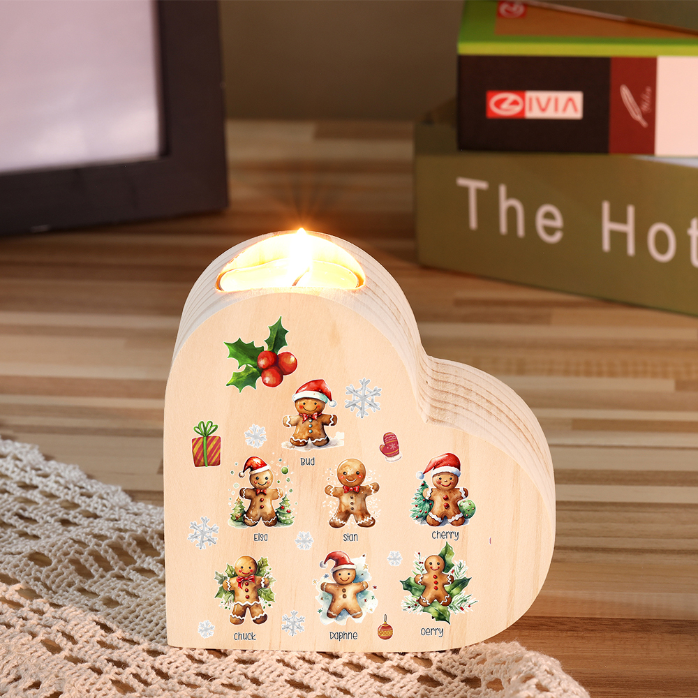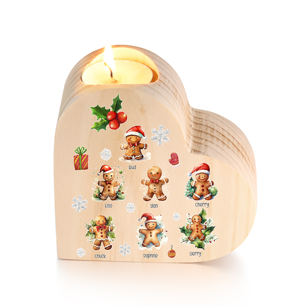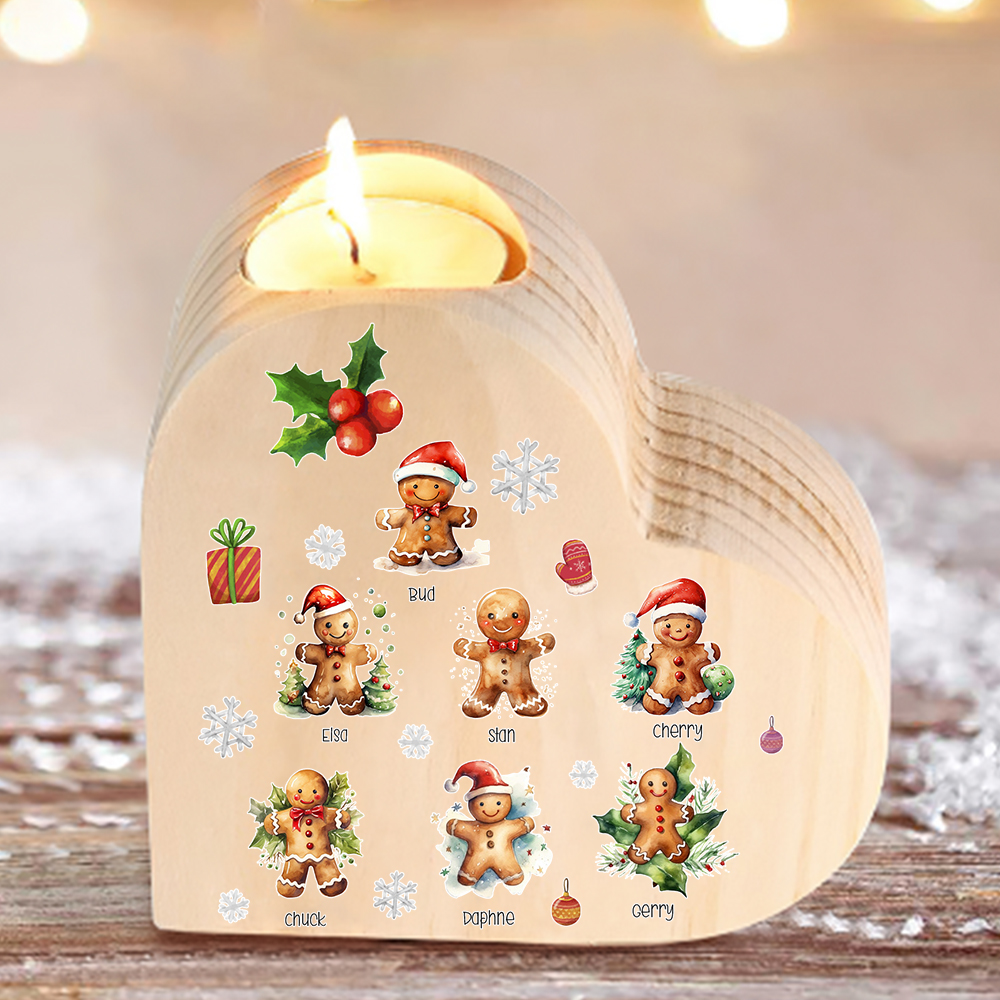 Candeliere a cuore Natale Biscotti allo zenzero 7 nomi personalizzabili per membri della famiglia