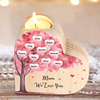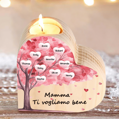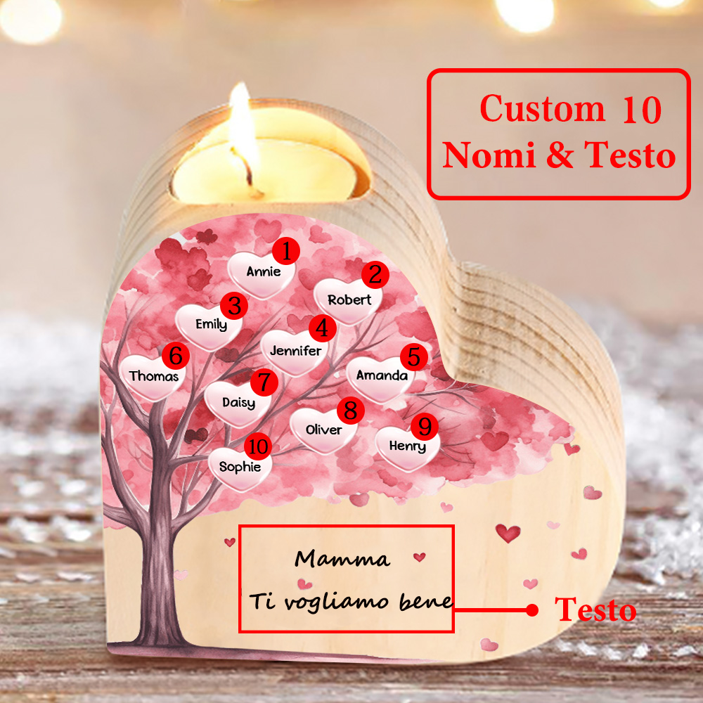 Candeliere a forma di cuore albero di cuore rosa 10 nomi e 1 testo personalizzati per mamma/nonna