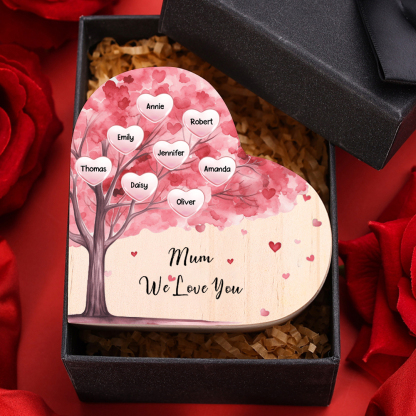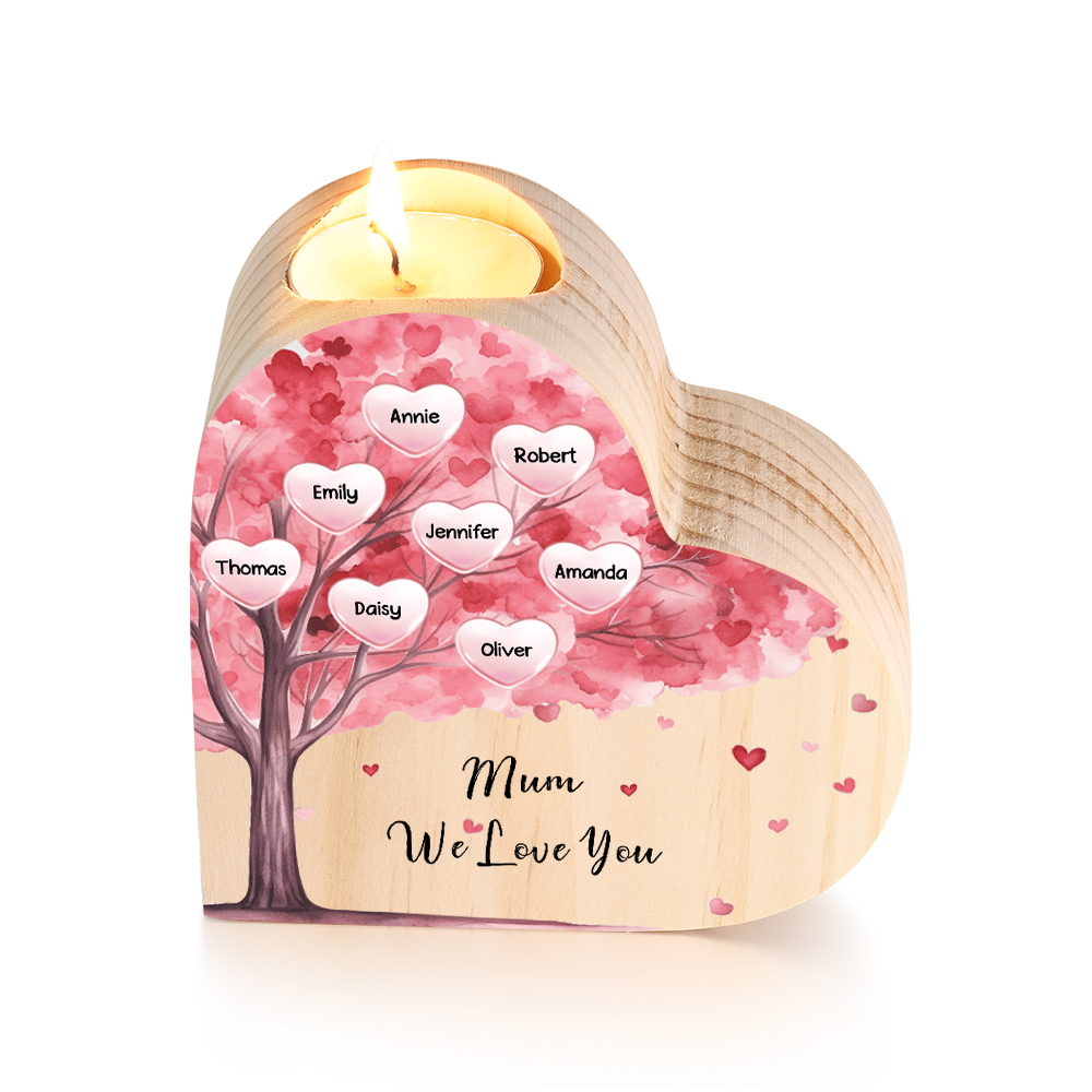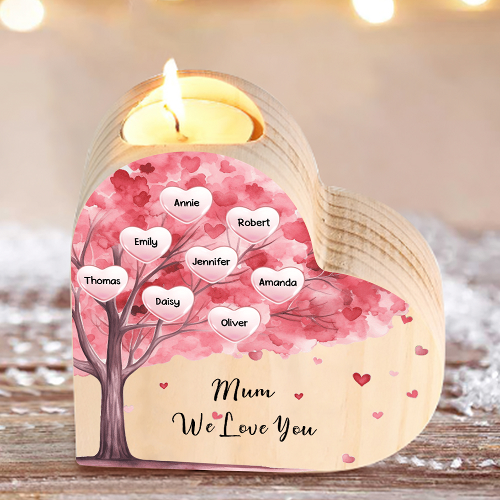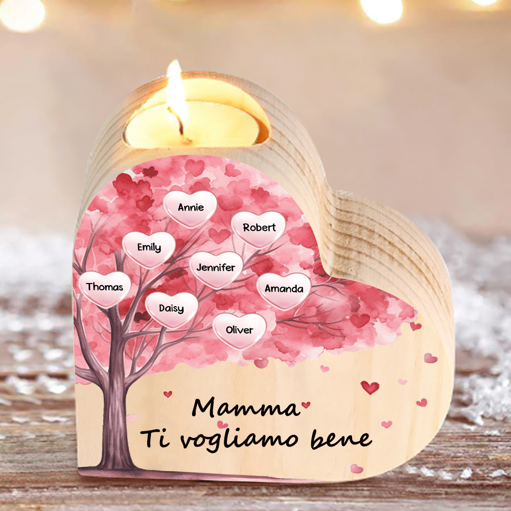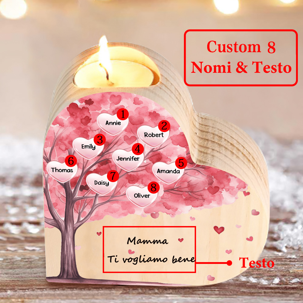 Candeliere a forma di cuore albero di cuore rosa 8 nomi e 1 testo personalizzati per mamma/nonna