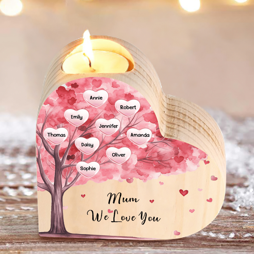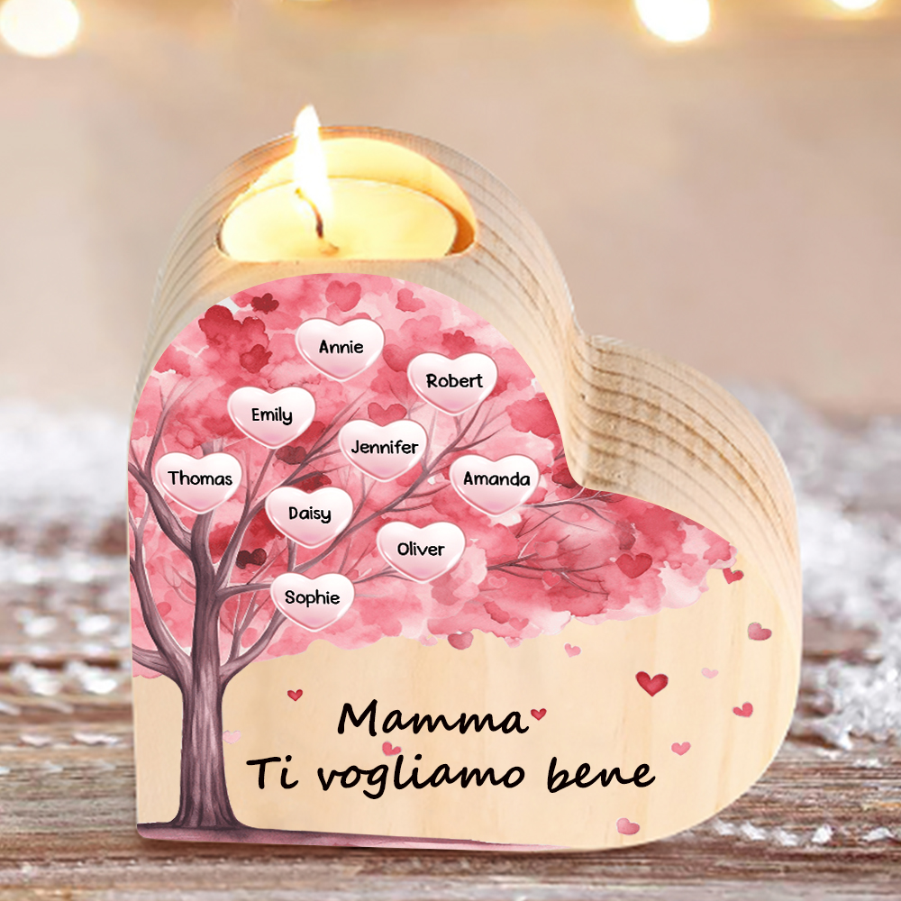 Candeliere a forma di cuore albero di cuore rosa 9 nomi e 1 testo personalizzati per mamma/nonna