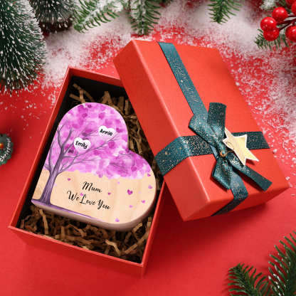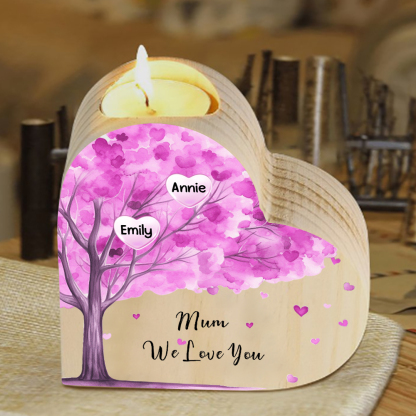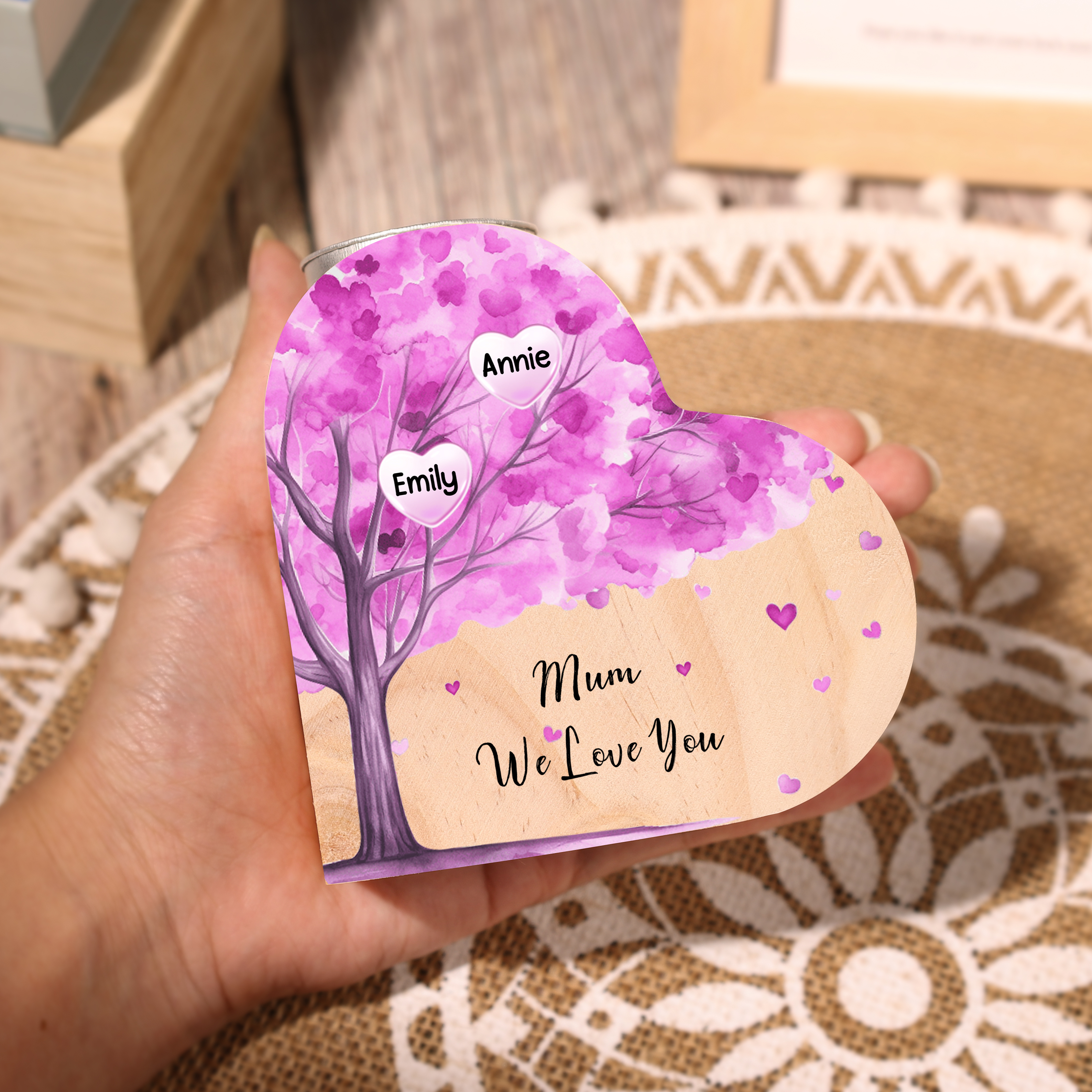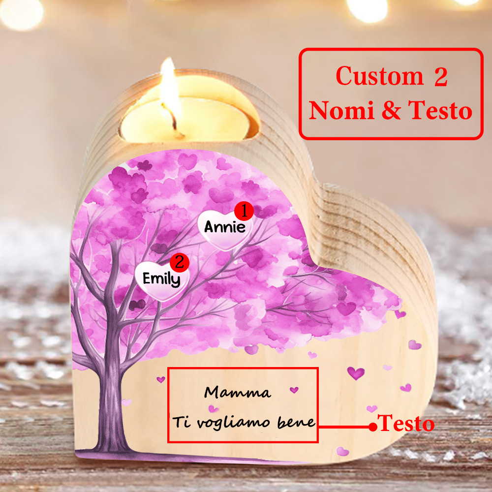 Candeliere a forma di cuore albero di cuore viola 2 nomi e 1 testo personalizzati per mamma/nonna