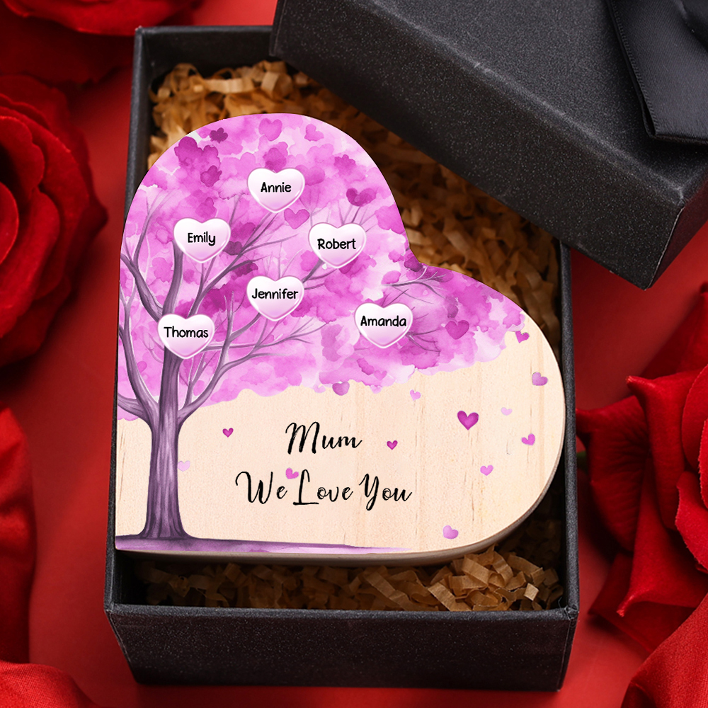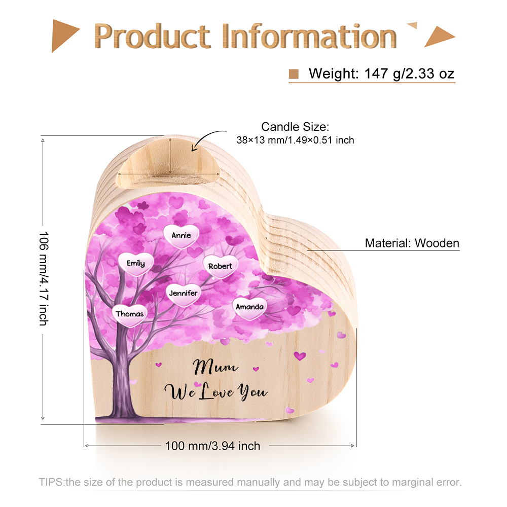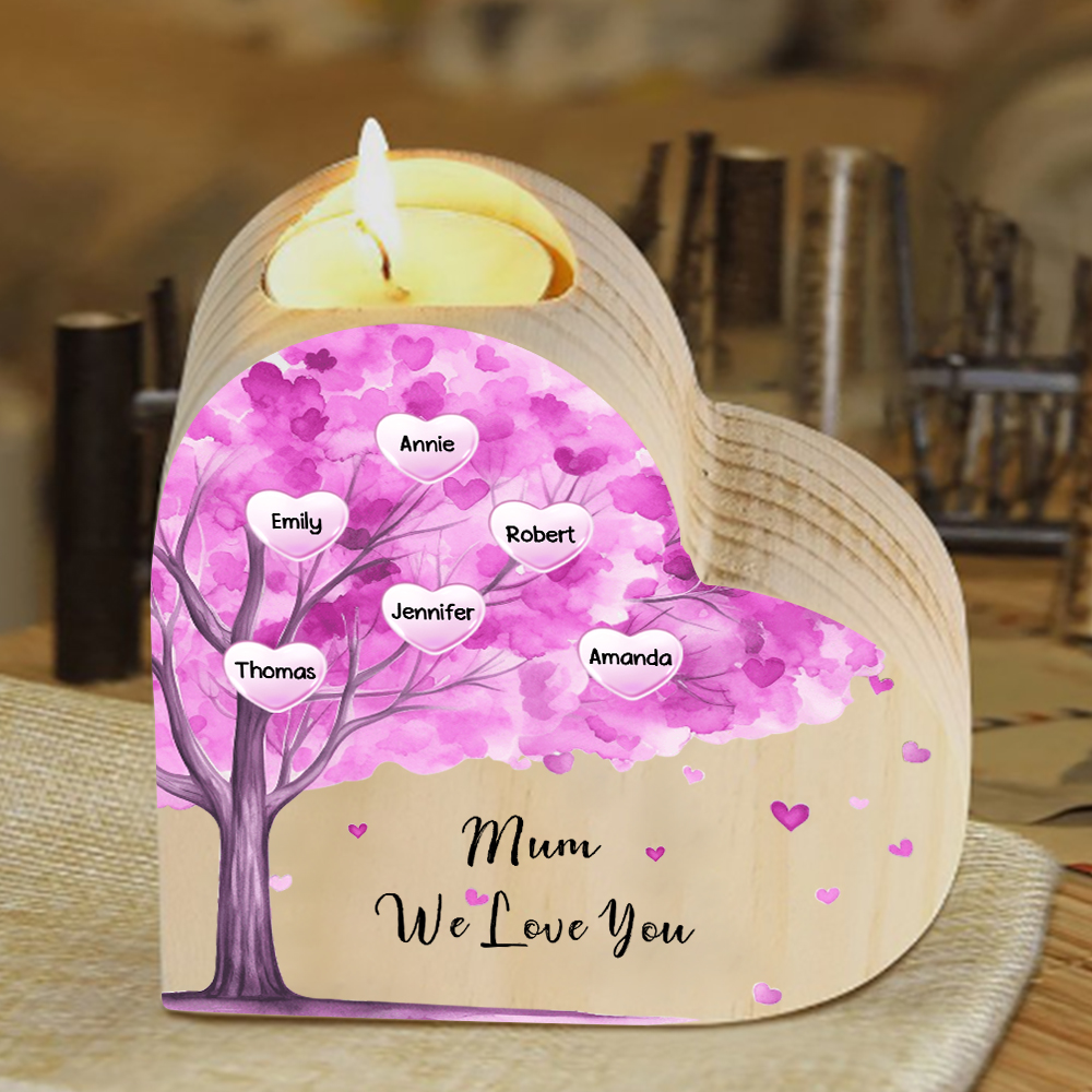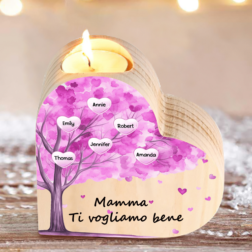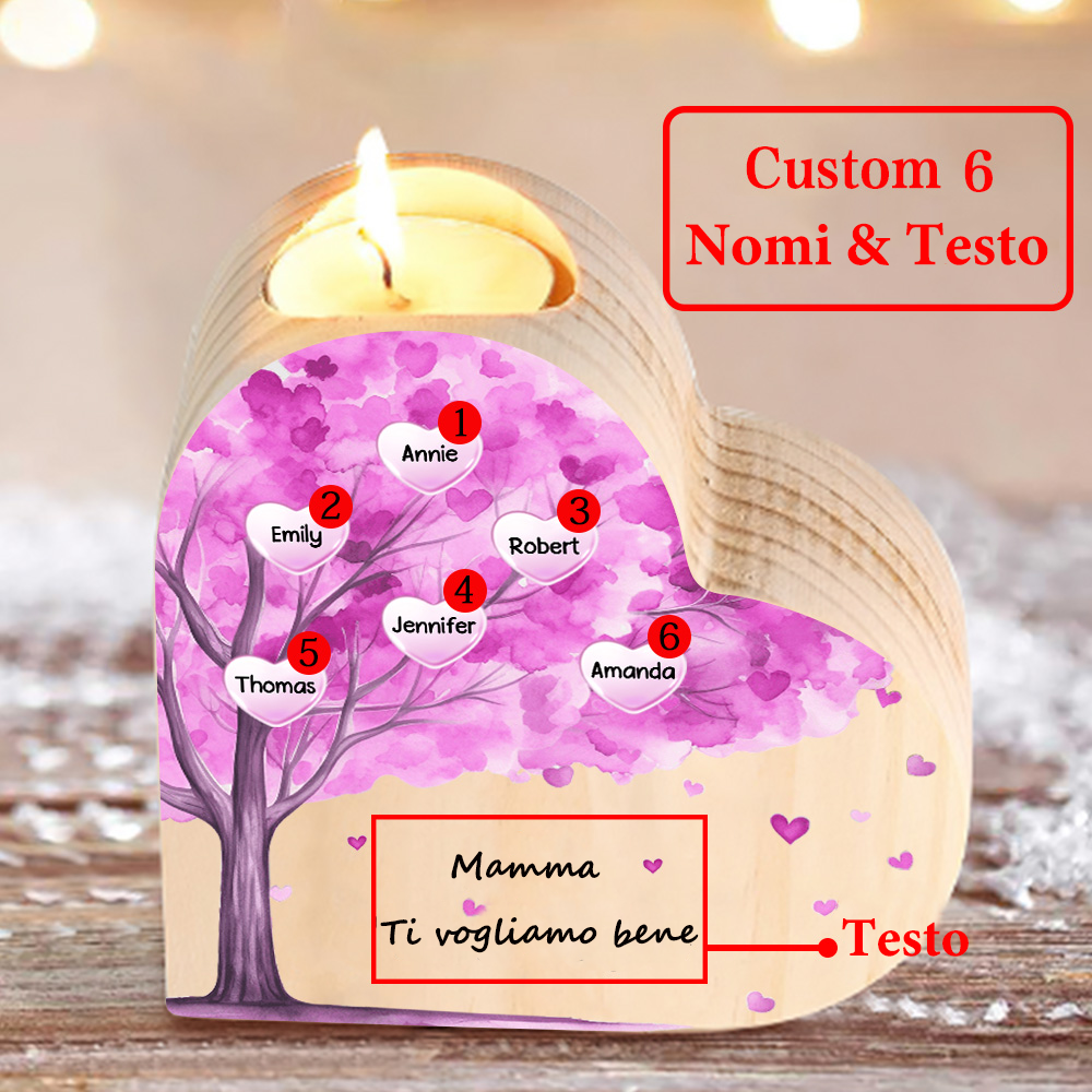 Candeliere a forma di cuore albero di cuore viola 6 nomi e 1 testo personalizzati per mamma/nonna