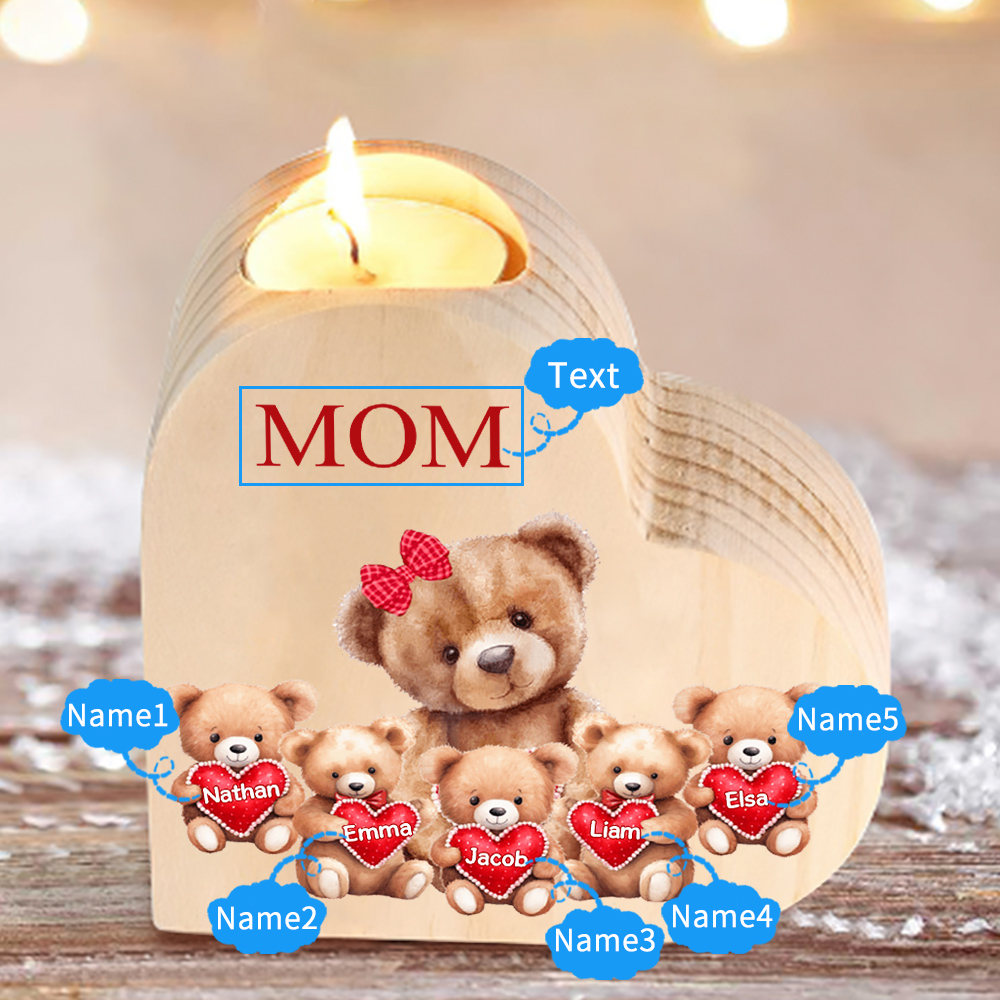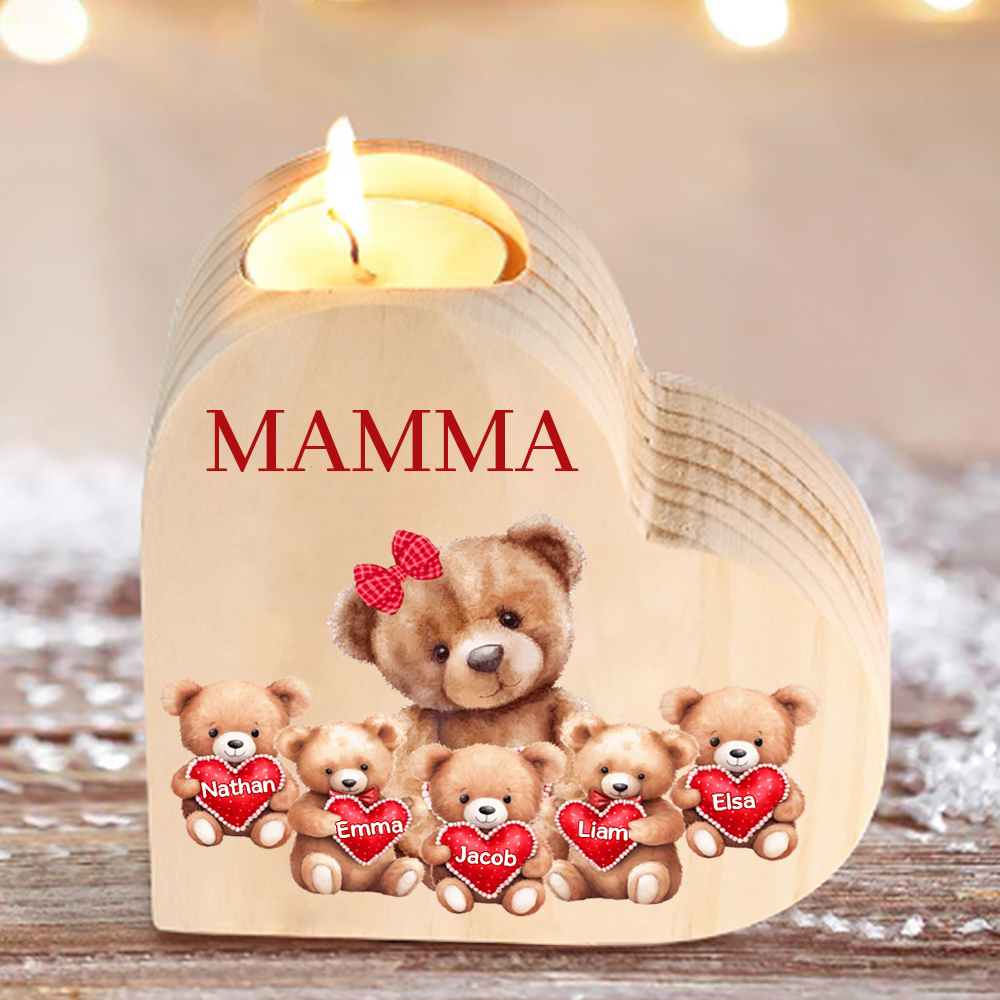 Candeliere a forma di cuore orsacchiotto 5 nomi e 1 testo personalizzati per mamma/nonna
