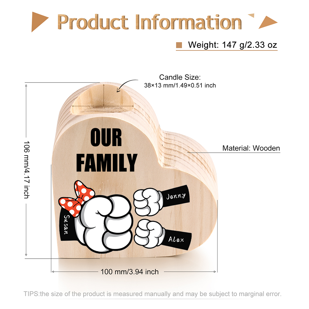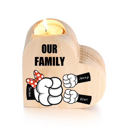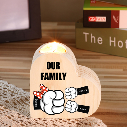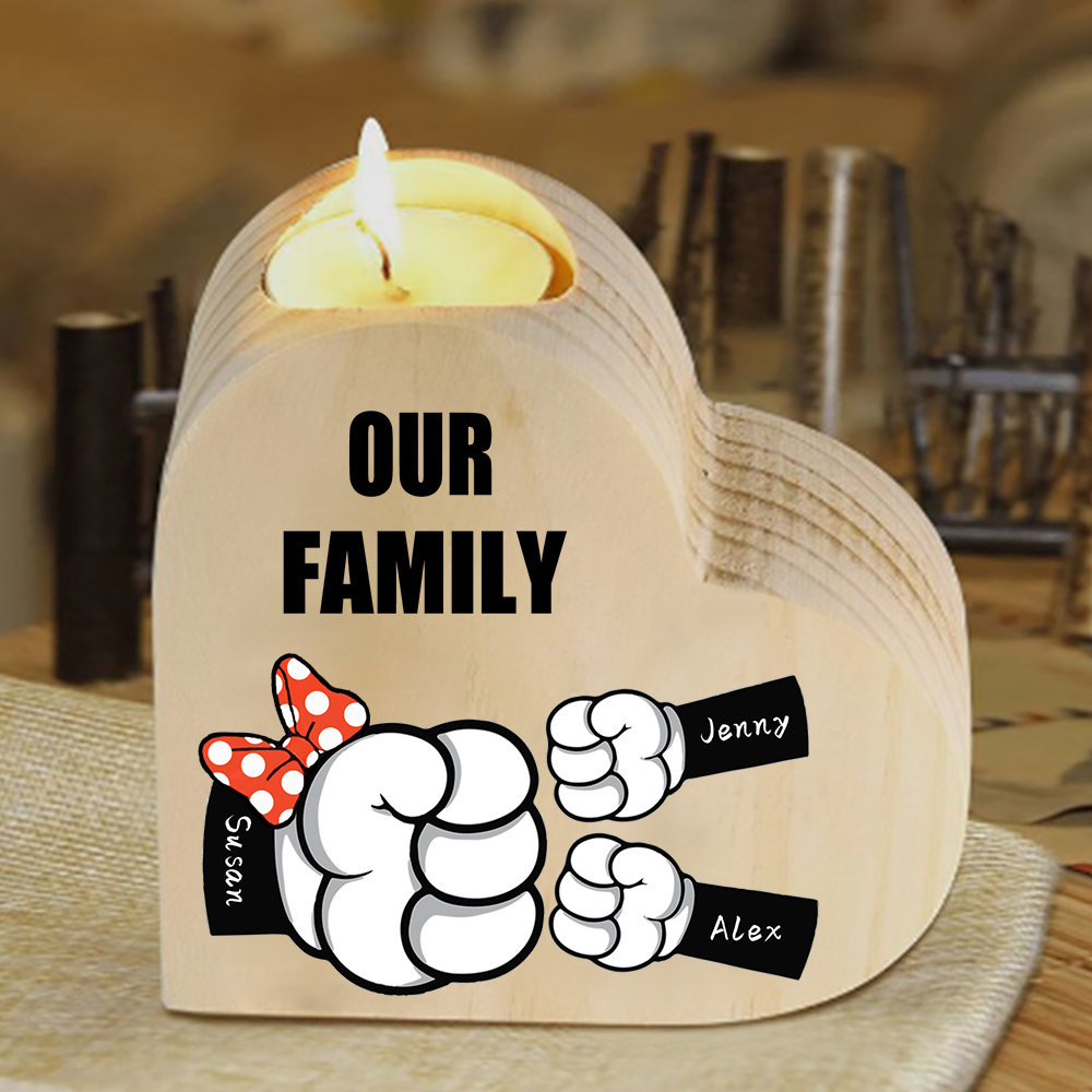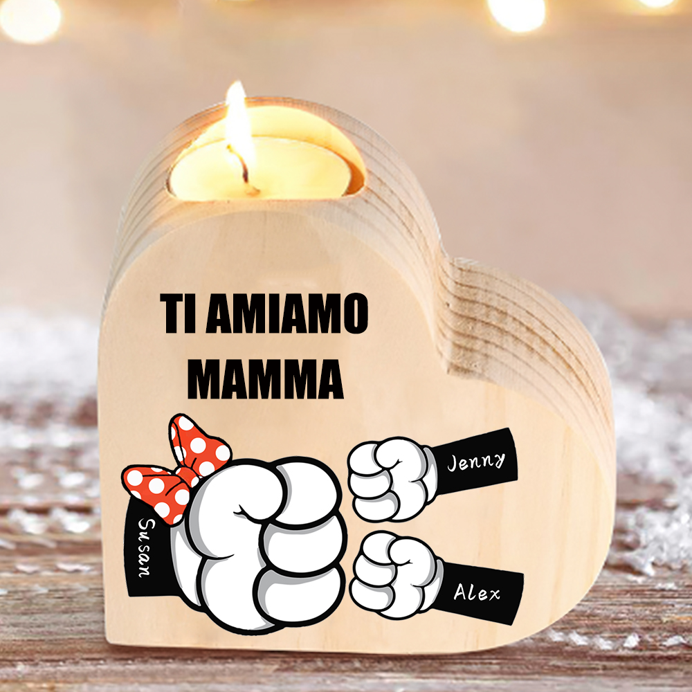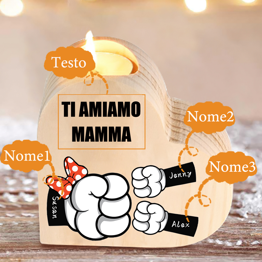 Candeliere a forma di cuore pugno a pugno 3 nomi e 1 testo personalizzati per mamma/nonna