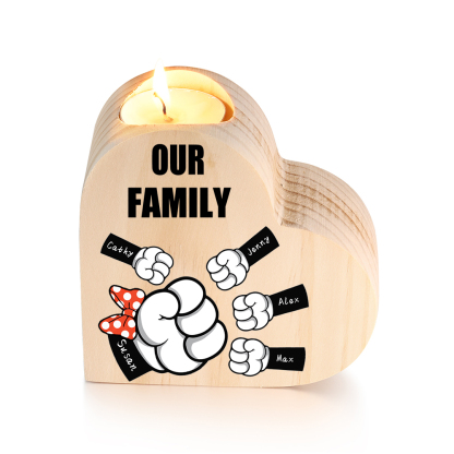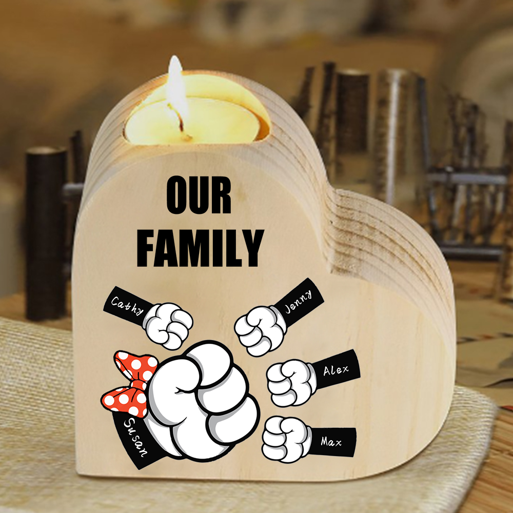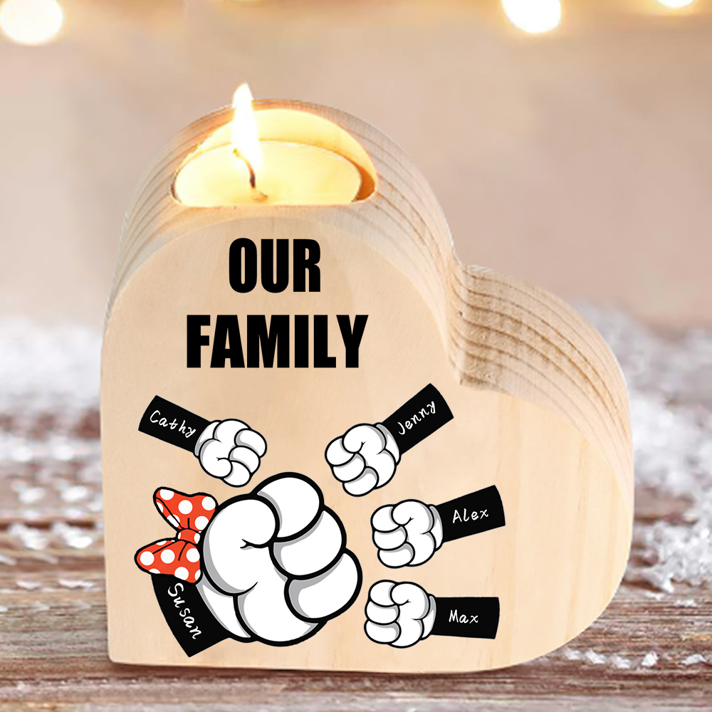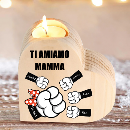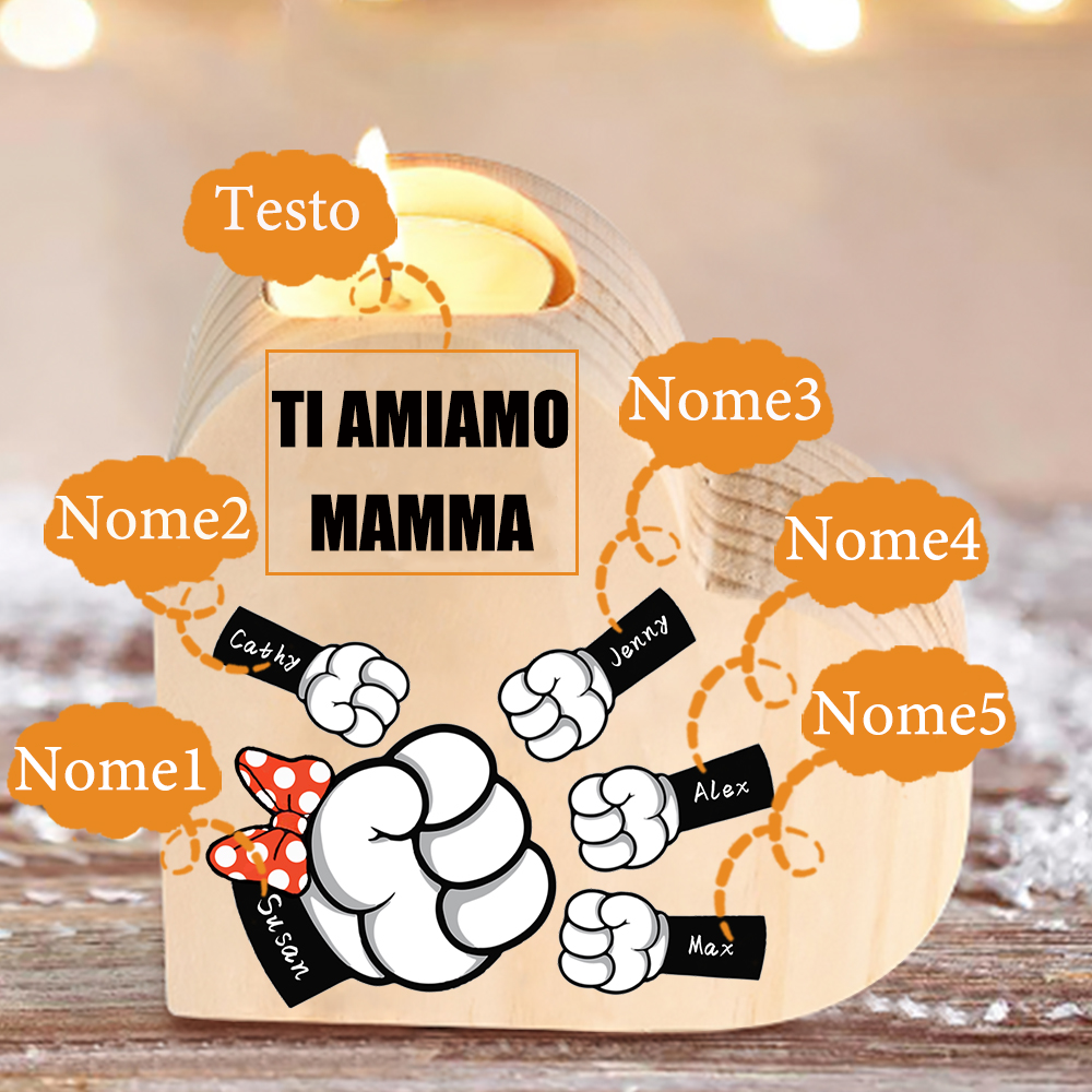 Candeliere a forma di cuore pugno a pugno 5 nomi e 1 testo personalizzati per mamma/nonna